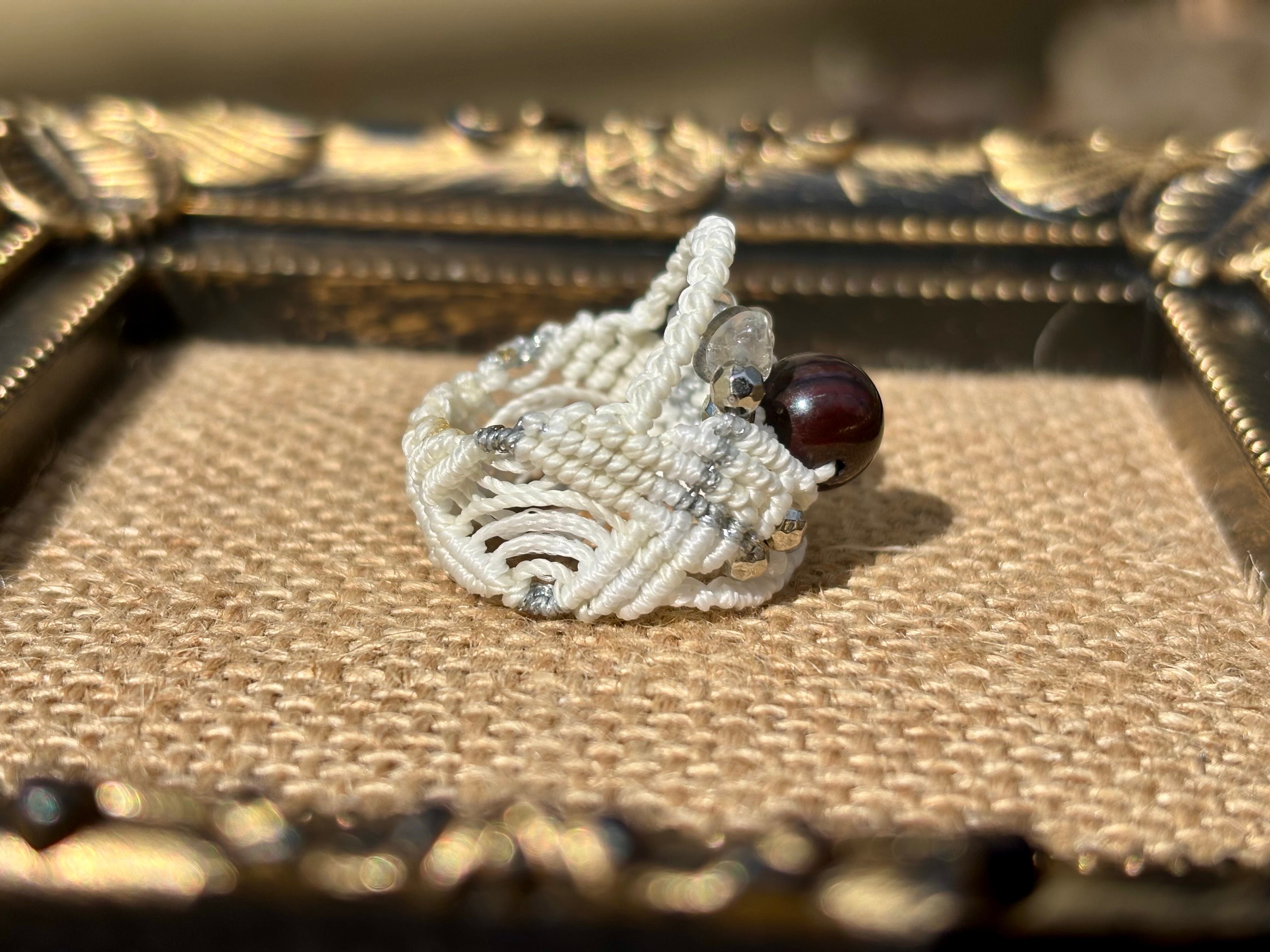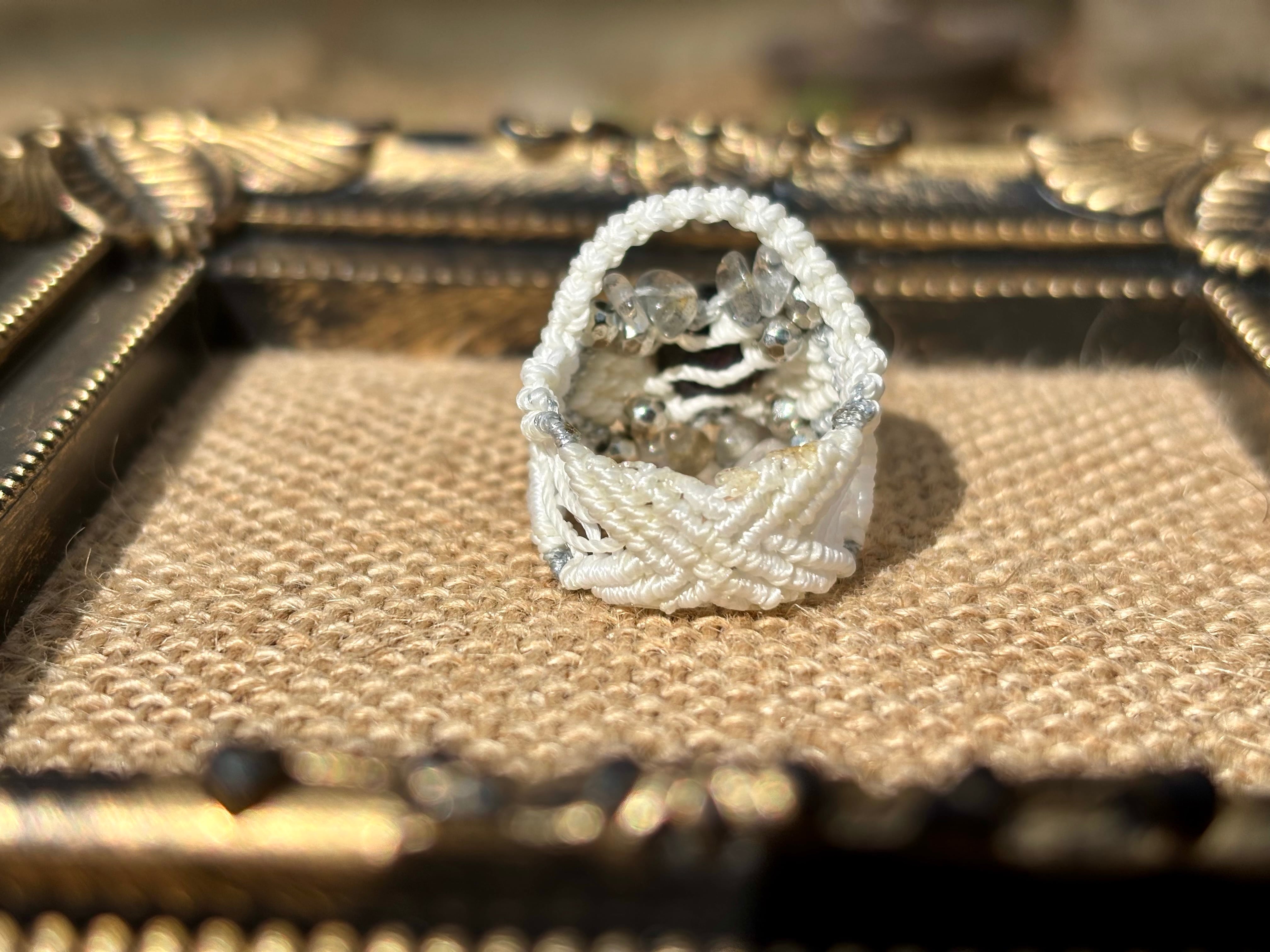 手作業で丁寧に編み込まれたこのリングは、日常のコーディネートに華を添えるだけでなく、特別な場面でも存在感を発揮します。
