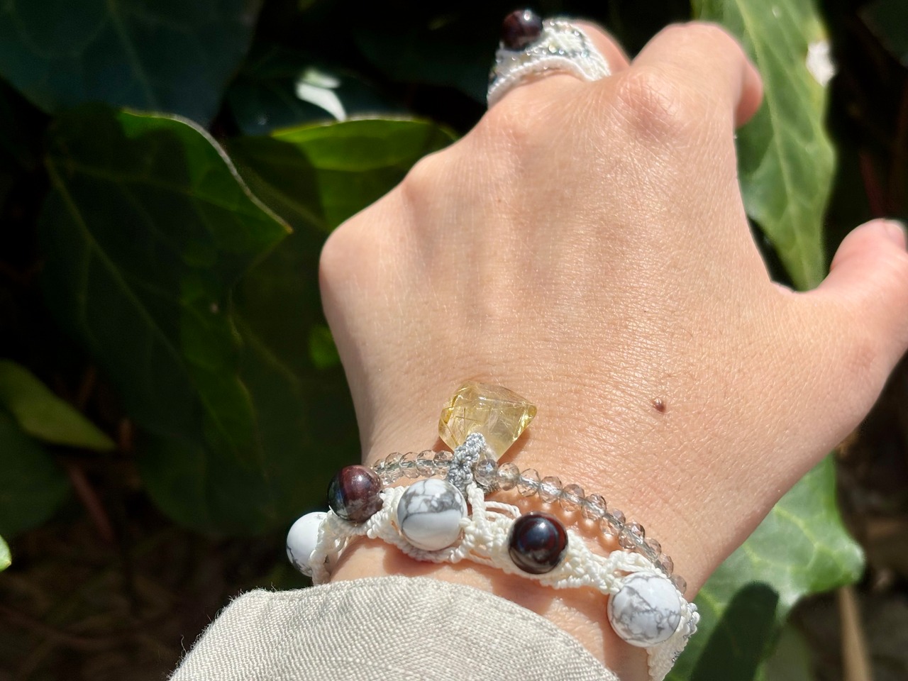 手作業で丁寧に編み込まれたこのブレスレットは、日常のコーディネートに華を添えるだけでなく、特別な場面でも存在感を発揮します。