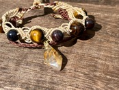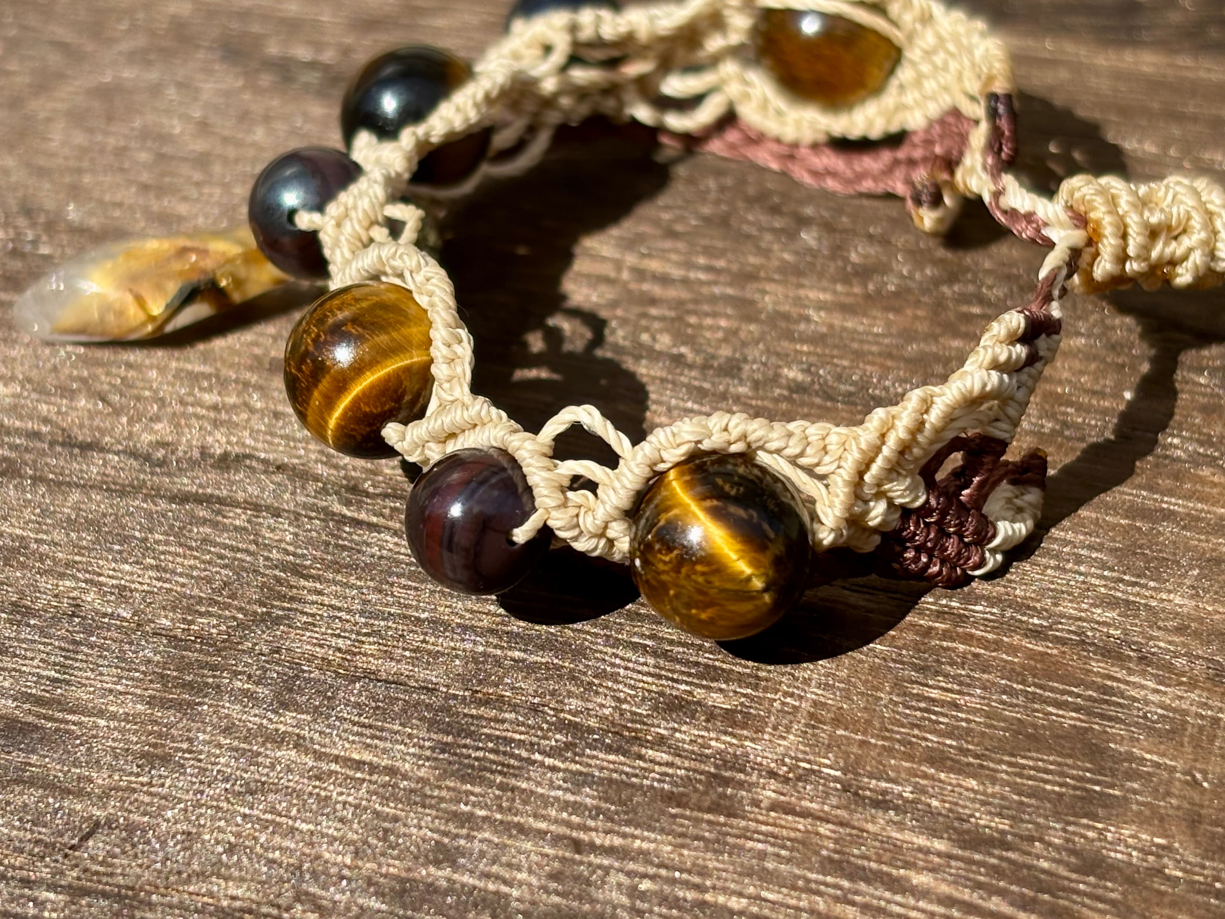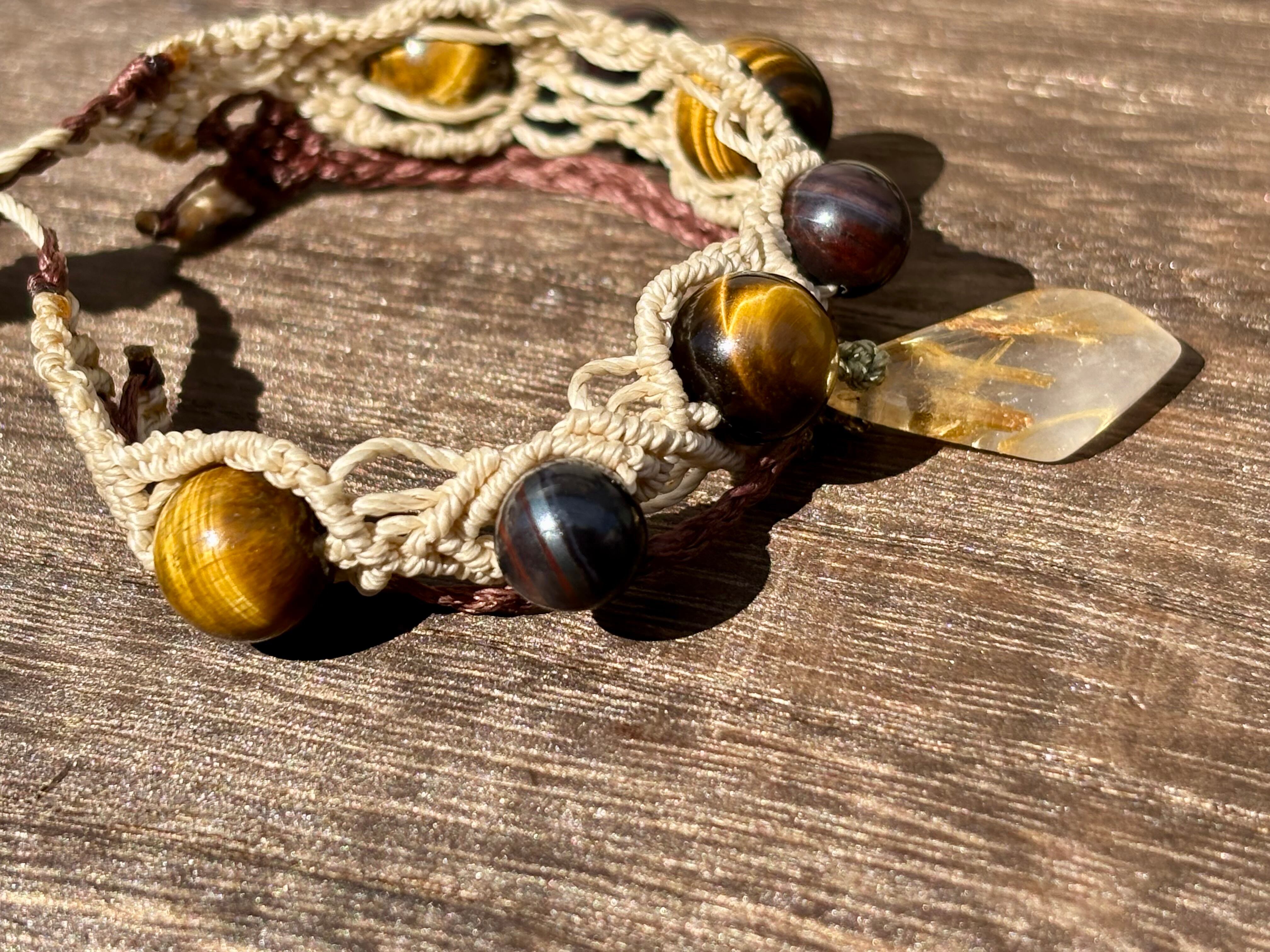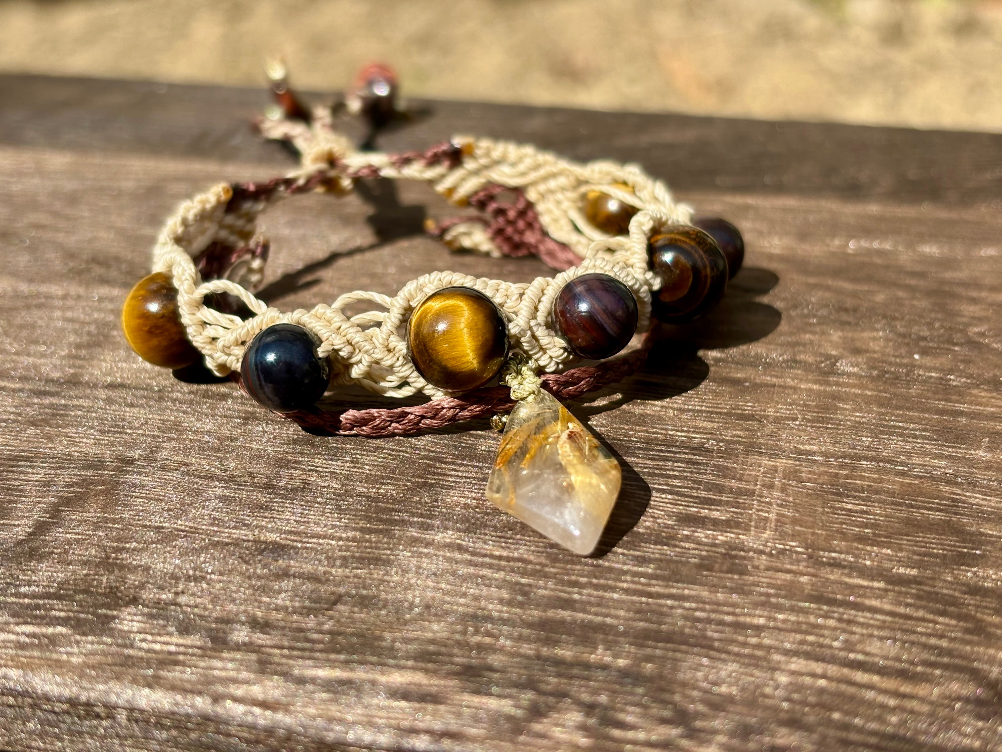 #1052ブラックスギライト一点物(ブラックスギライト×ルチルクォーツ× タイガーアイ マクラメ編みブレスレット)