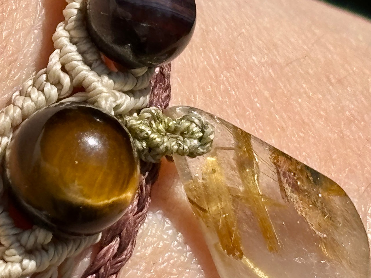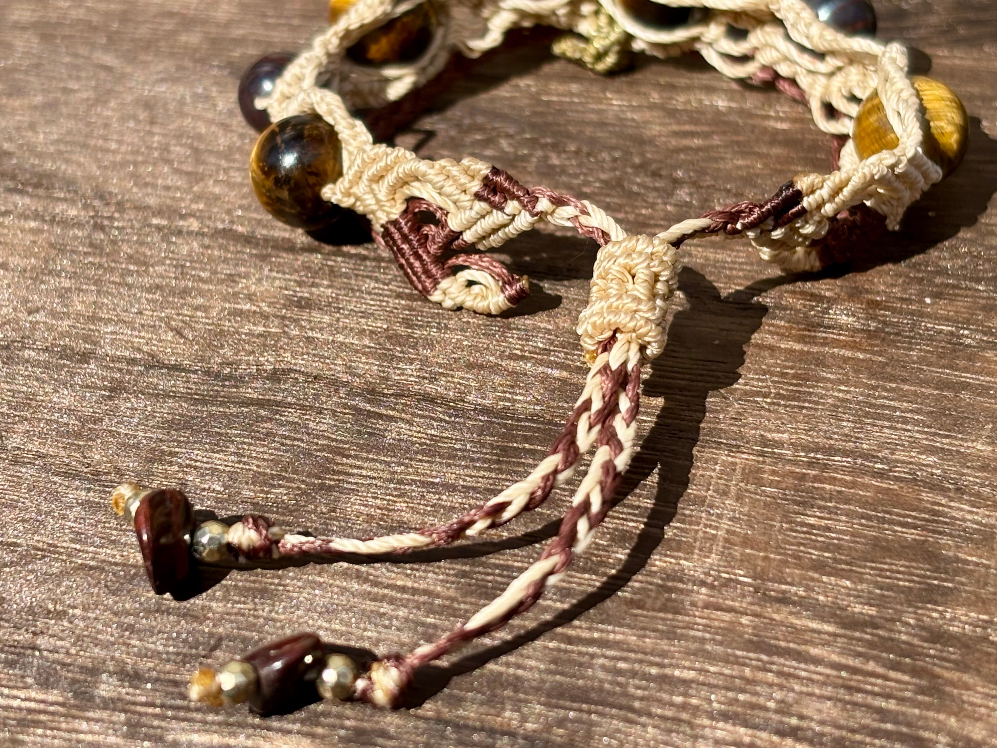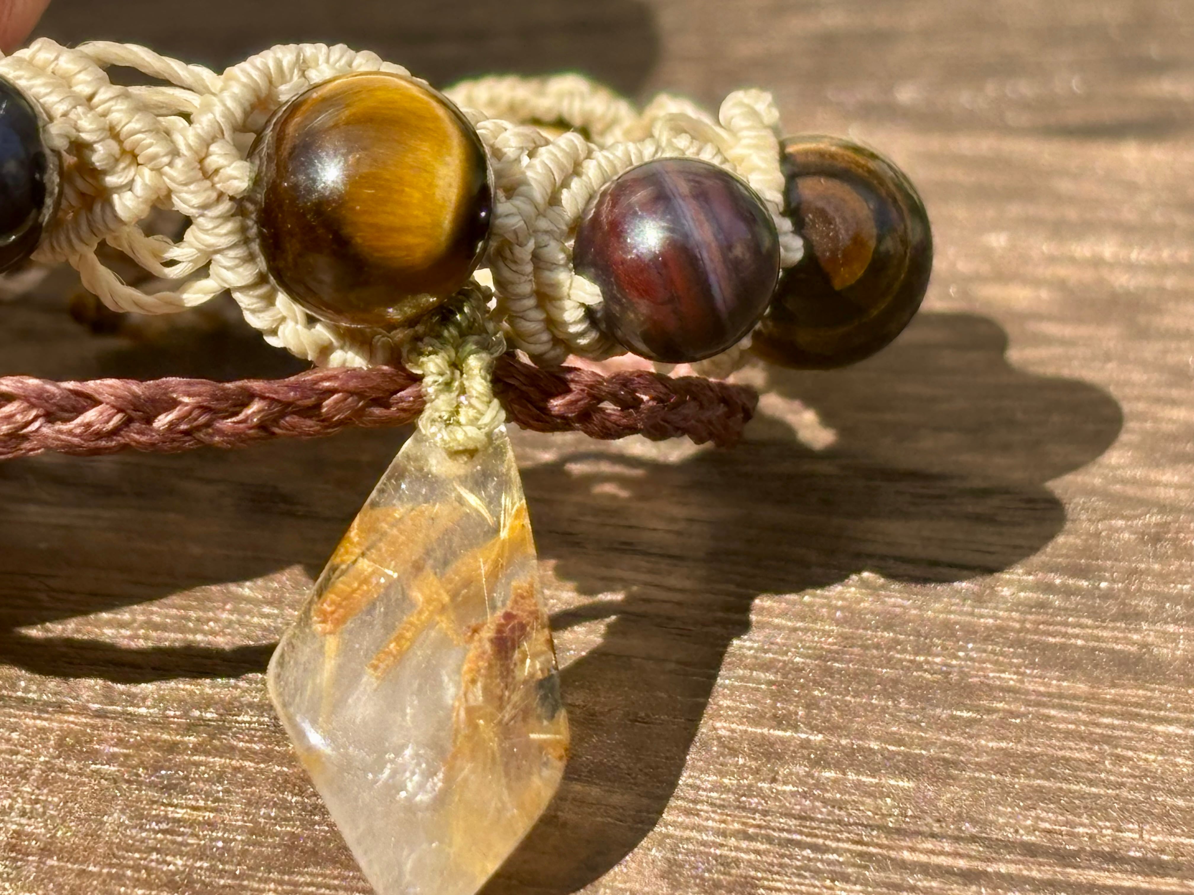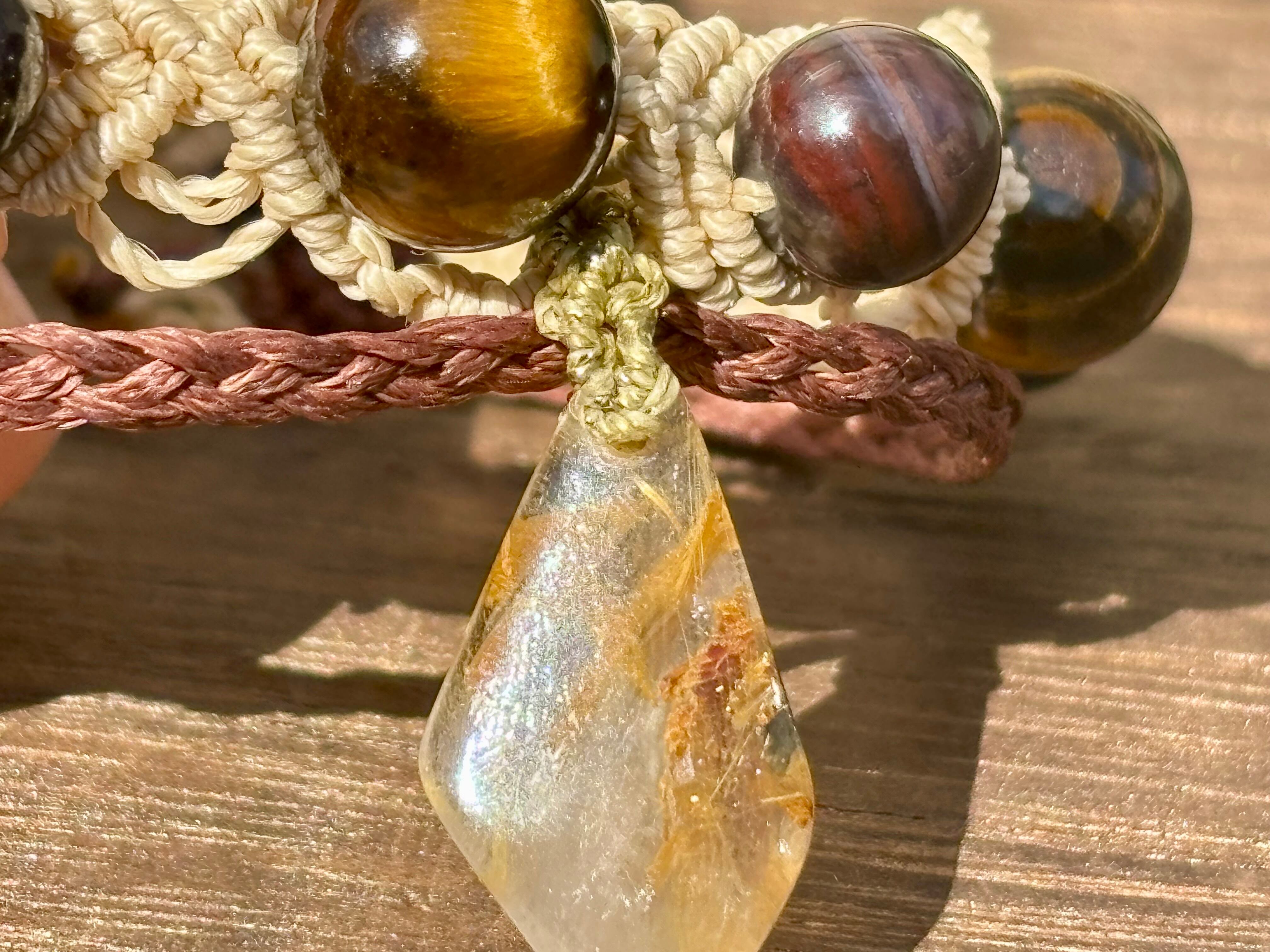 #1052ブラックスギライト一点物(ブラックスギライト×ルチルクォーツ× タイガーアイ マクラメ編みブレスレット)