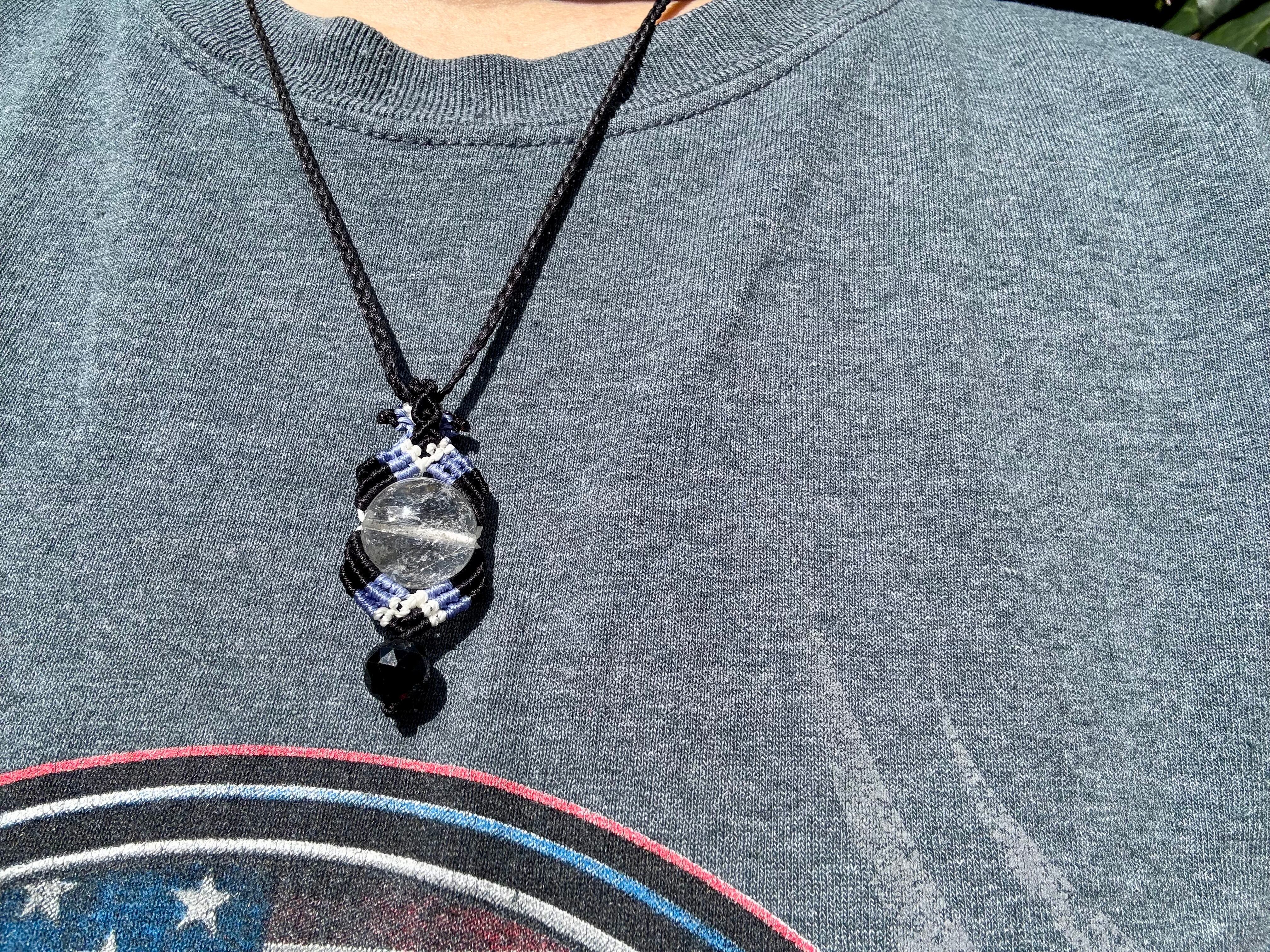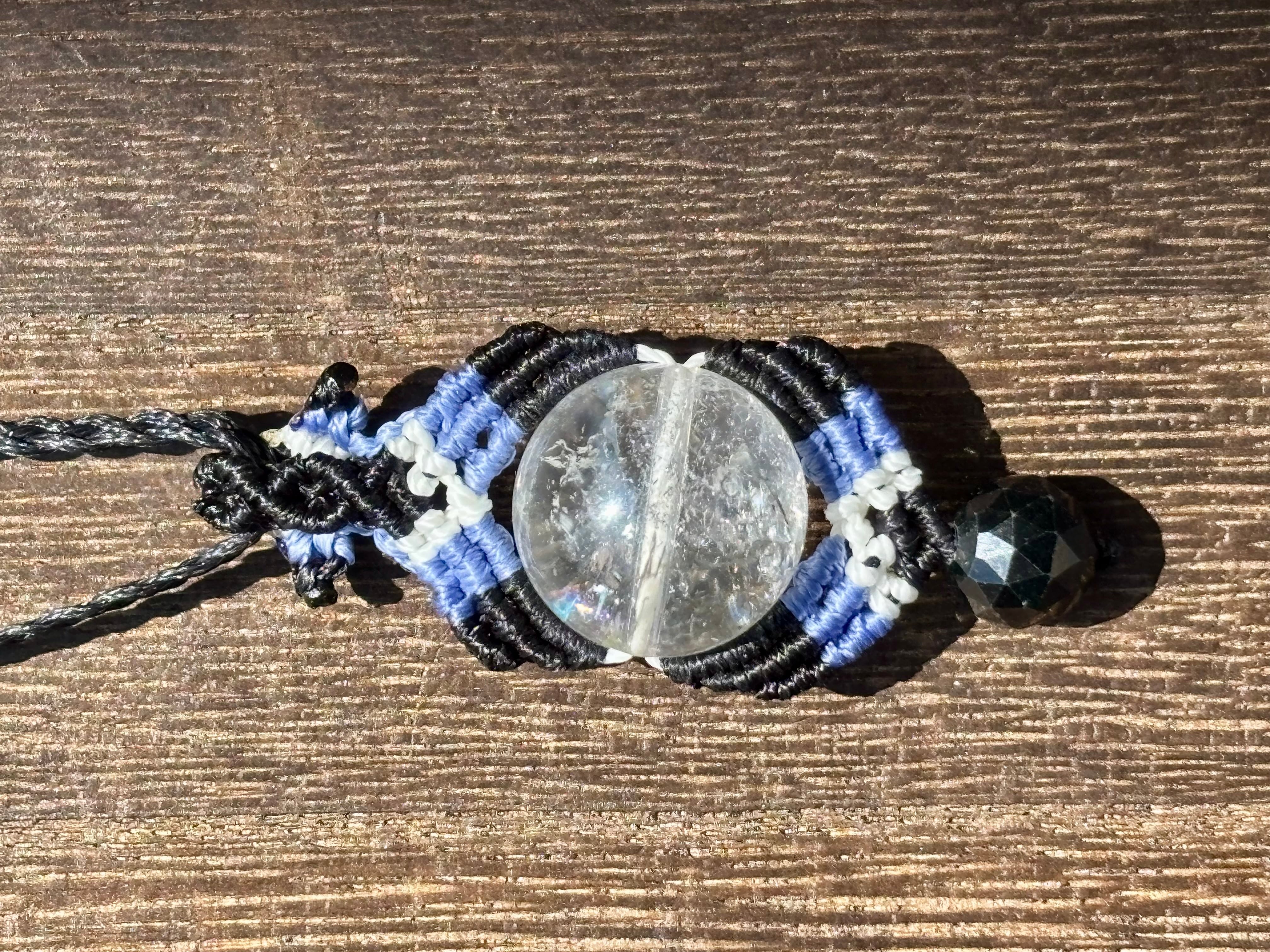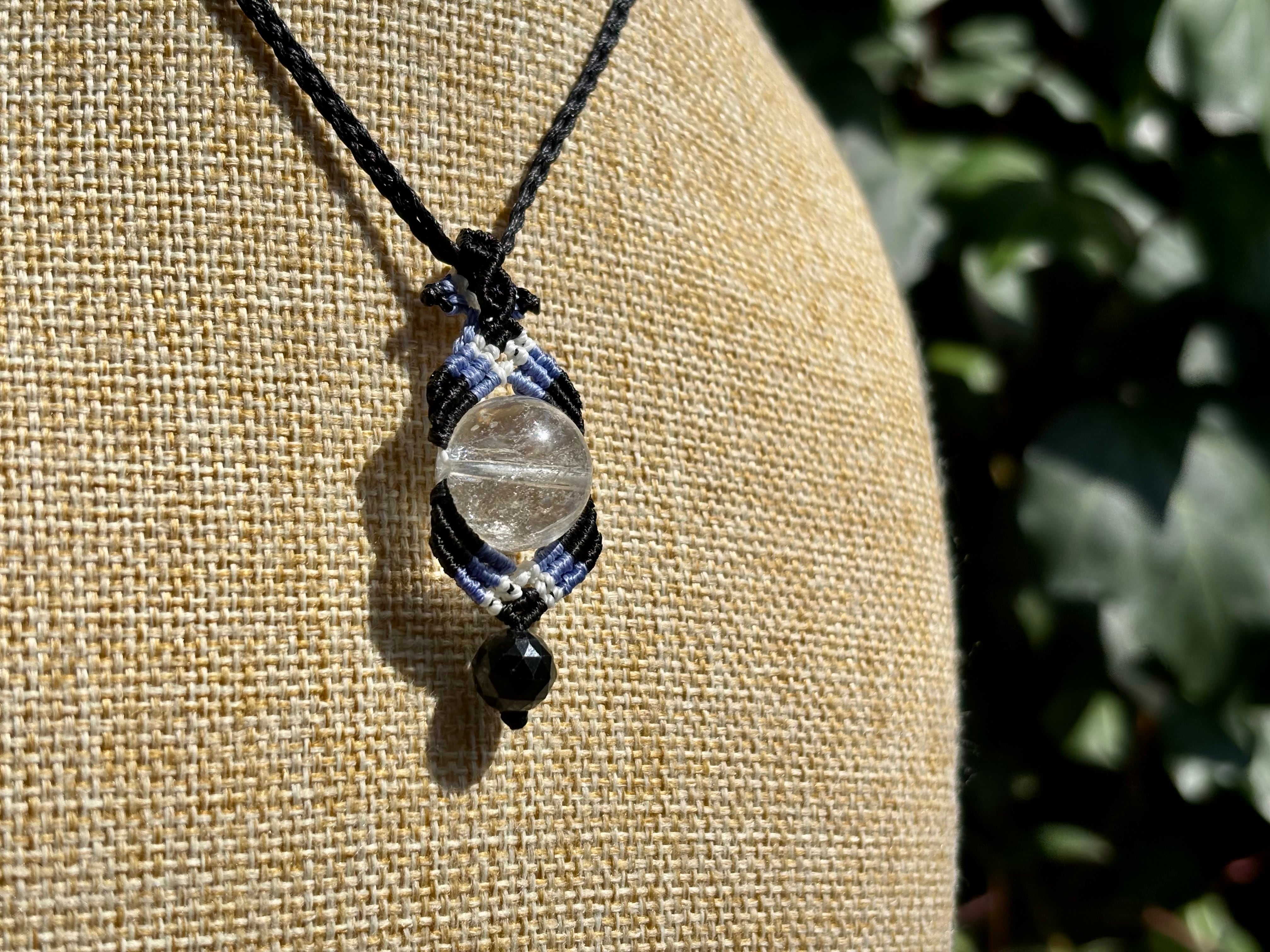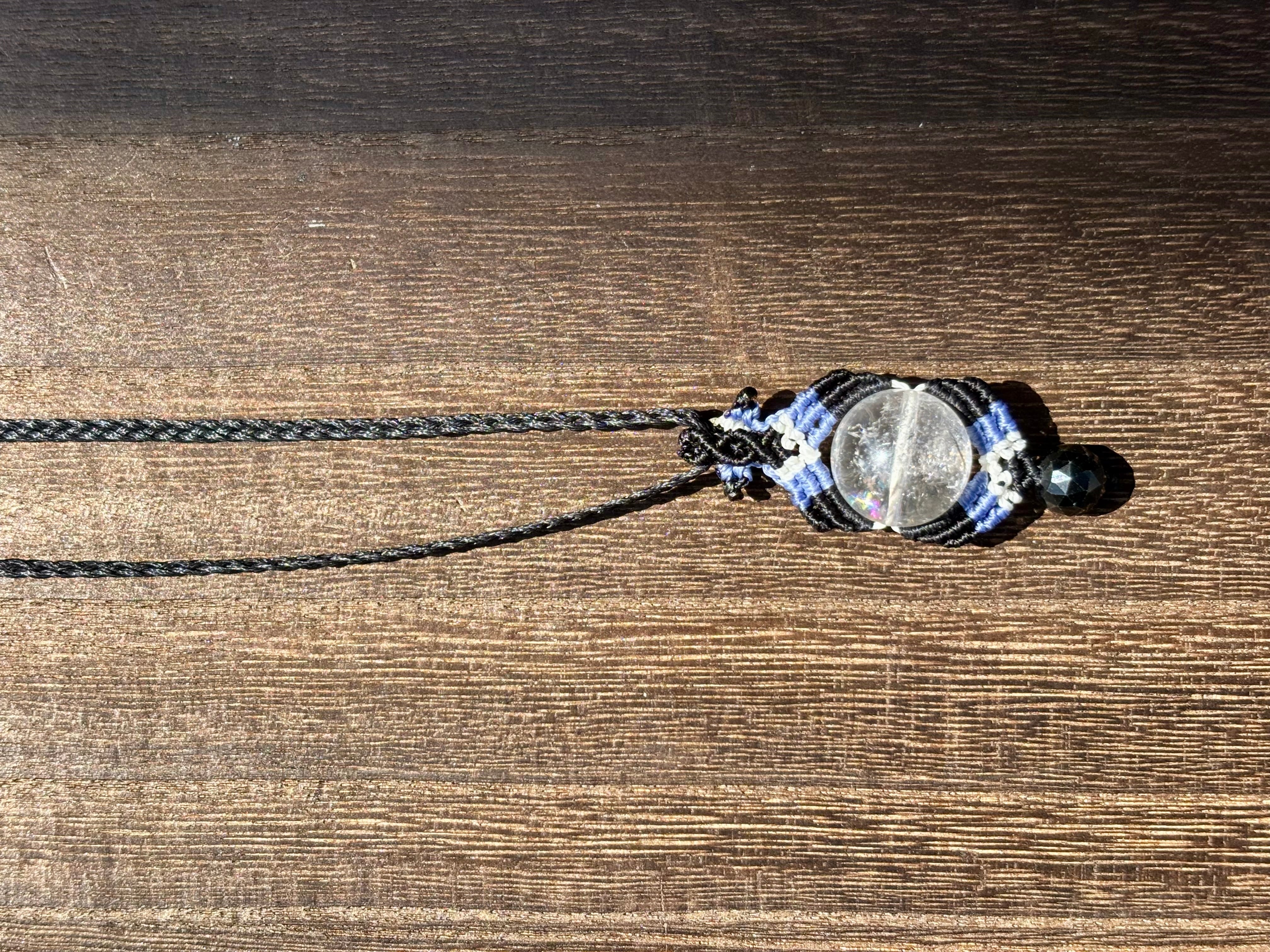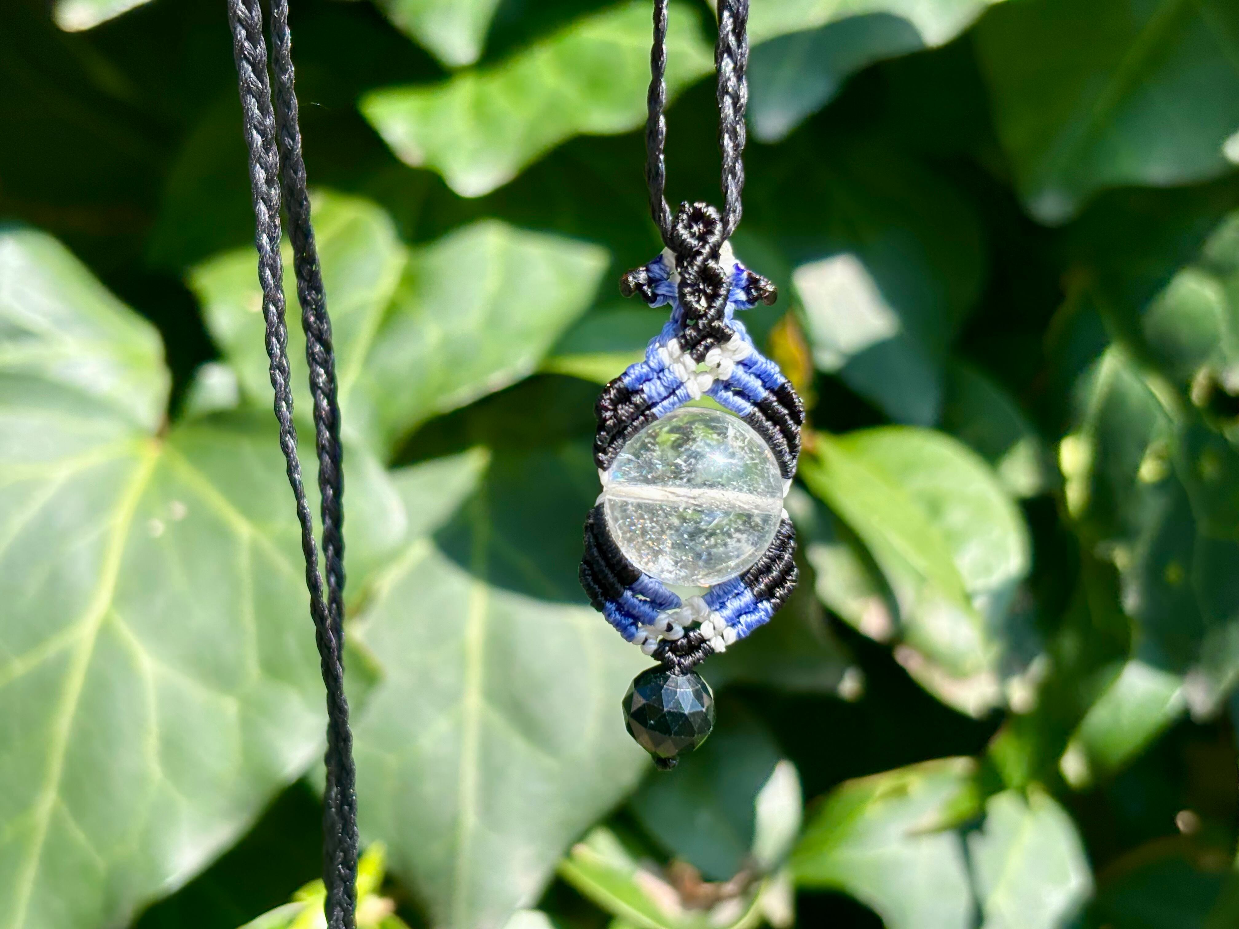 #1068輝く☆ヒマラヤ水晶一点物(ヒマラヤ水晶×ブラック翡翠×オニキス マクラメ編みネックレス)