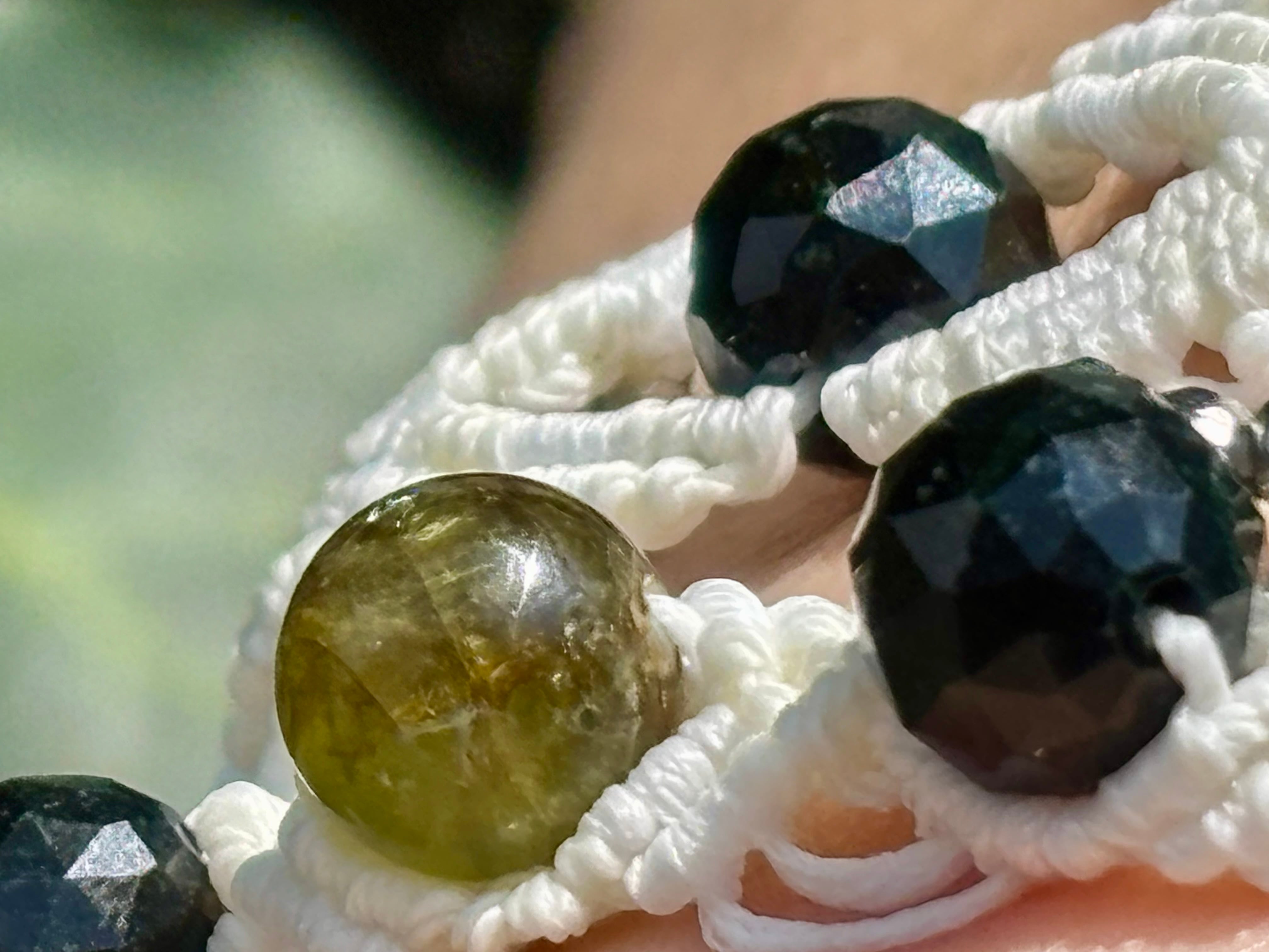 #1082ブラック翡翠一点物(ブラック翡翠×ペリドット マクラメ編みブレスレット)