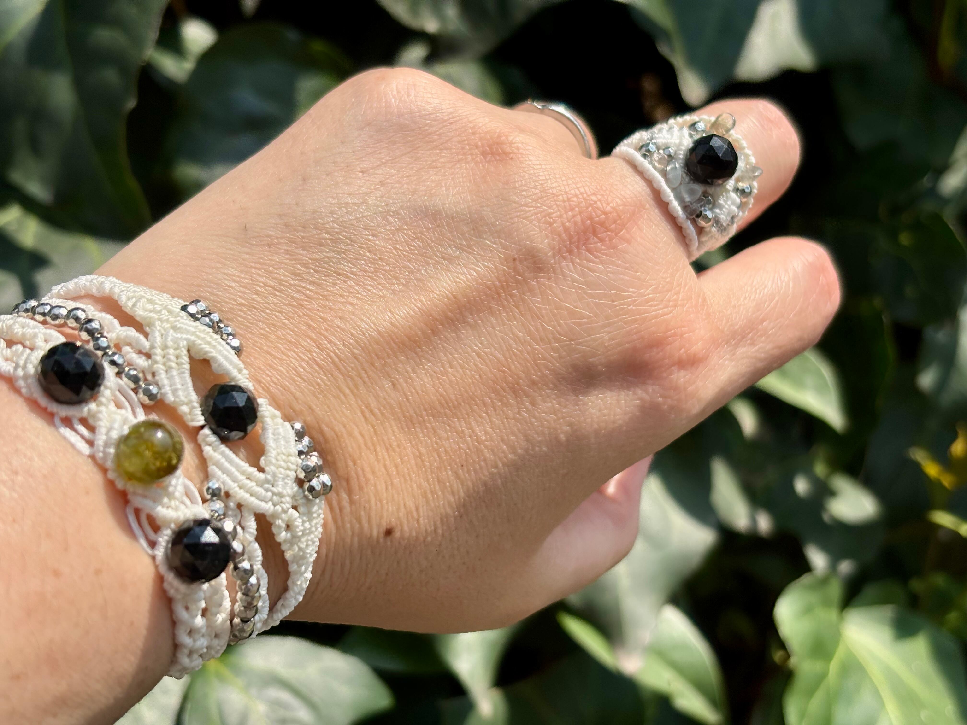 手作業で丁寧に編み込まれたこのブレスレットは、日常のコーディネートに華を添えるだけでなく、特別な場面でも存在感を発揮します。