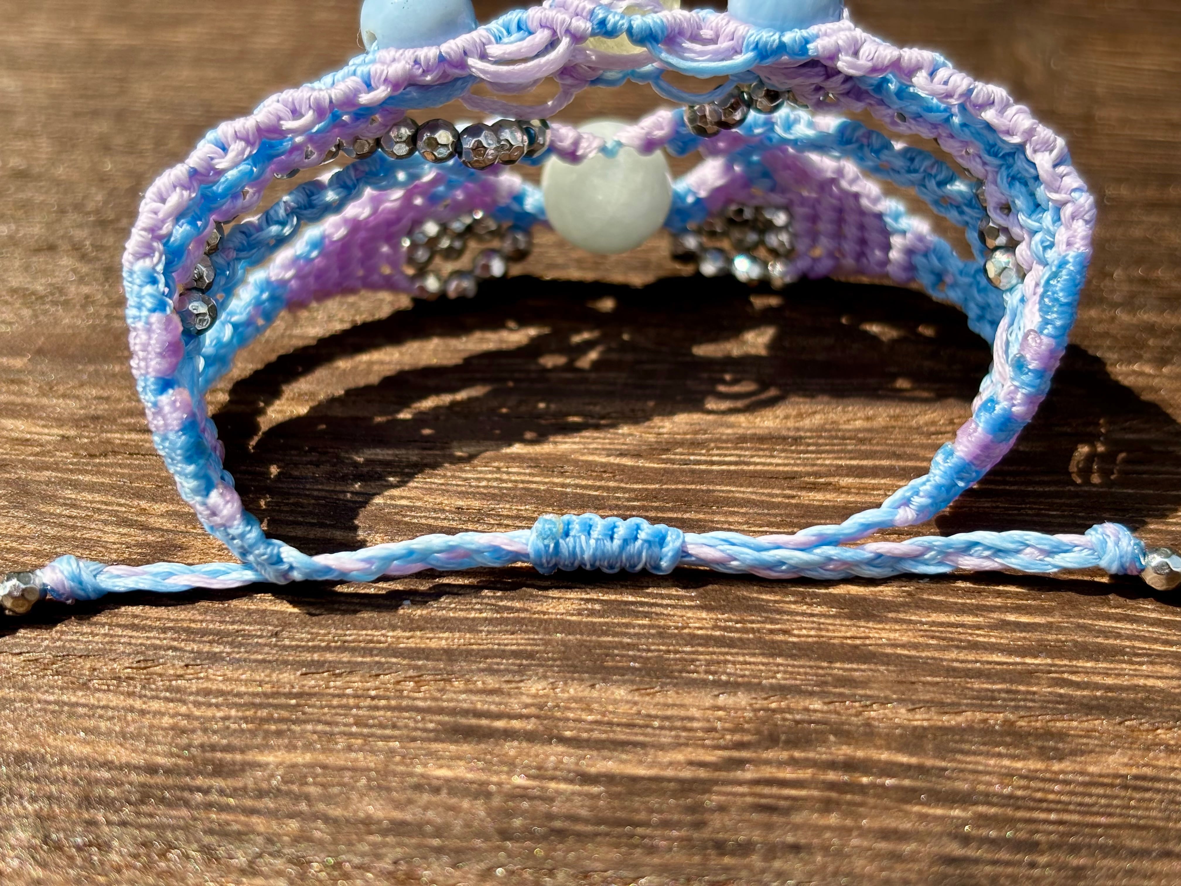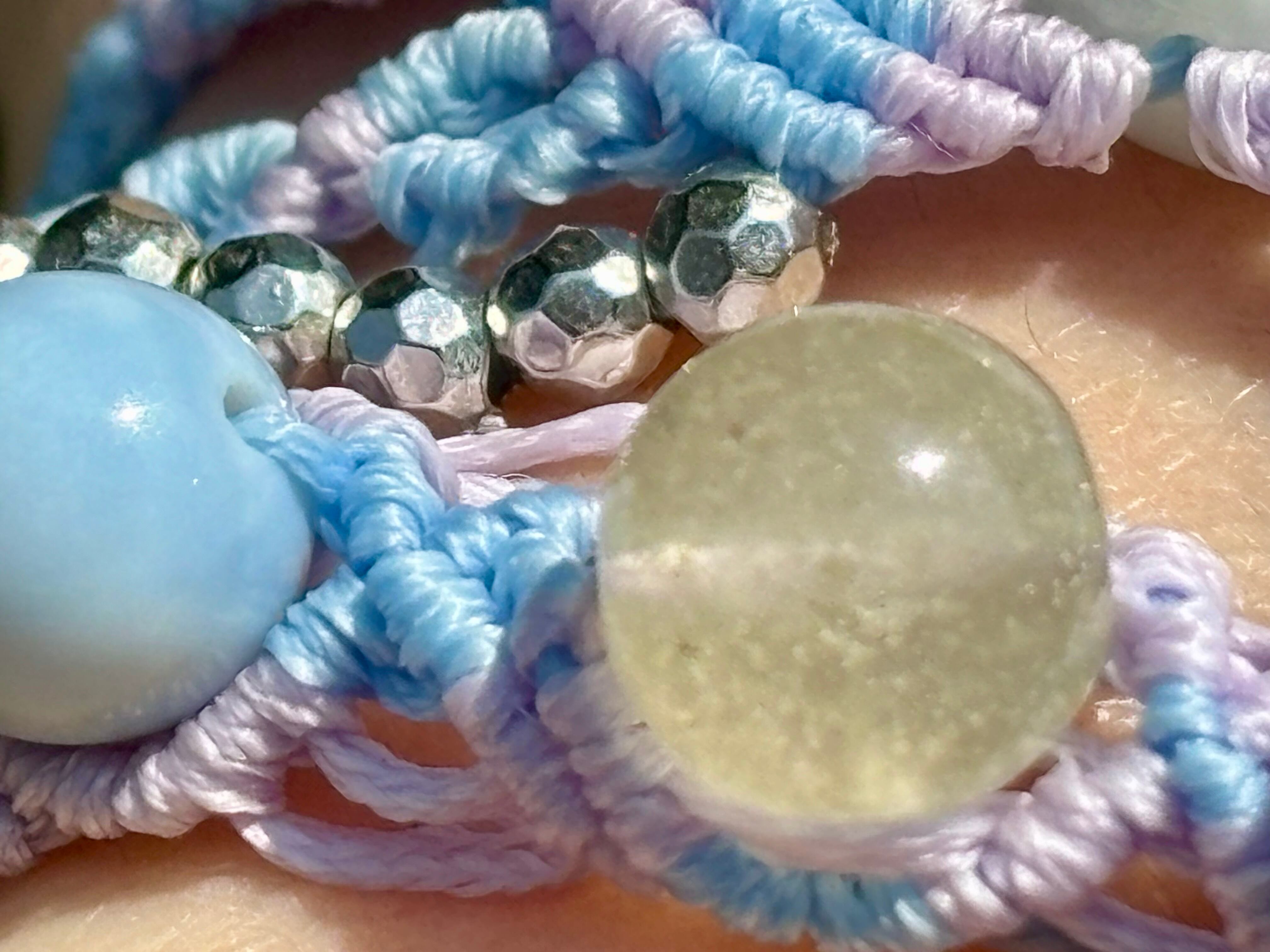 #1086ミャンマー産翡翠一点物(翡翠×リビアングラス×ブルーオパール マクラメ編みブレスレット)