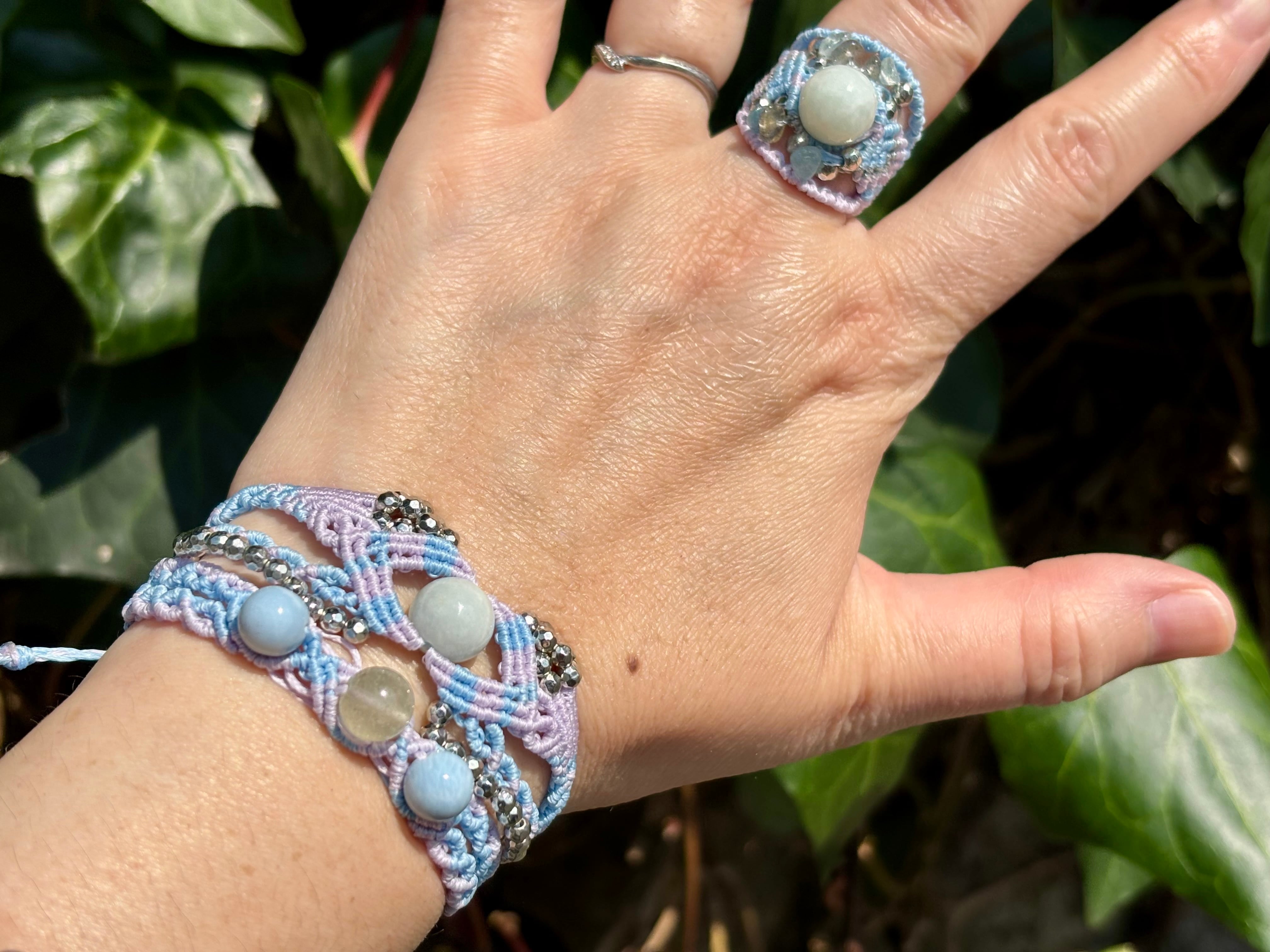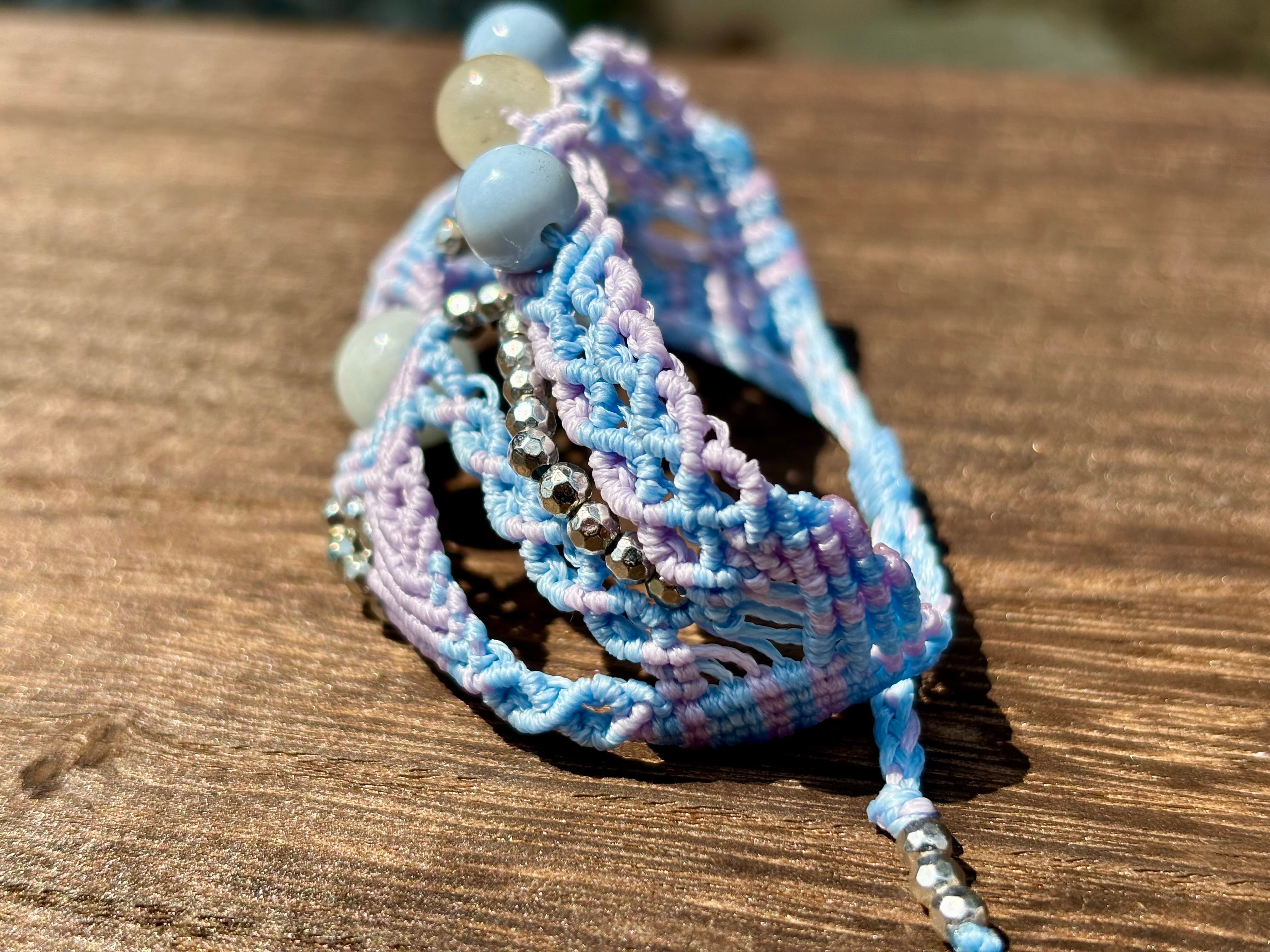 手作業で丁寧に編み込まれたこのブレスレットは、日常のコーディネートに華を添えるだけでなく、特別な場面でも存在感を発揮します。