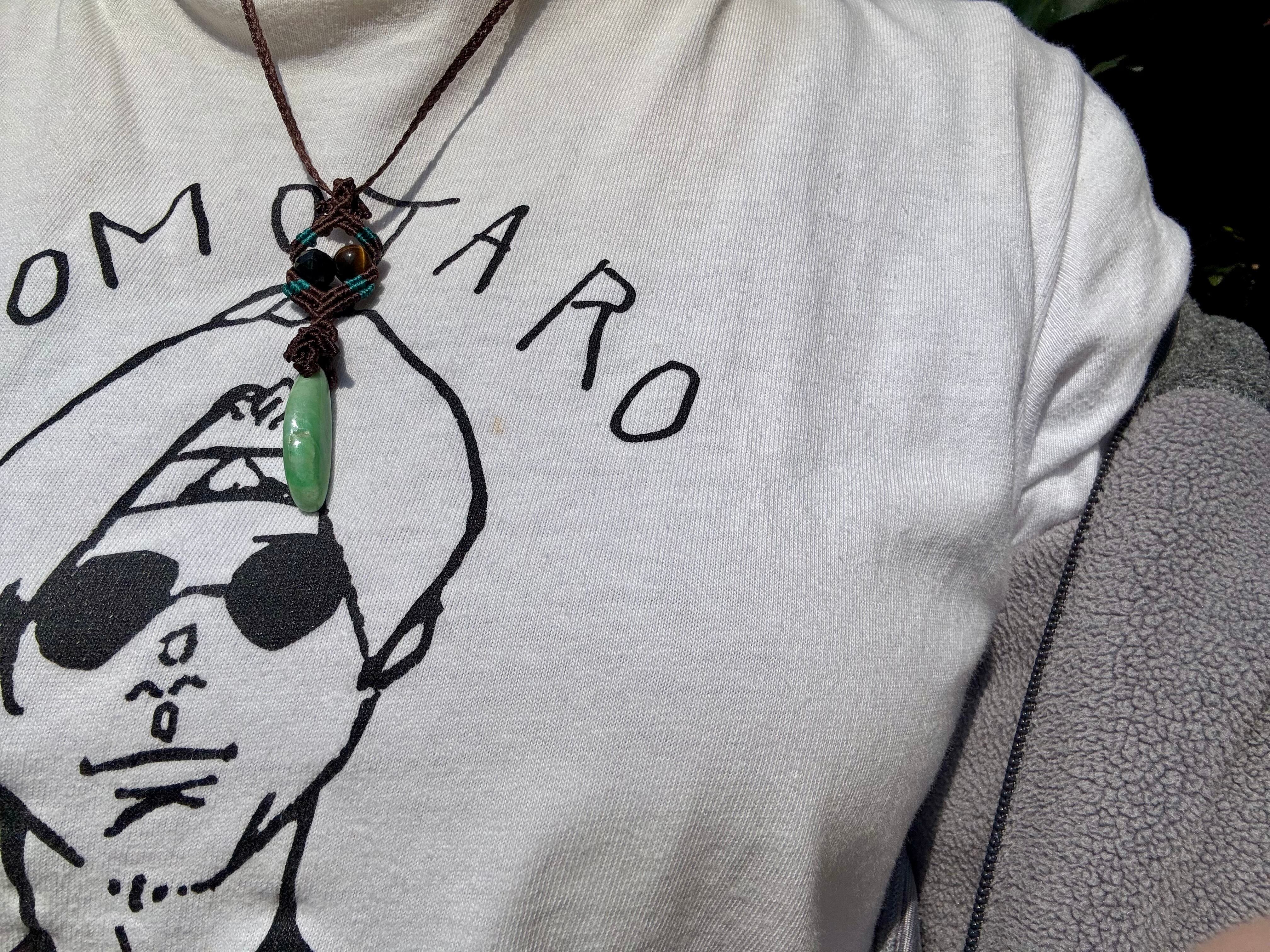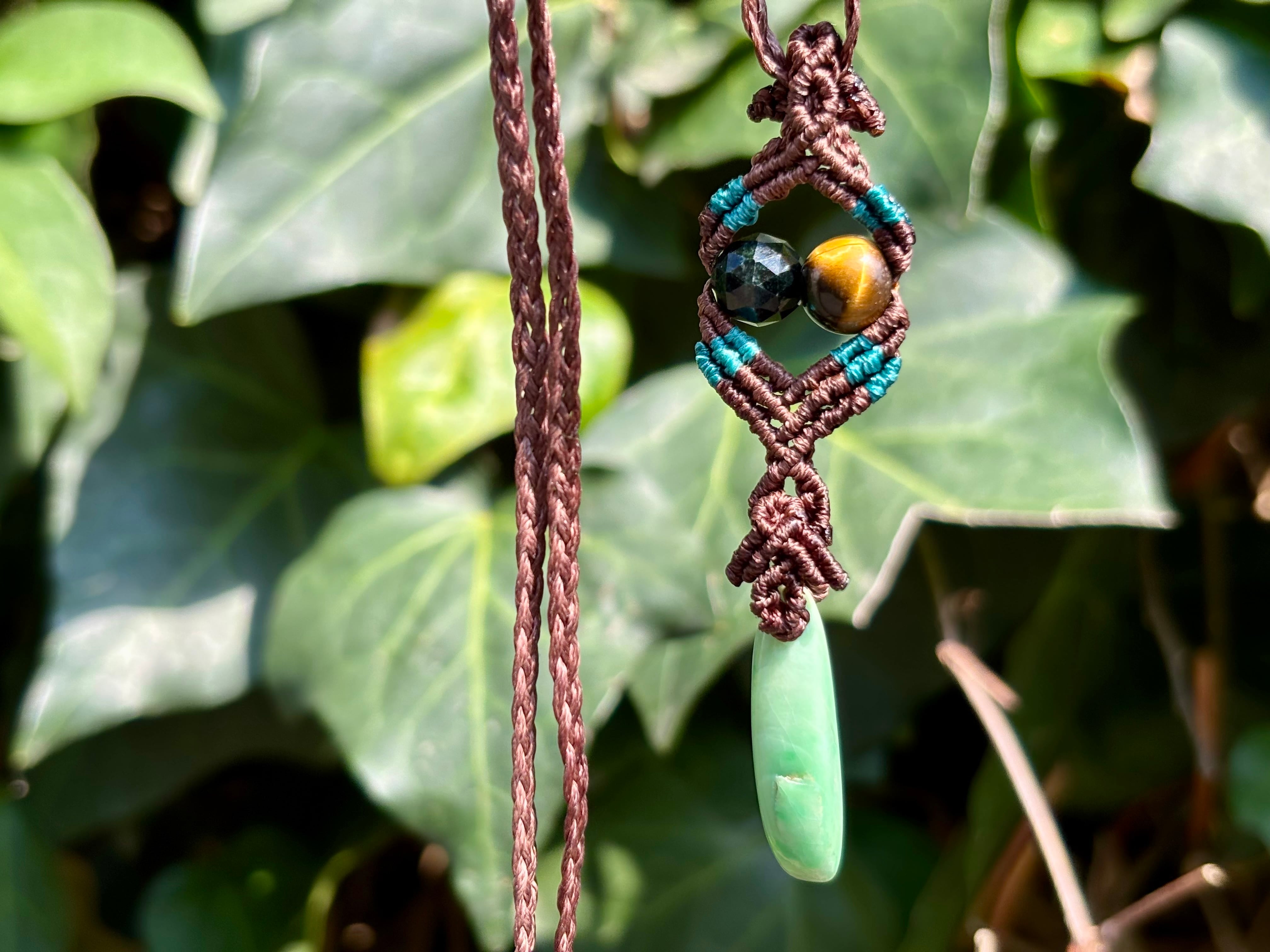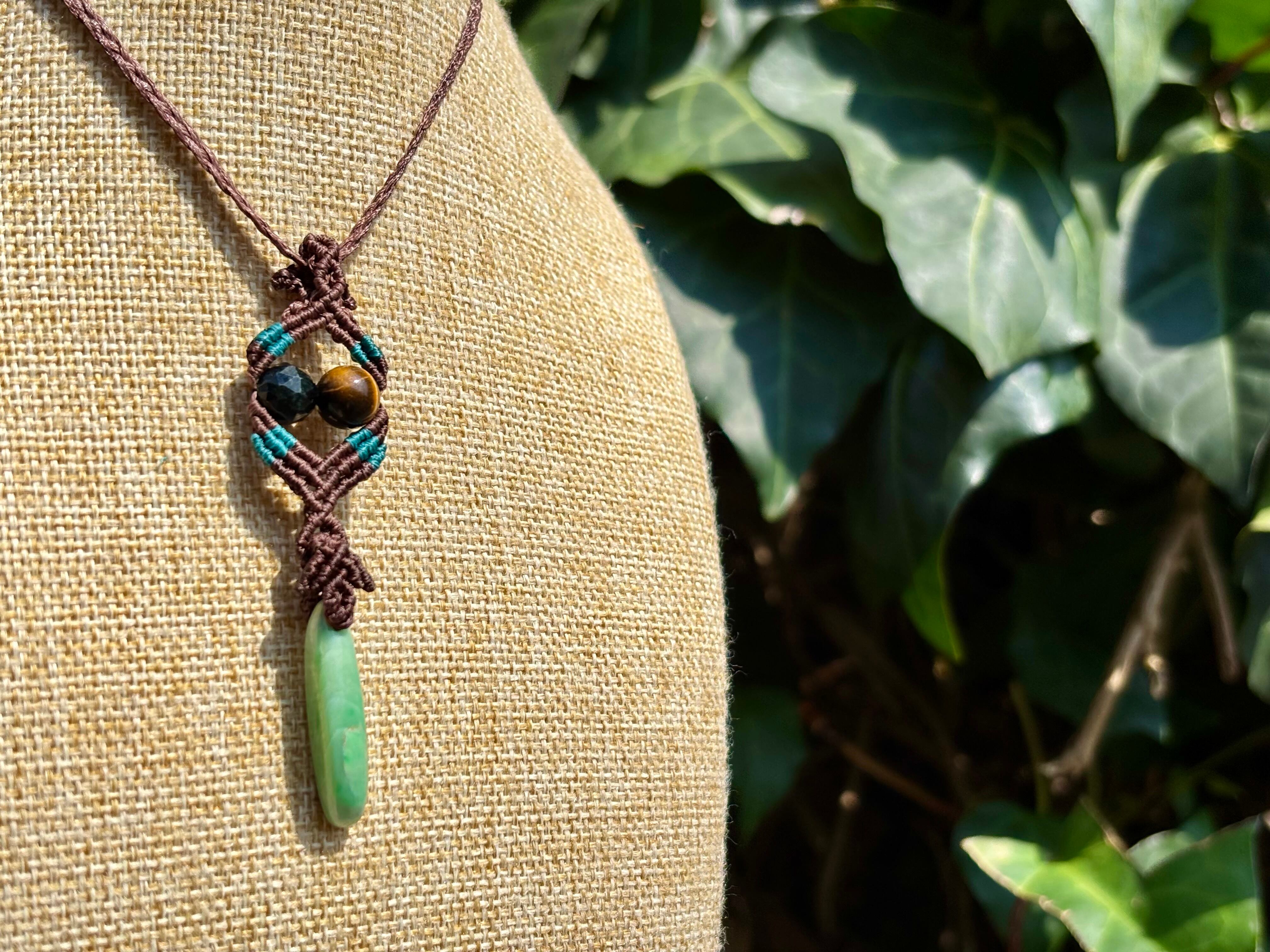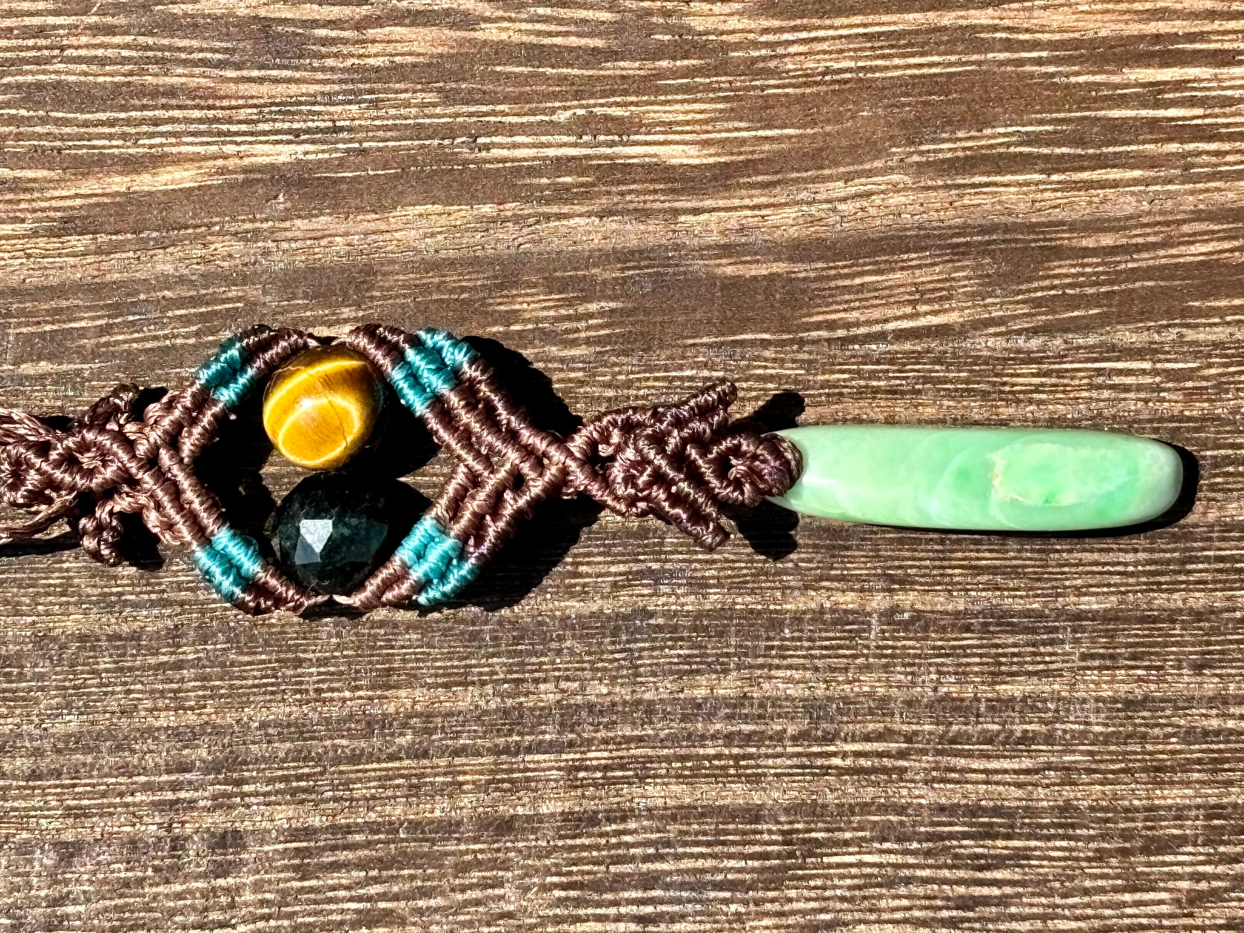#1087ミャンマー産翡翠一点物(翡翠×ブラック翡翠×タイガーアイ×テラヘルツ マクラメ編みネックレス)