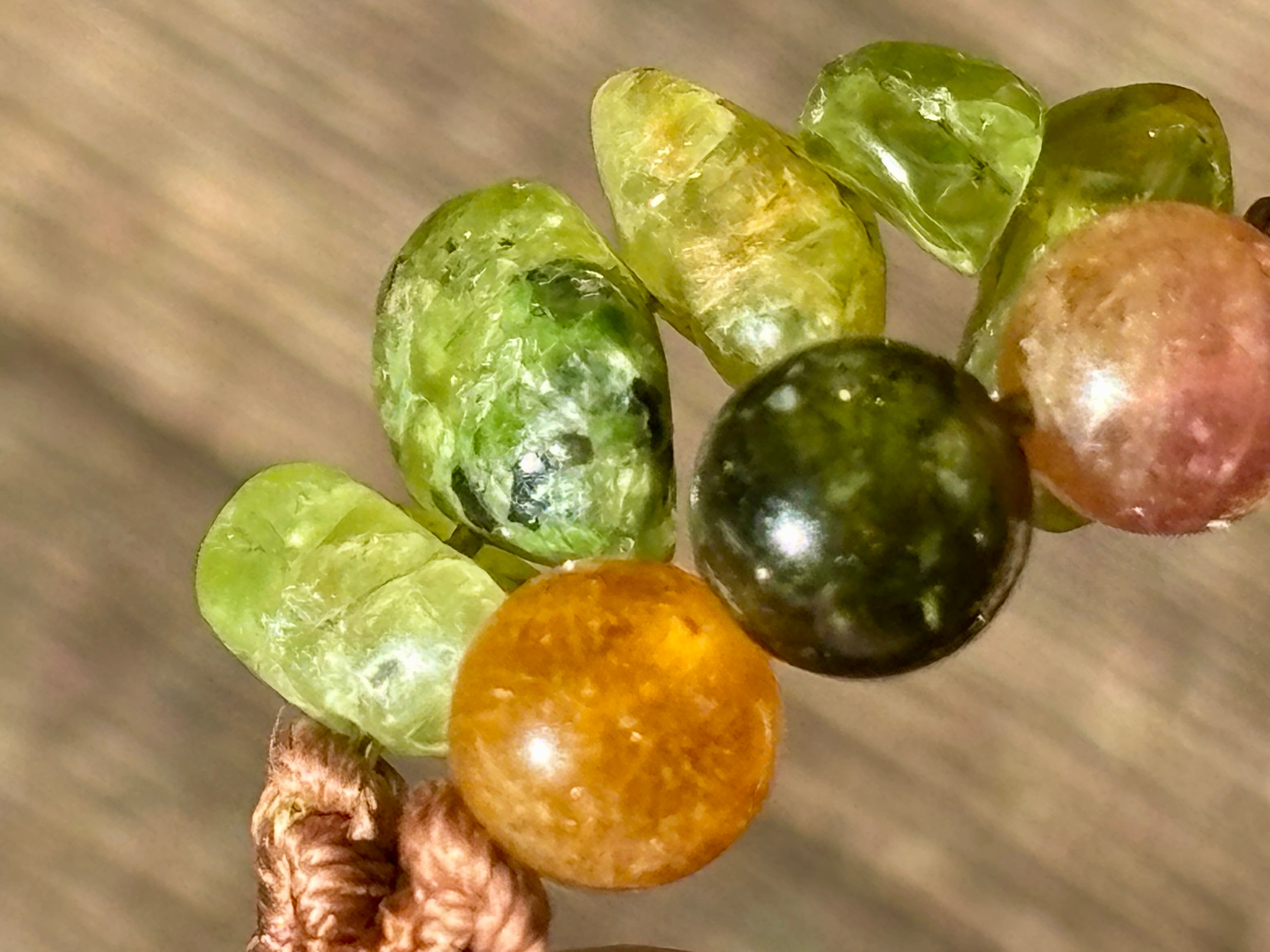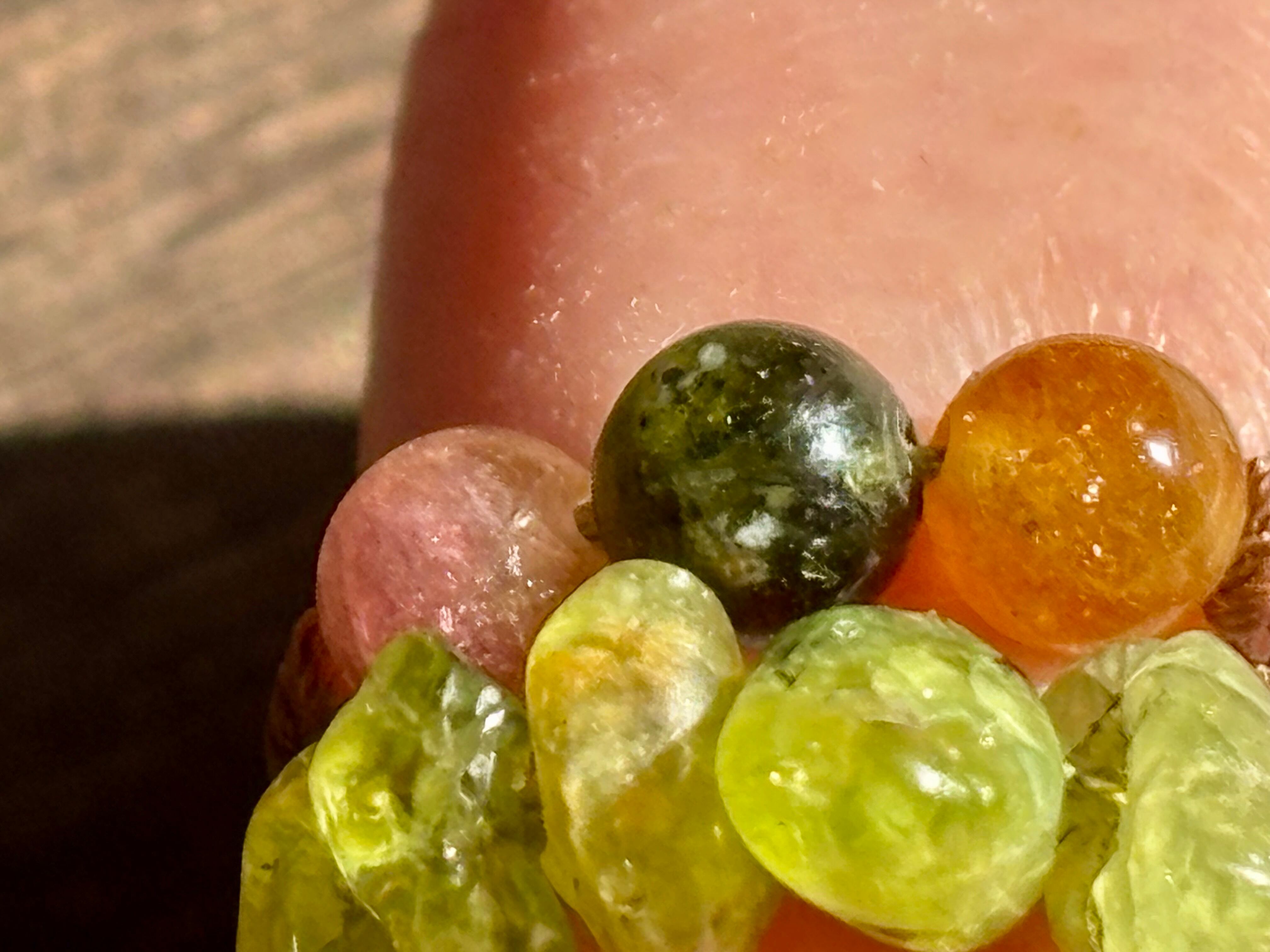 多様な色を持つことから「宝石の宝石箱」とも称され、一つ一つのキャンディーカラーが美しい、濃いグリーン、ピンク、イエローカラーの極上の逸品です♪