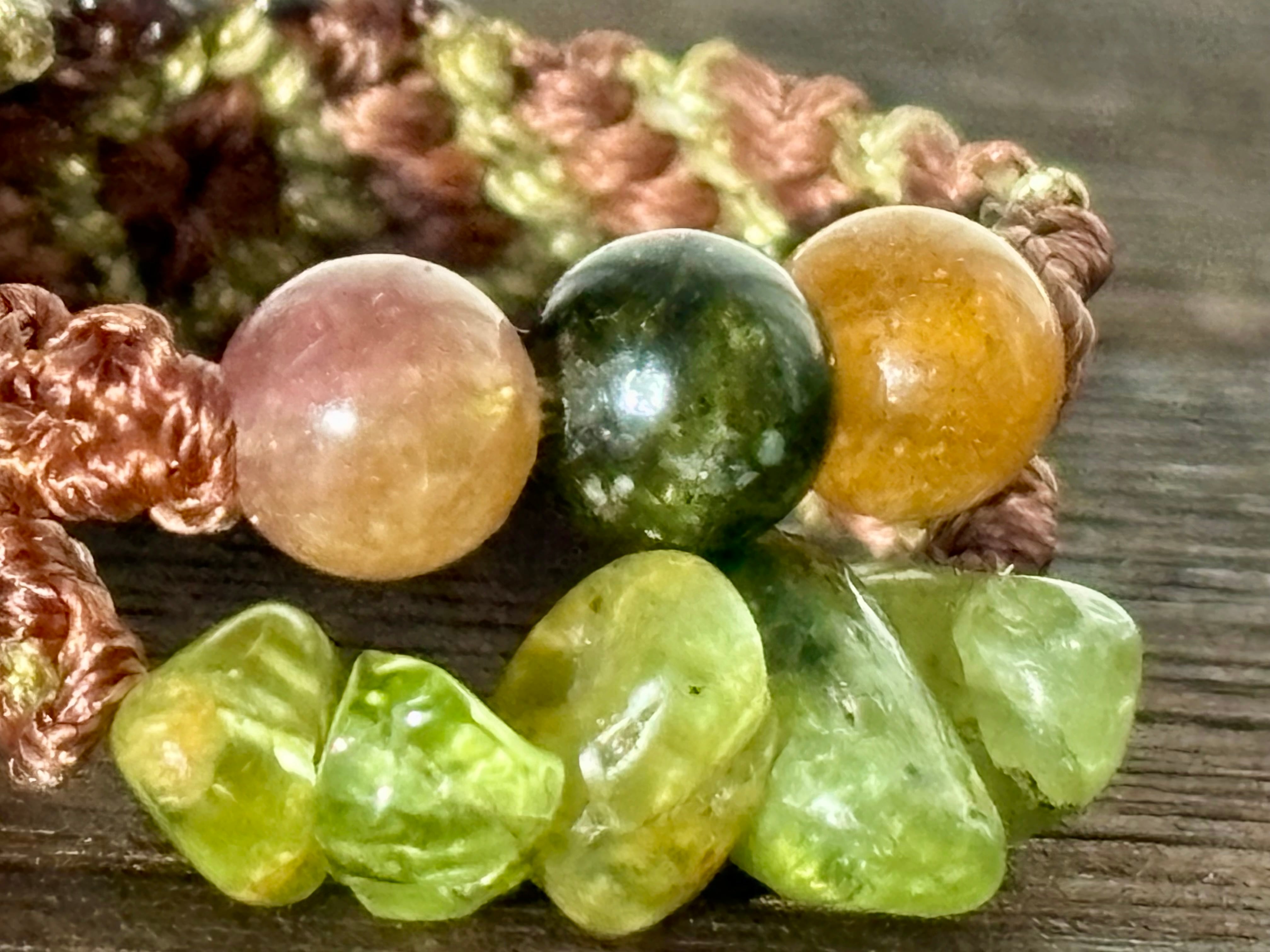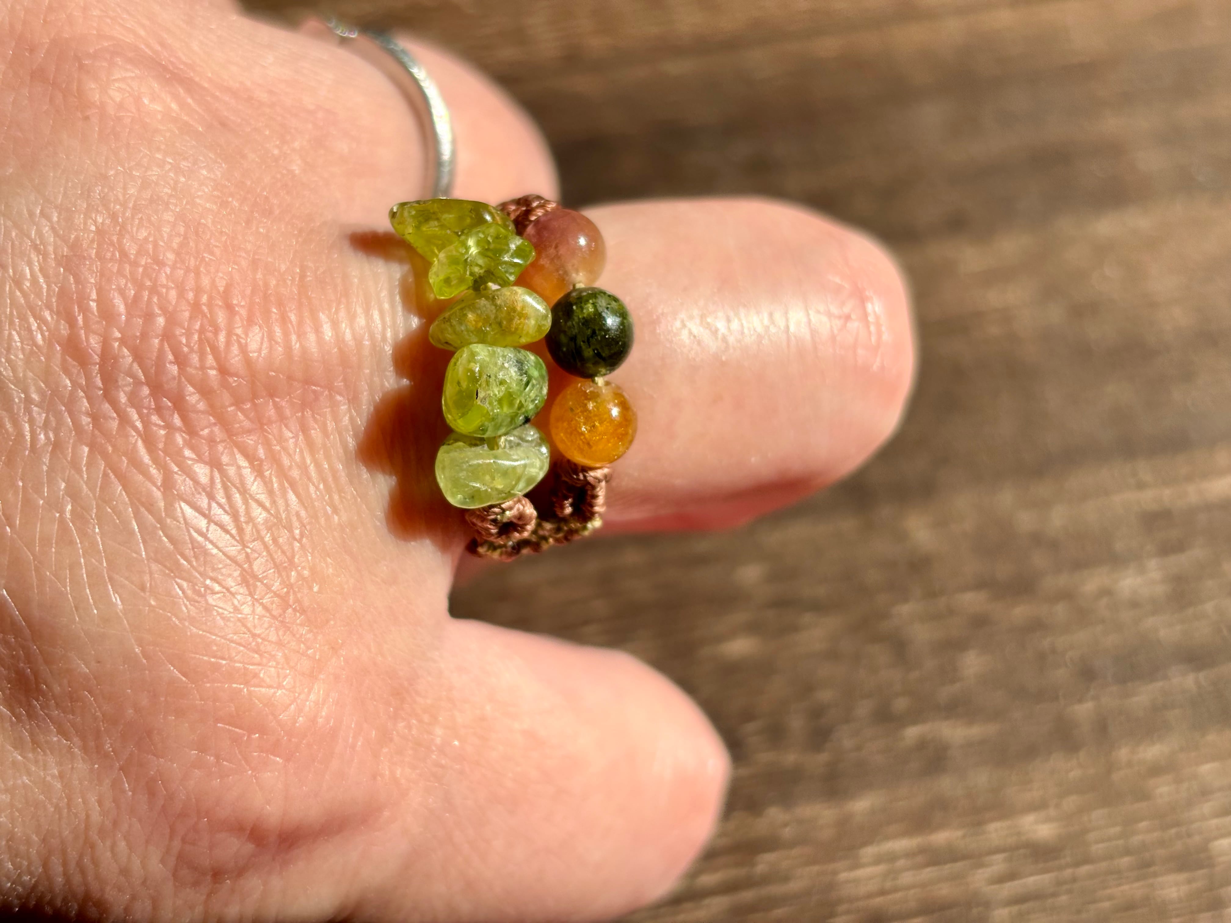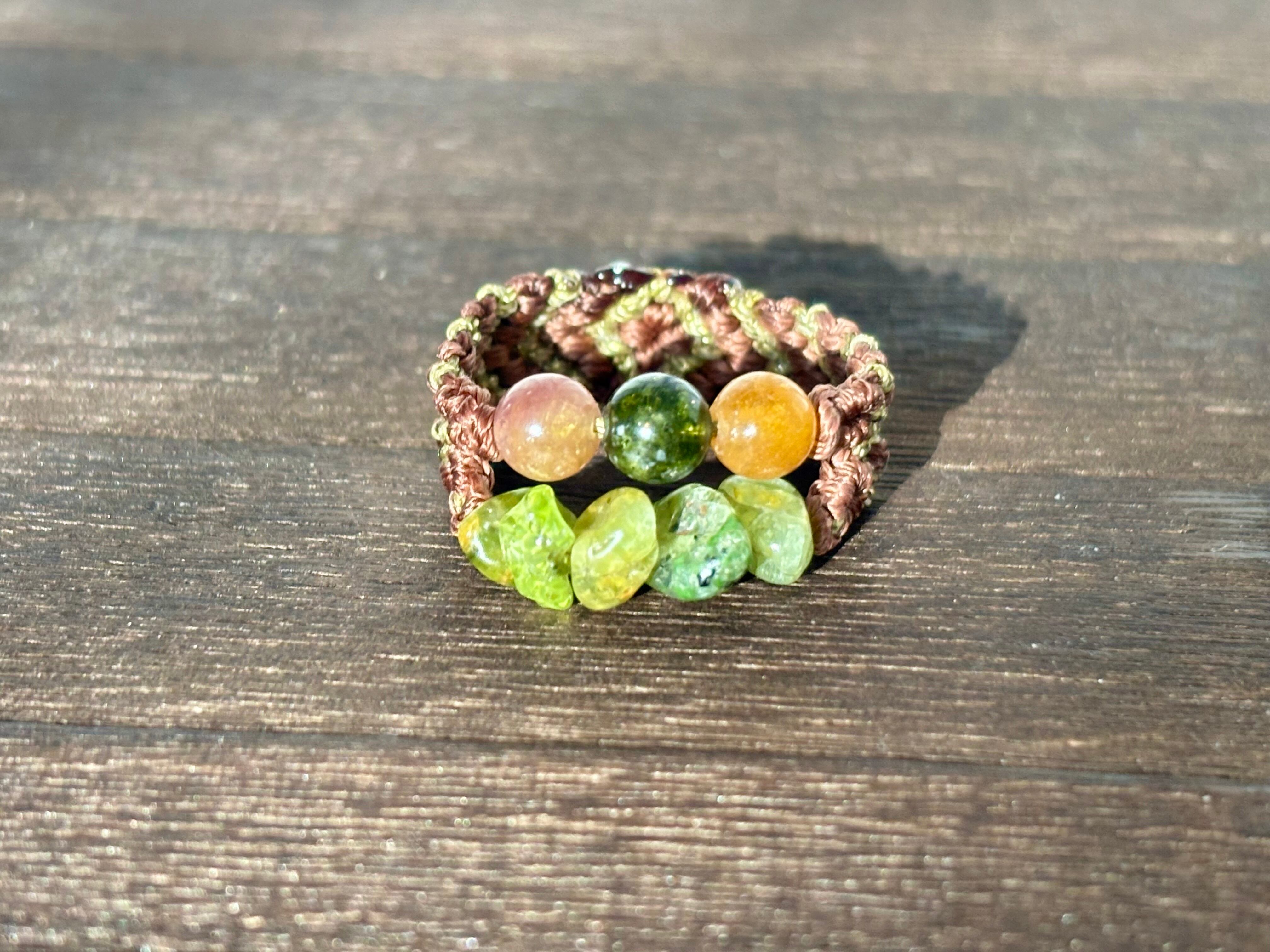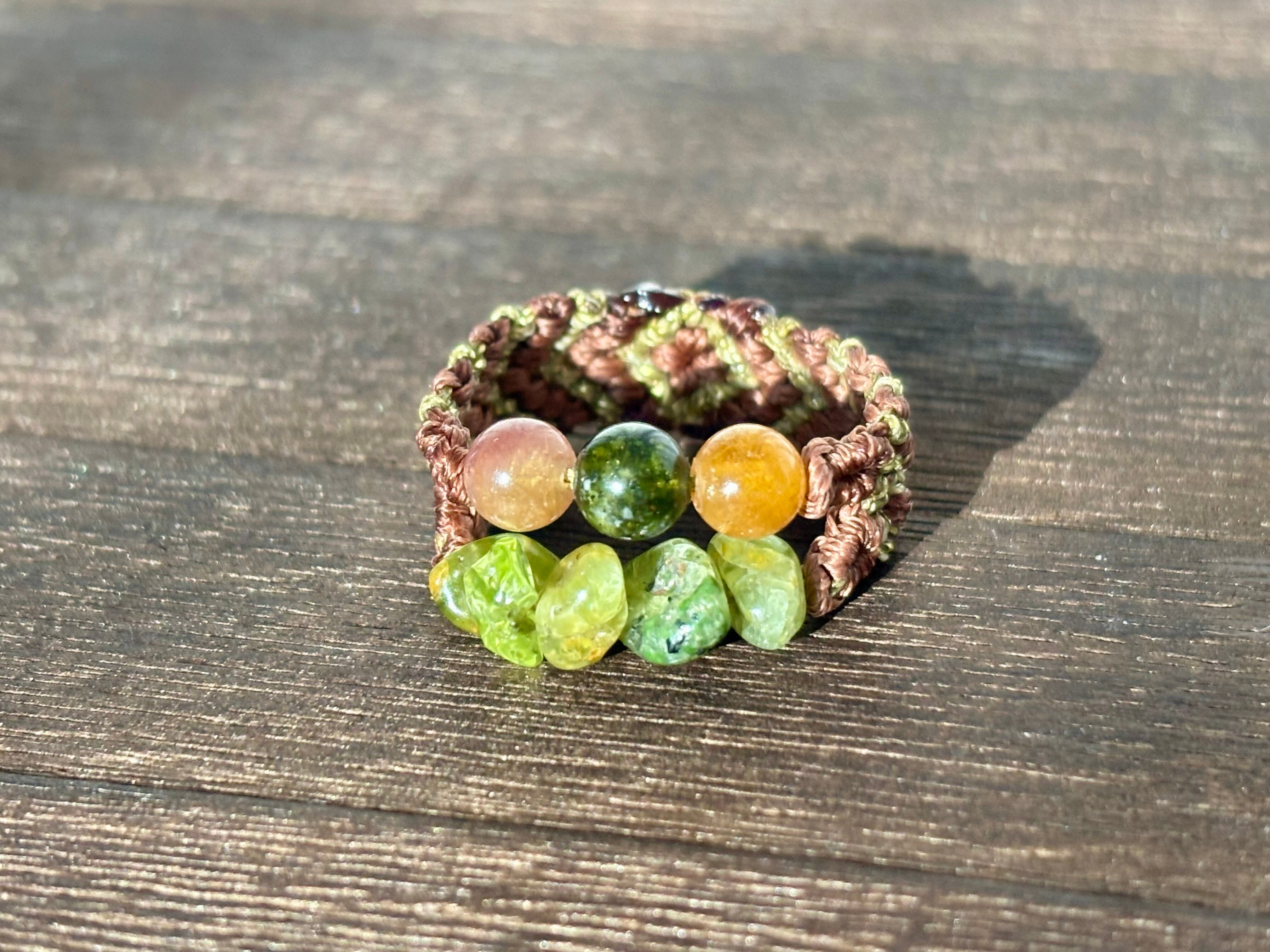 #1091高品質トルマリン5A!2連リング一点物(トルマリン×ペリドット マクラメ編み二連リング/指輪)