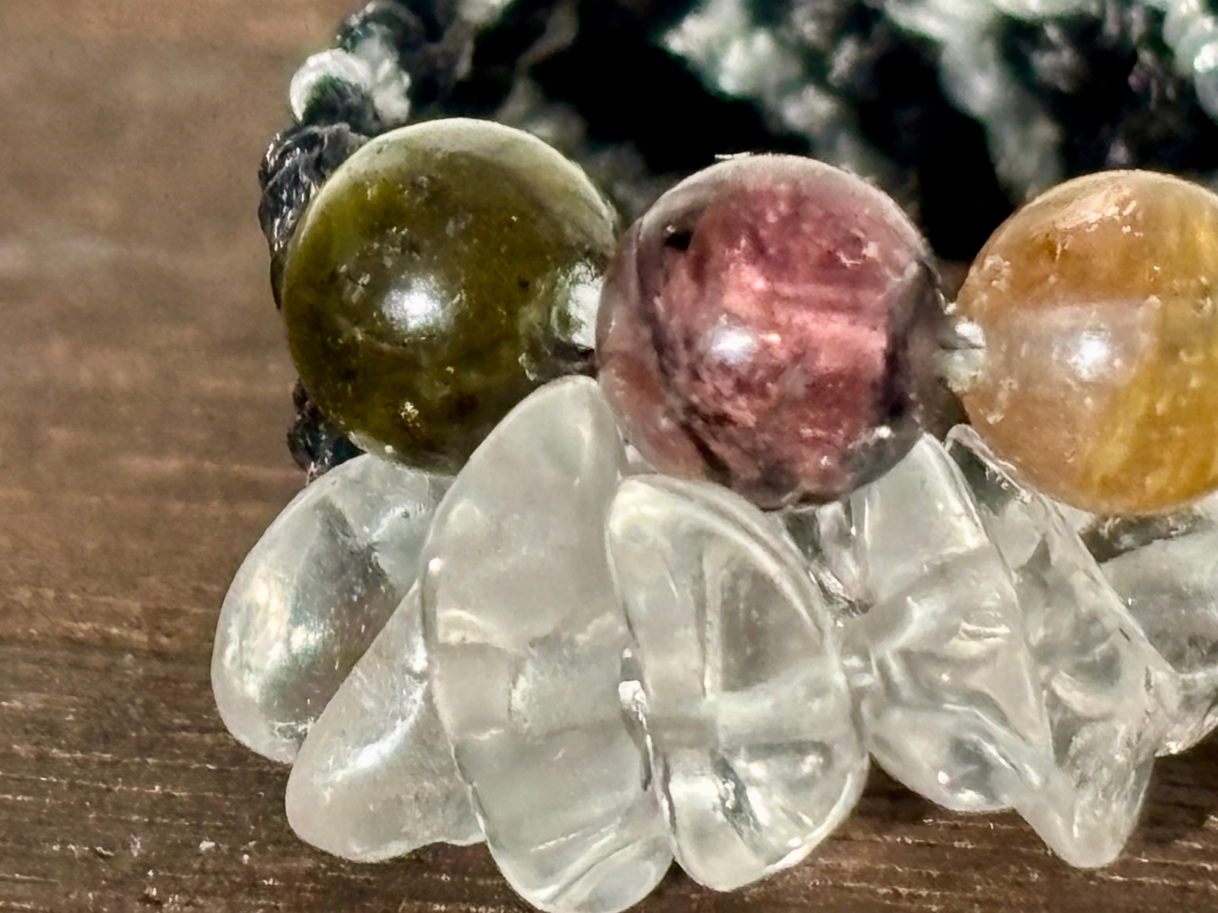 多様な色を持つことから「宝石の宝石箱」とも称され、一つ一つのキャンディーカラーが美しい、濃いグリーン、ネオンカラーピンク、ブラウンカラーの極上の逸品です♪