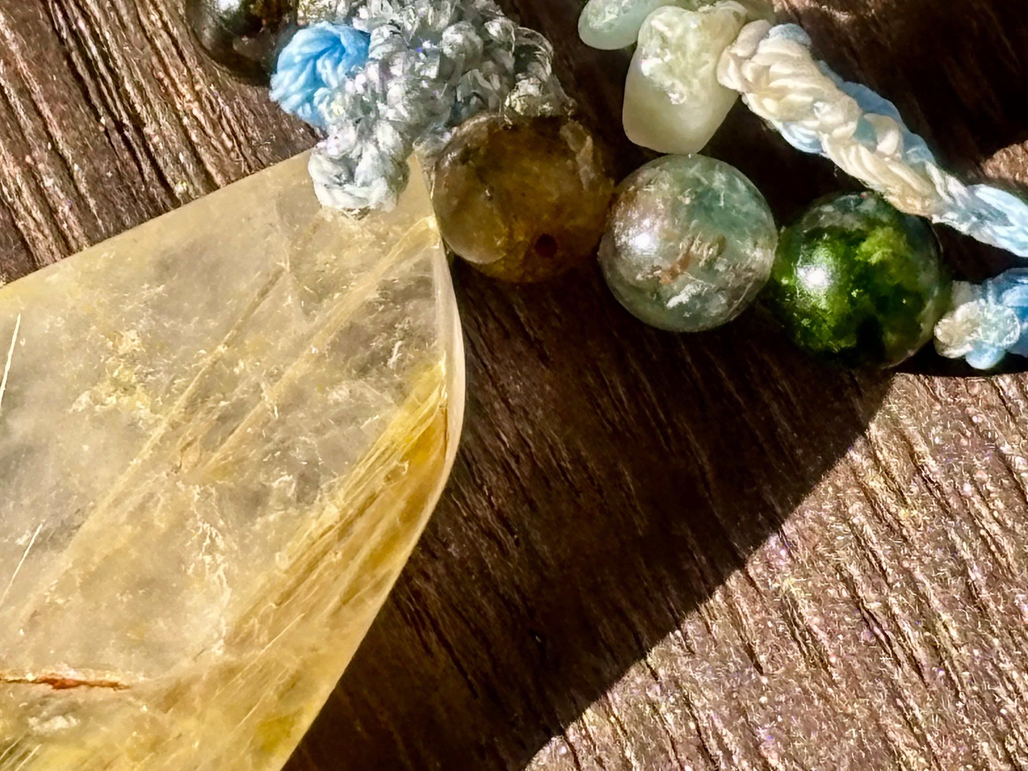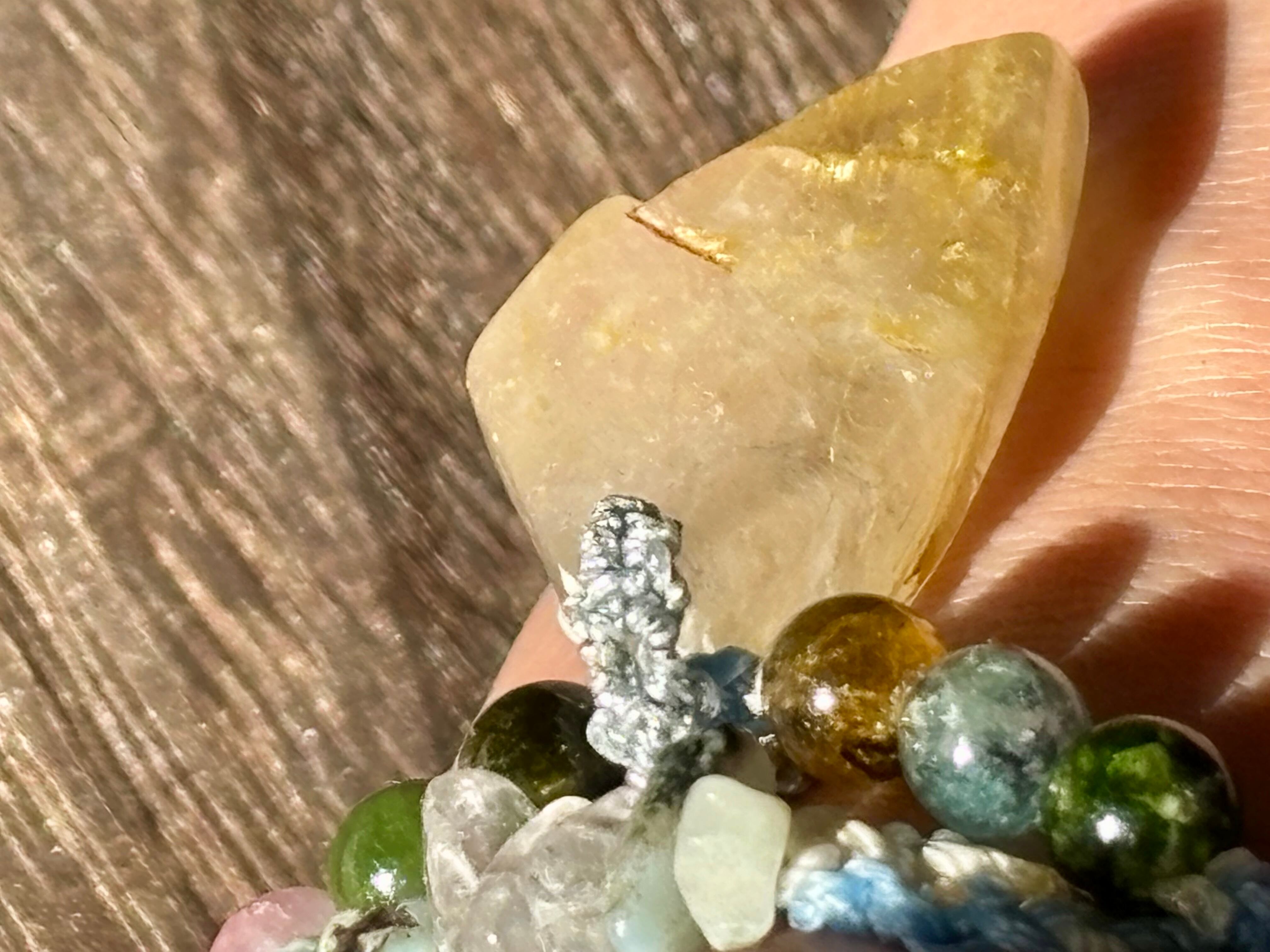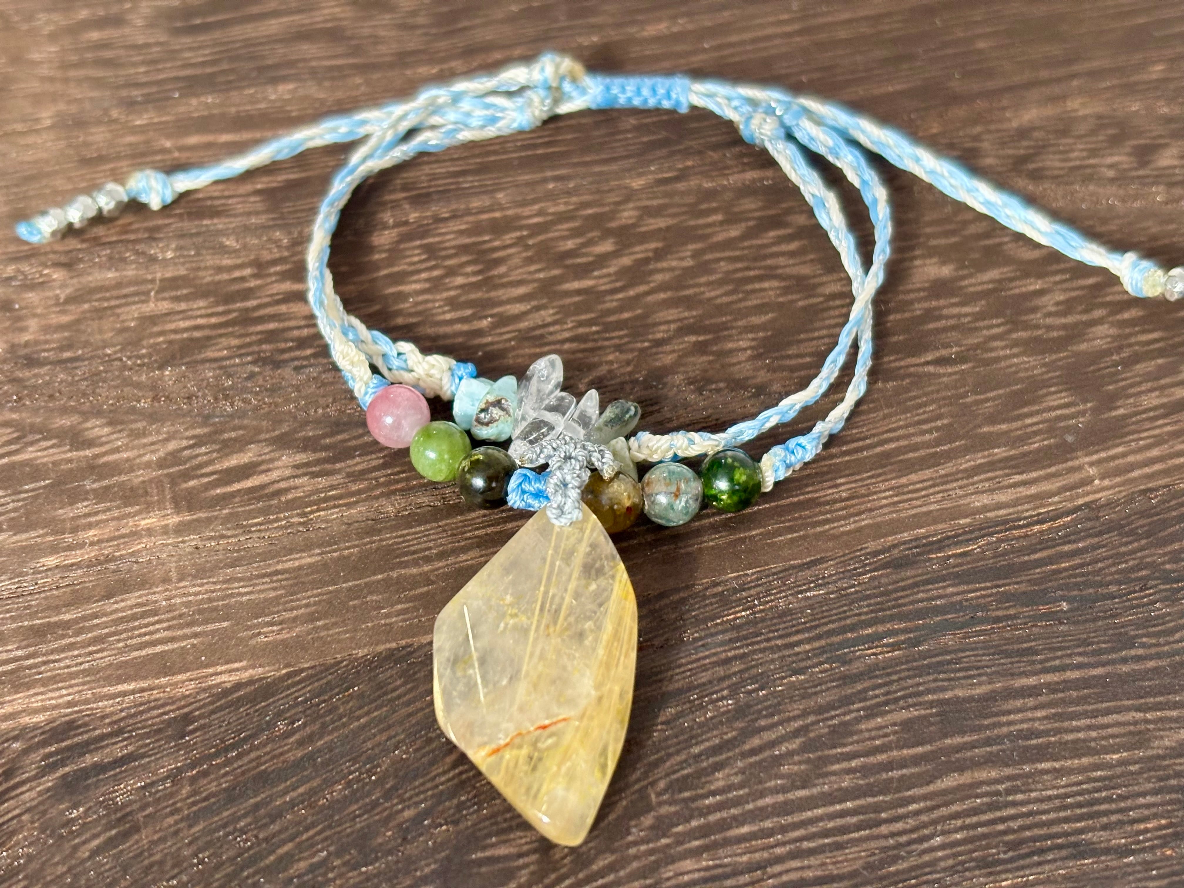 #1094高品質トルマリン&ルチル‼︎一点物(トルマリン×ルチルクォーツ×ラリマー×水晶 マクラメ編み二連ブレスレット)