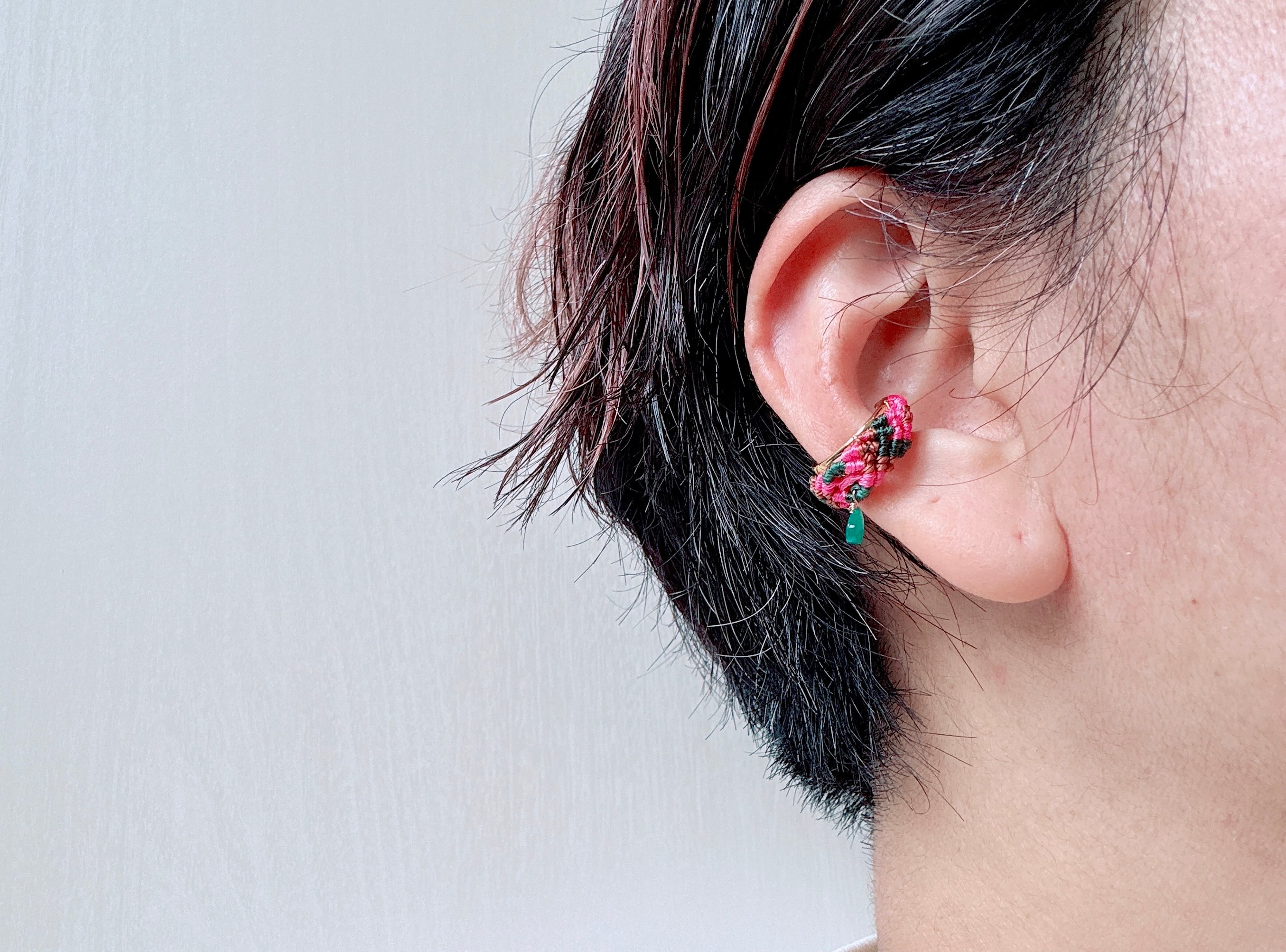 手作業で丁寧に編み込まれたこのイヤーカフは、日常のコーディネートに華を添えるだけでなく、特別な場面でも存在感を発揮します。