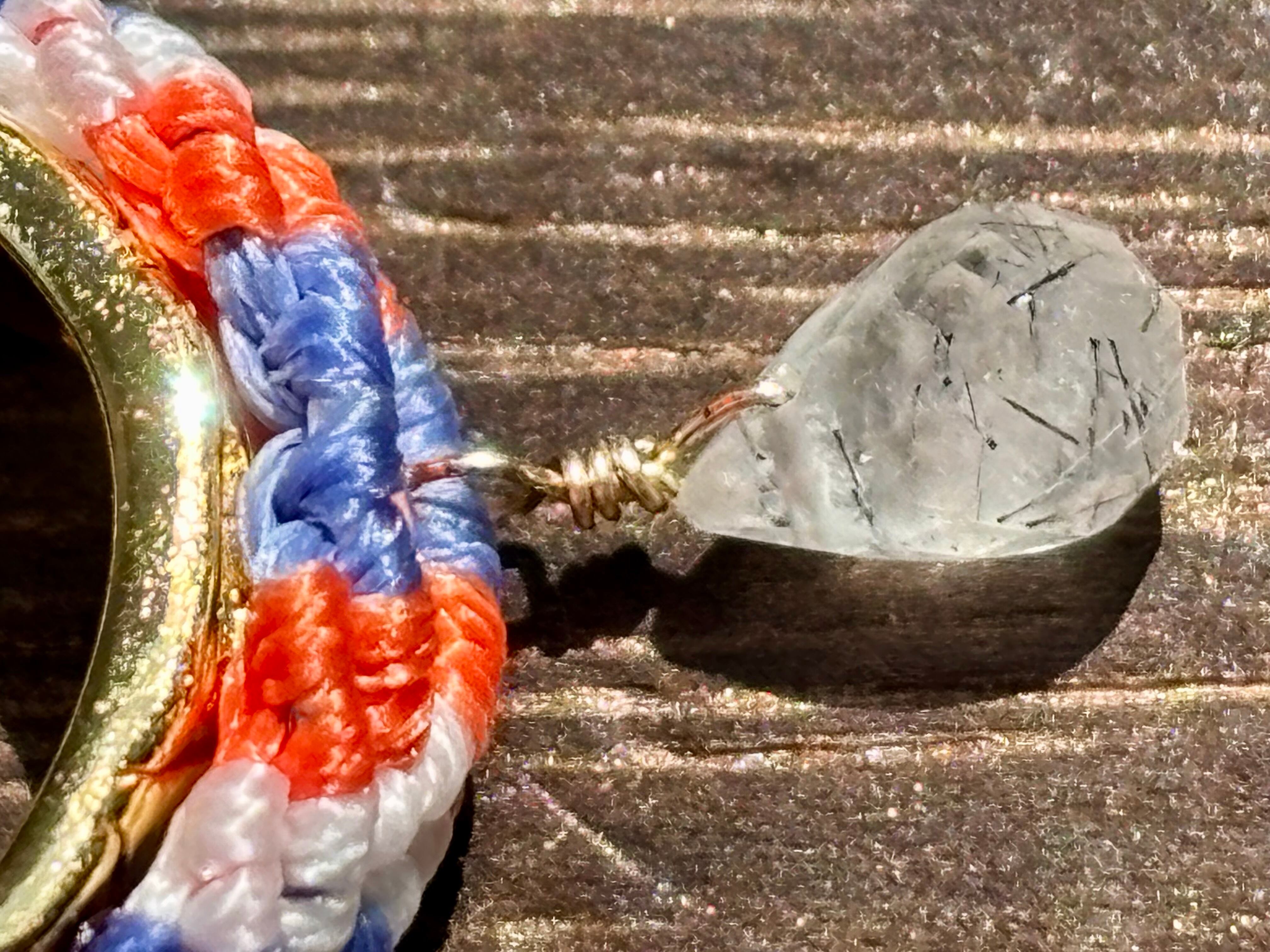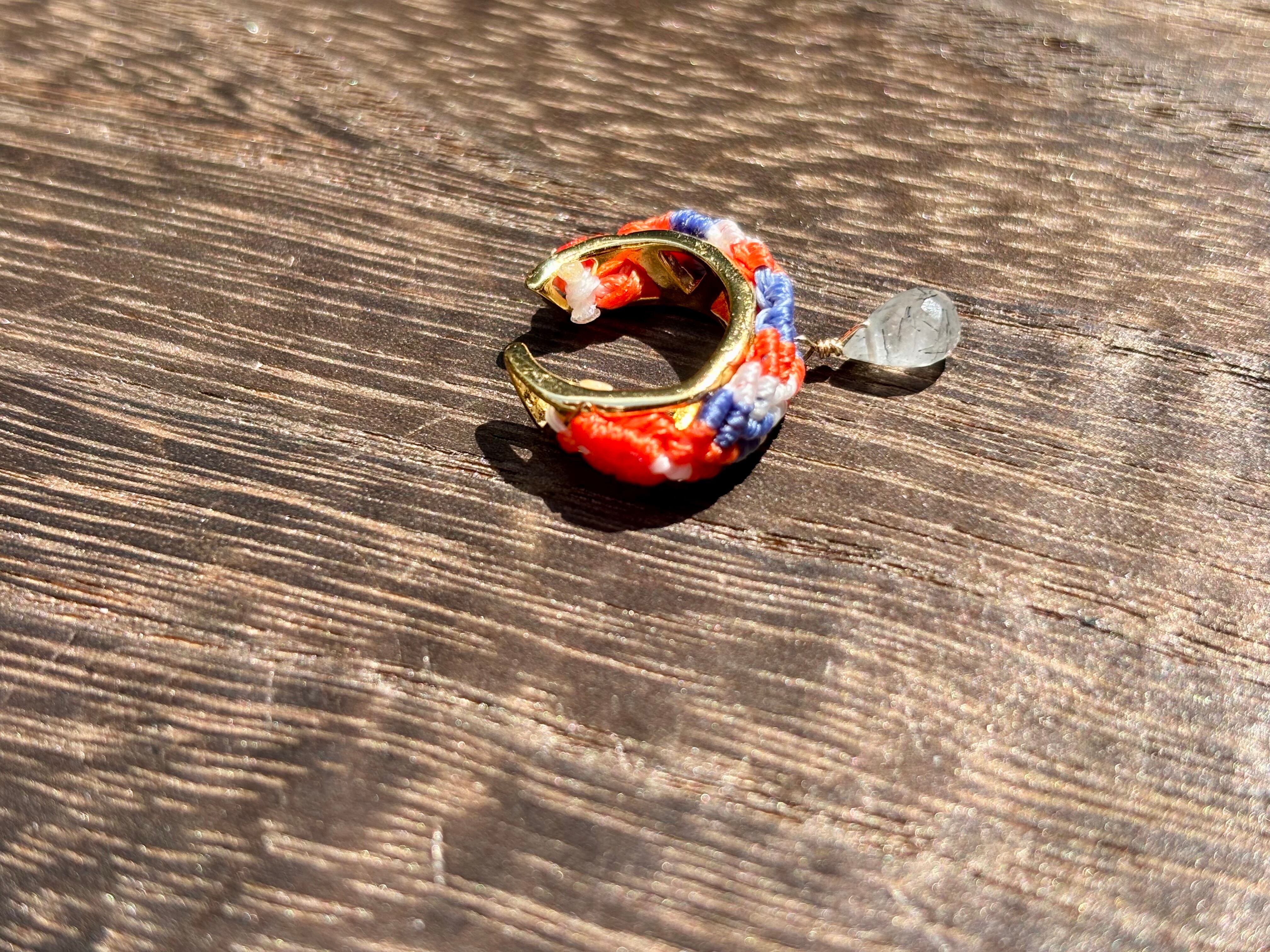 #1100ブラックルチルクォーツ一点物(ブラックルチルクォーツ マクラメ編みイヤーカフ)