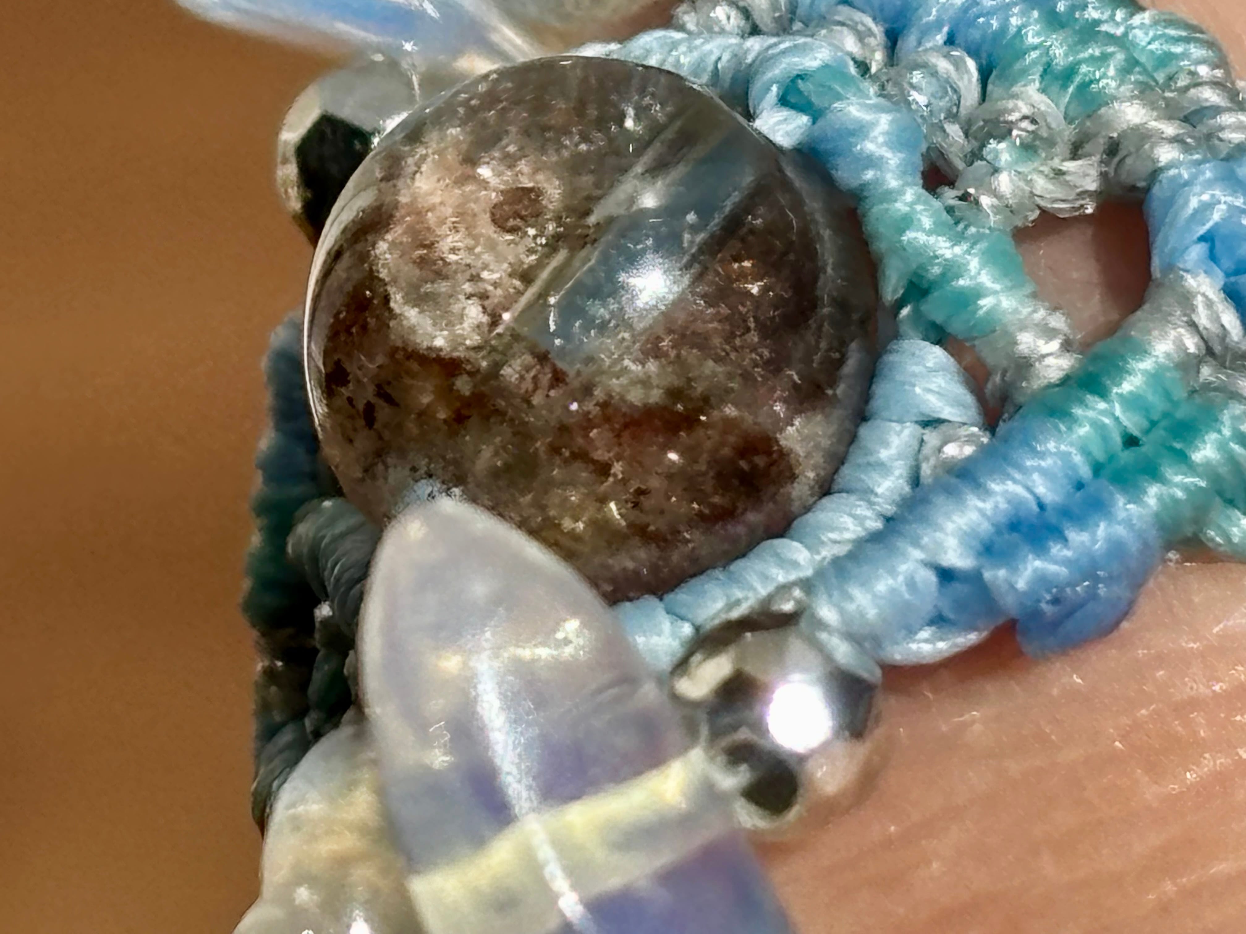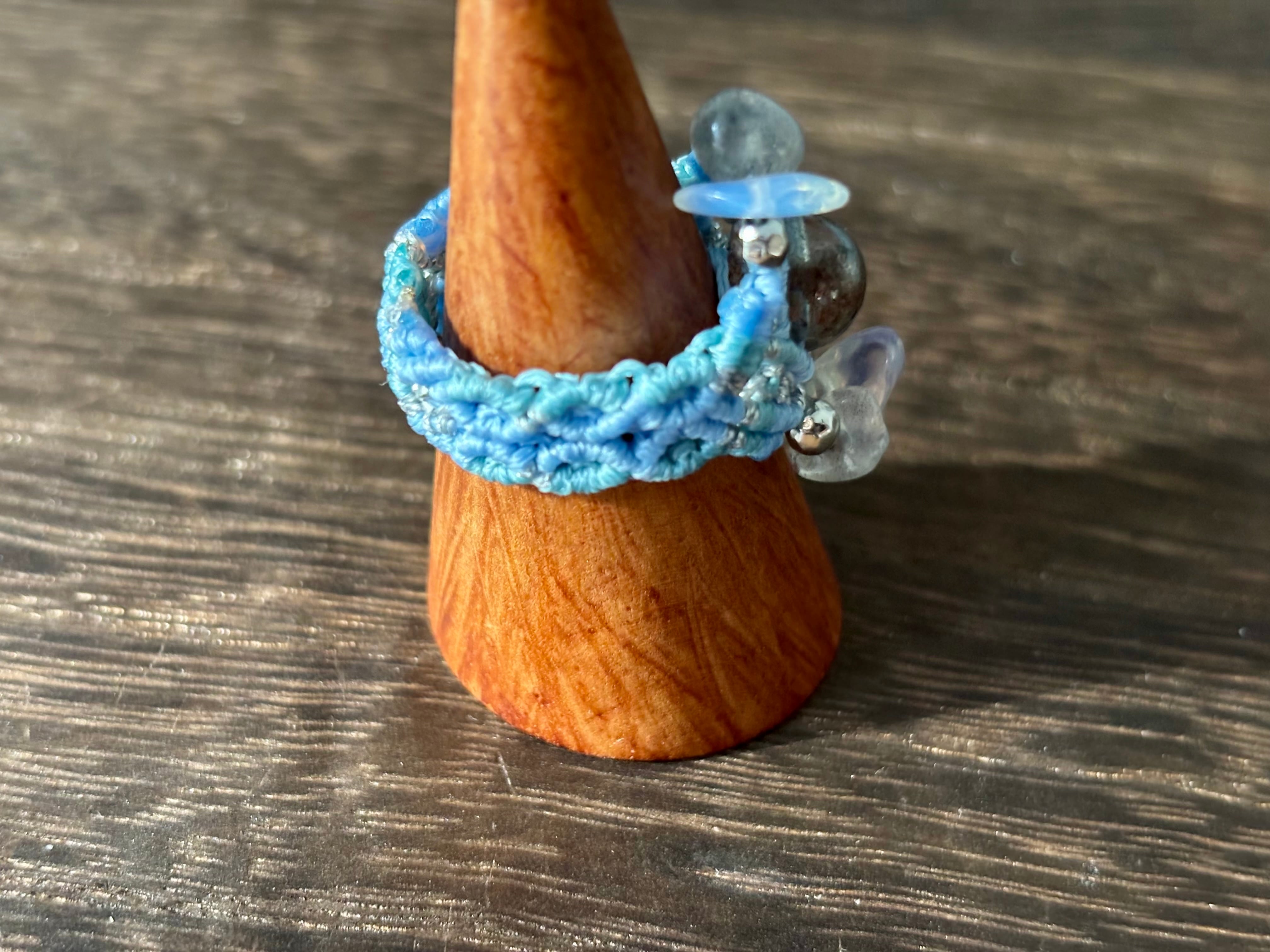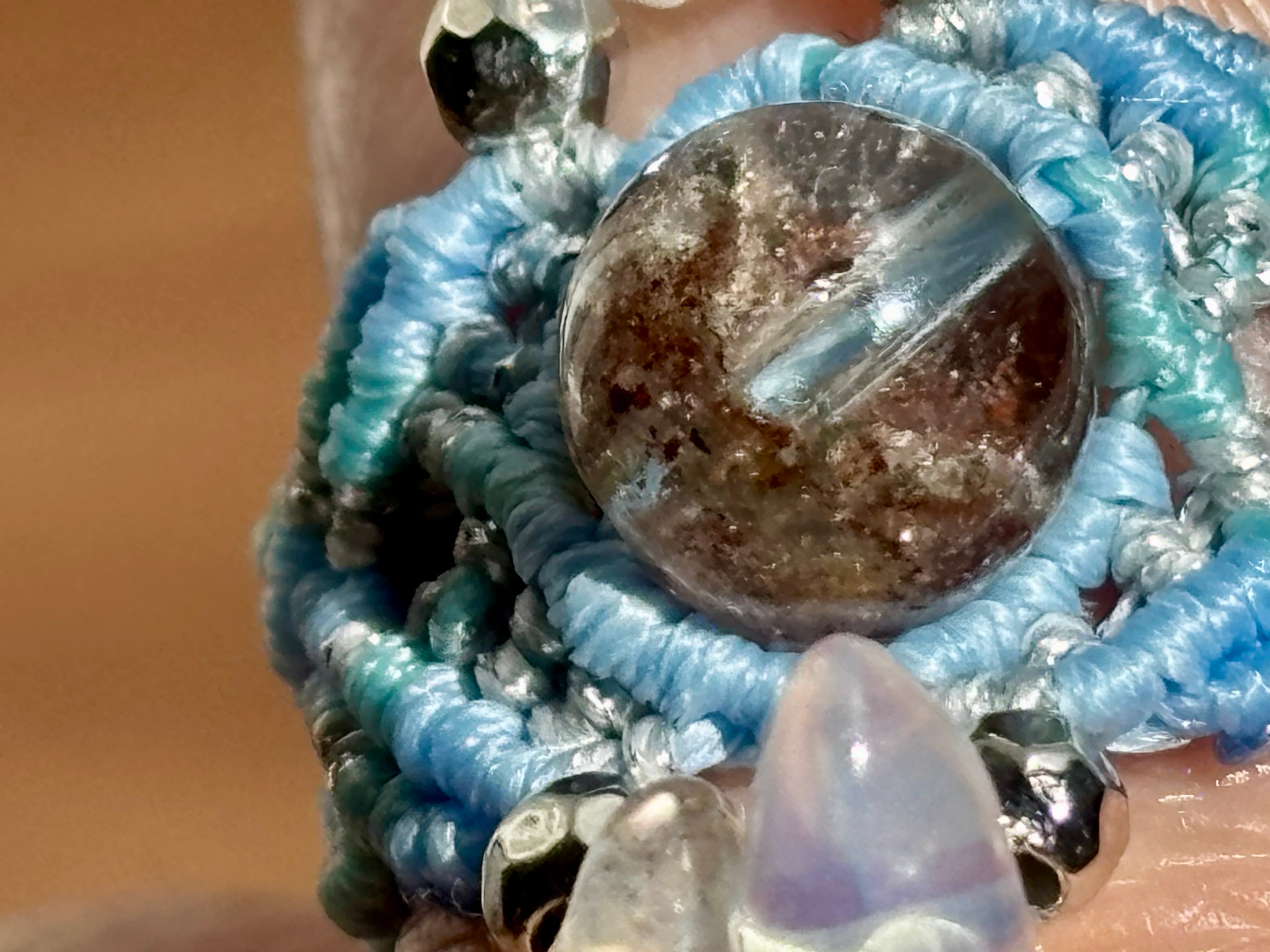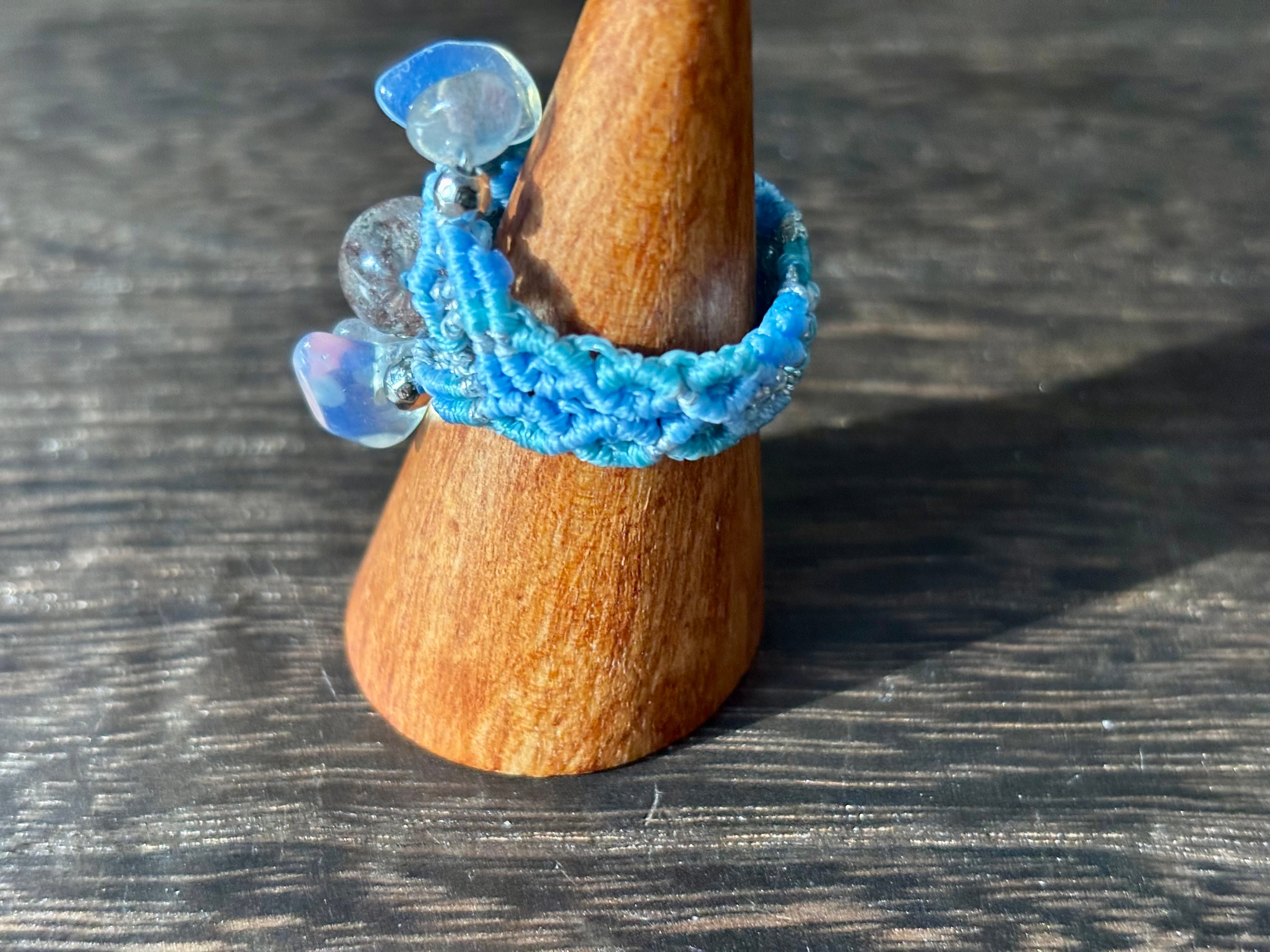 #1105高透明!!ガーデンクォーツ一点物(ガーデンクォーツ×ラブラドライト×瑪瑙(オーロラ加工) マクラメ編みリング/指輪)
