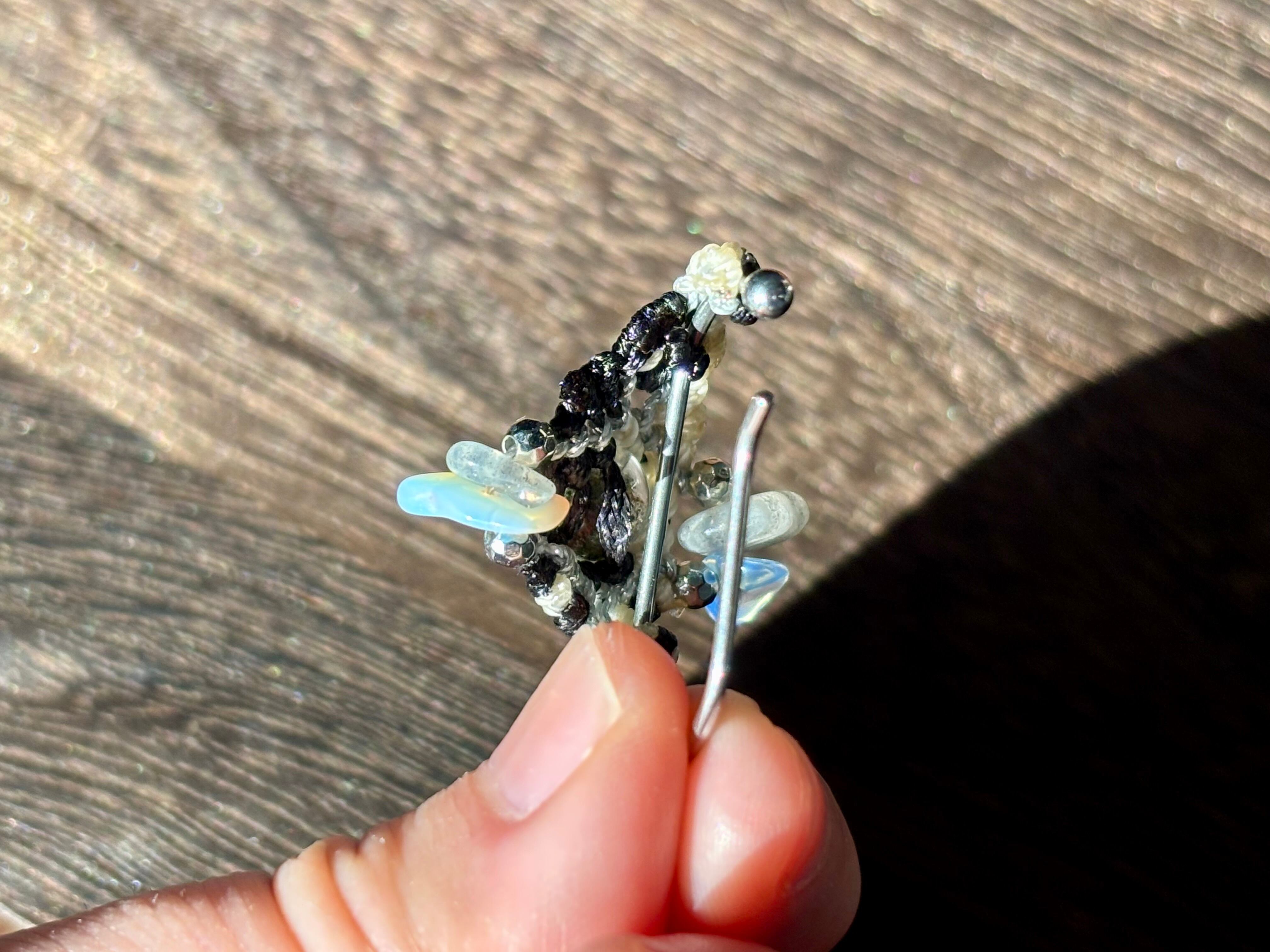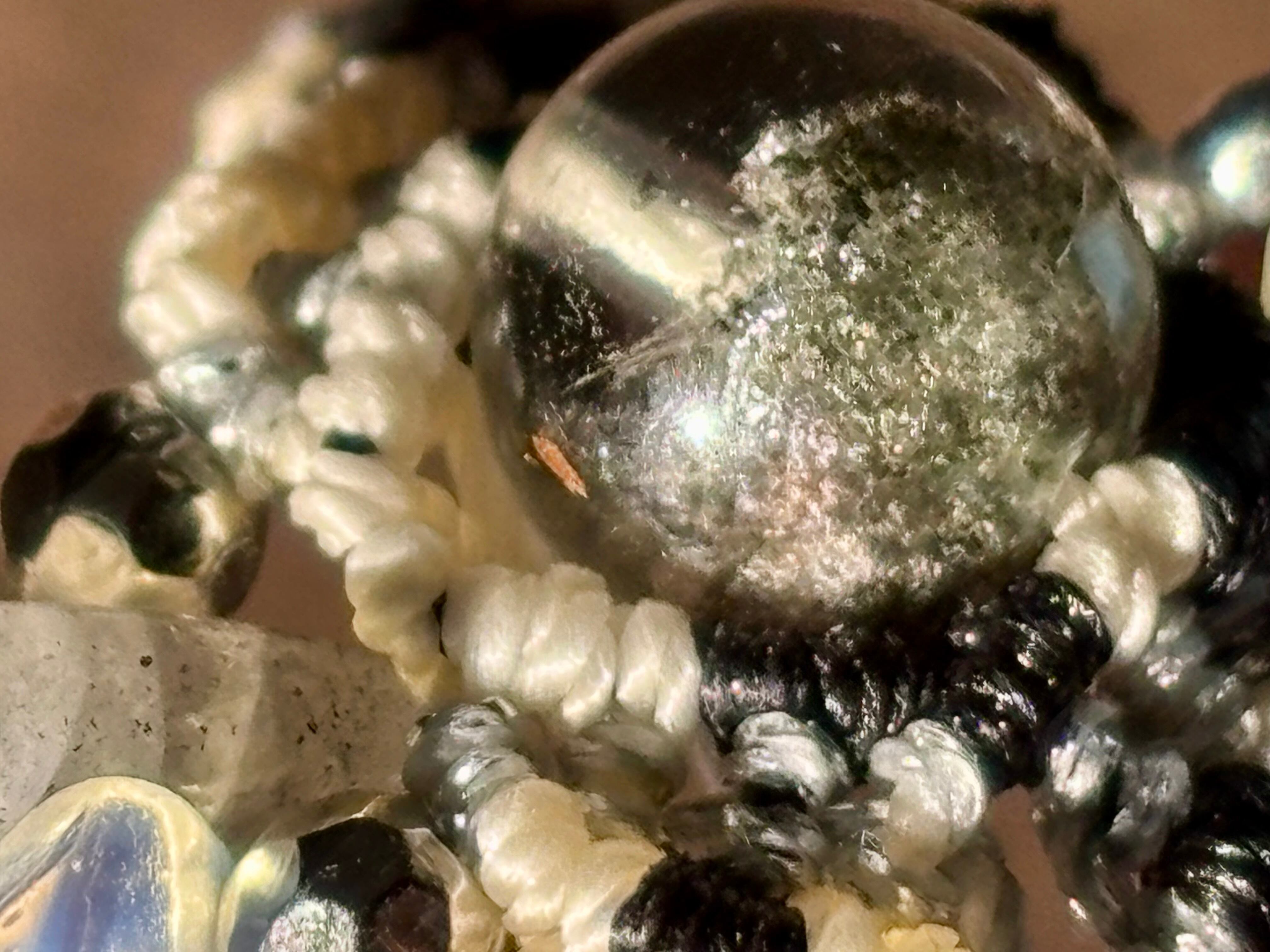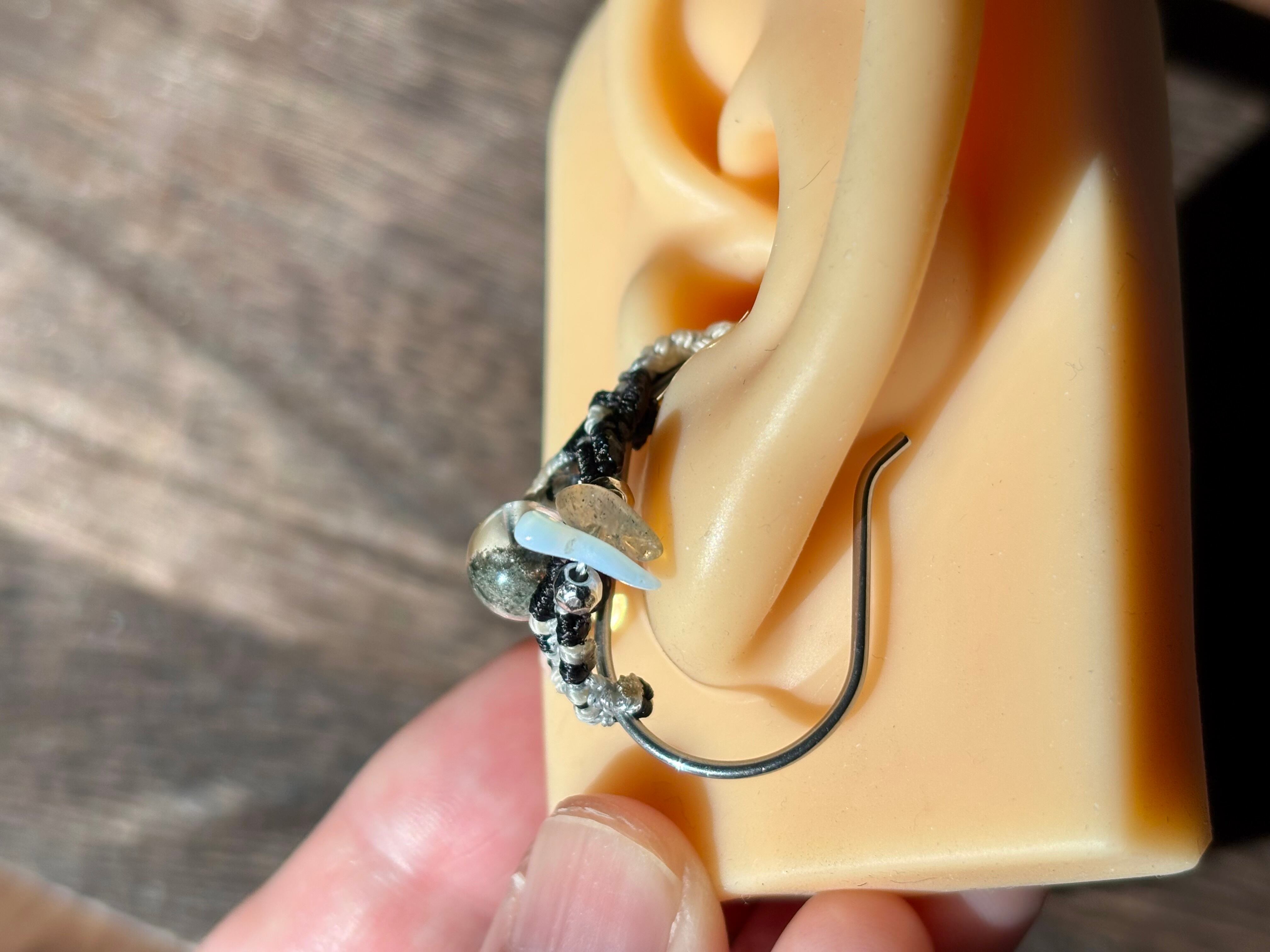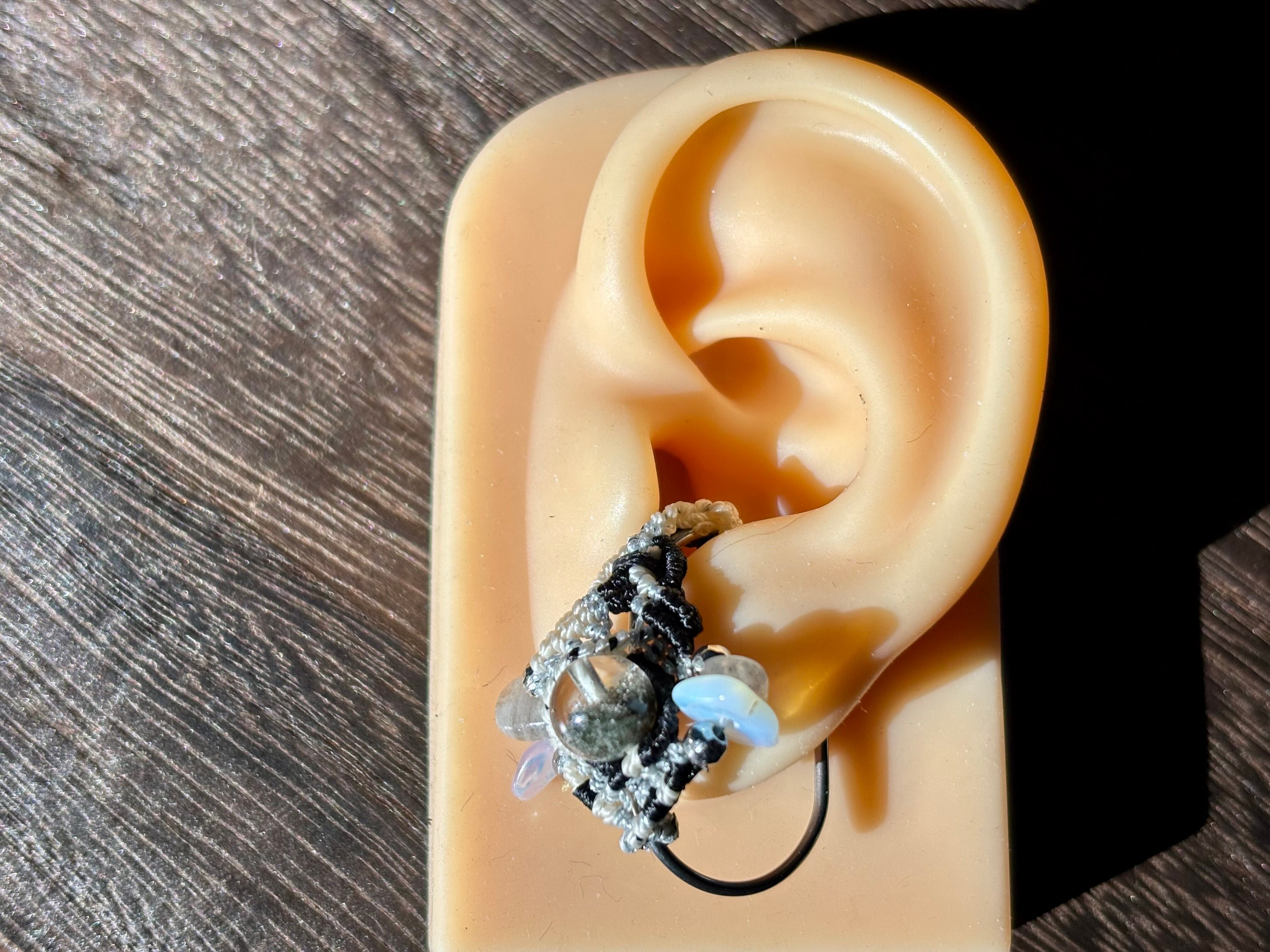 #1108高透明!!ガーデンクォーツ一点物(ガーデンクォーツ×ラブラドライト×瑪瑙(オーロラ加工) マクラメ編みイヤーカフ)
