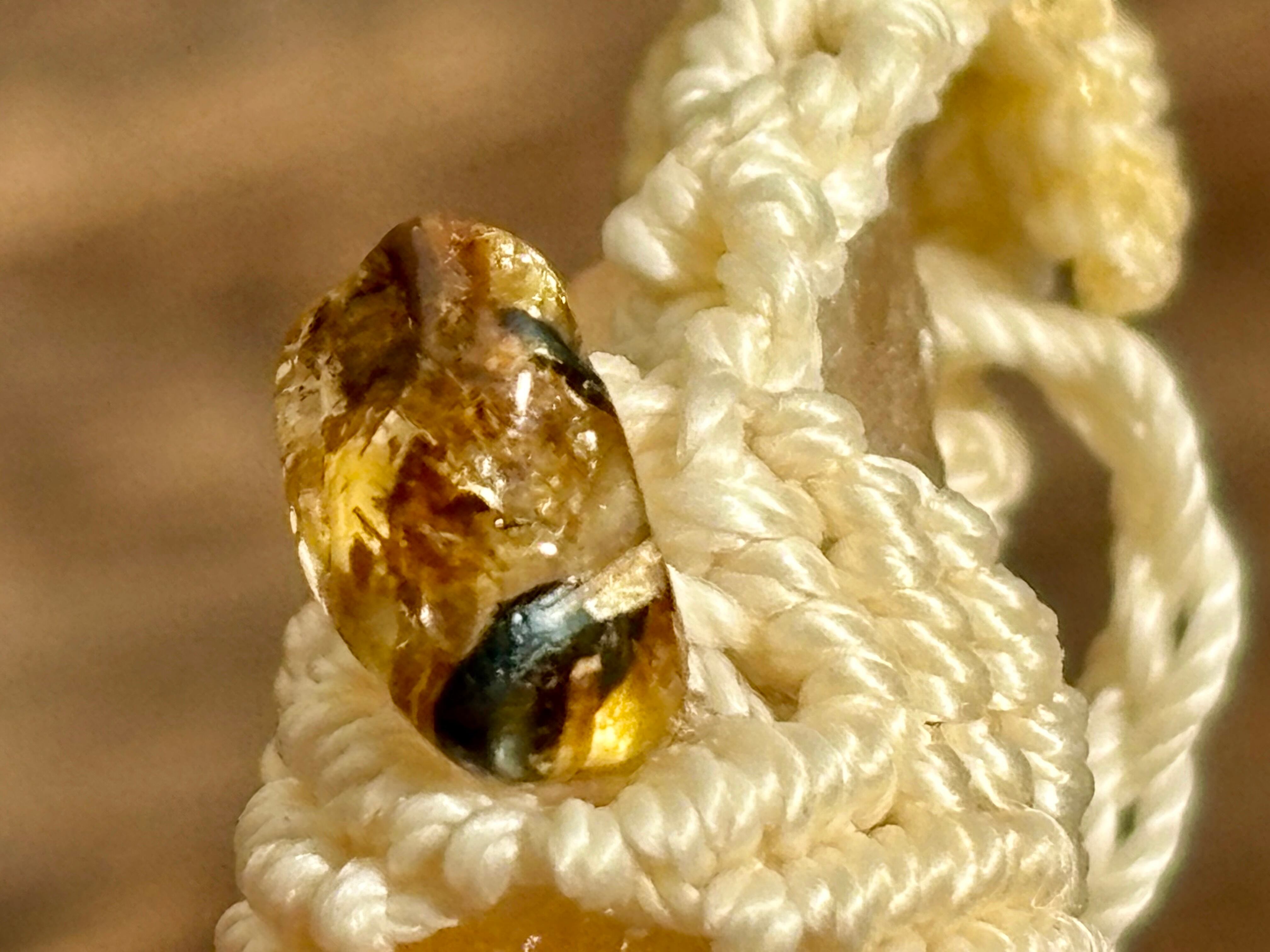 #1110黄金レムリアンシード一点物(ゴールデンレムリアンシード×ルチルクォーツ マクラメ編みネックレス)