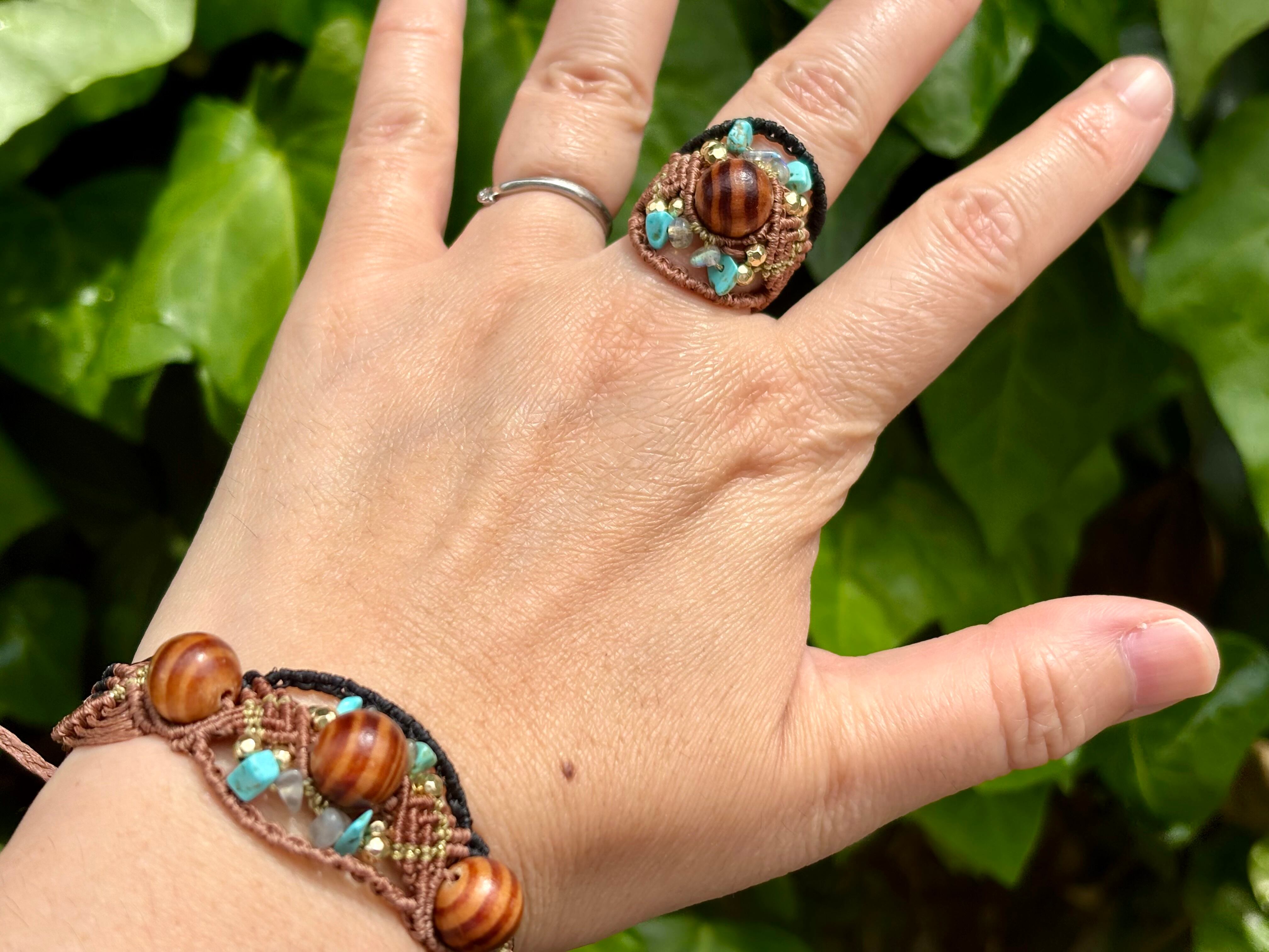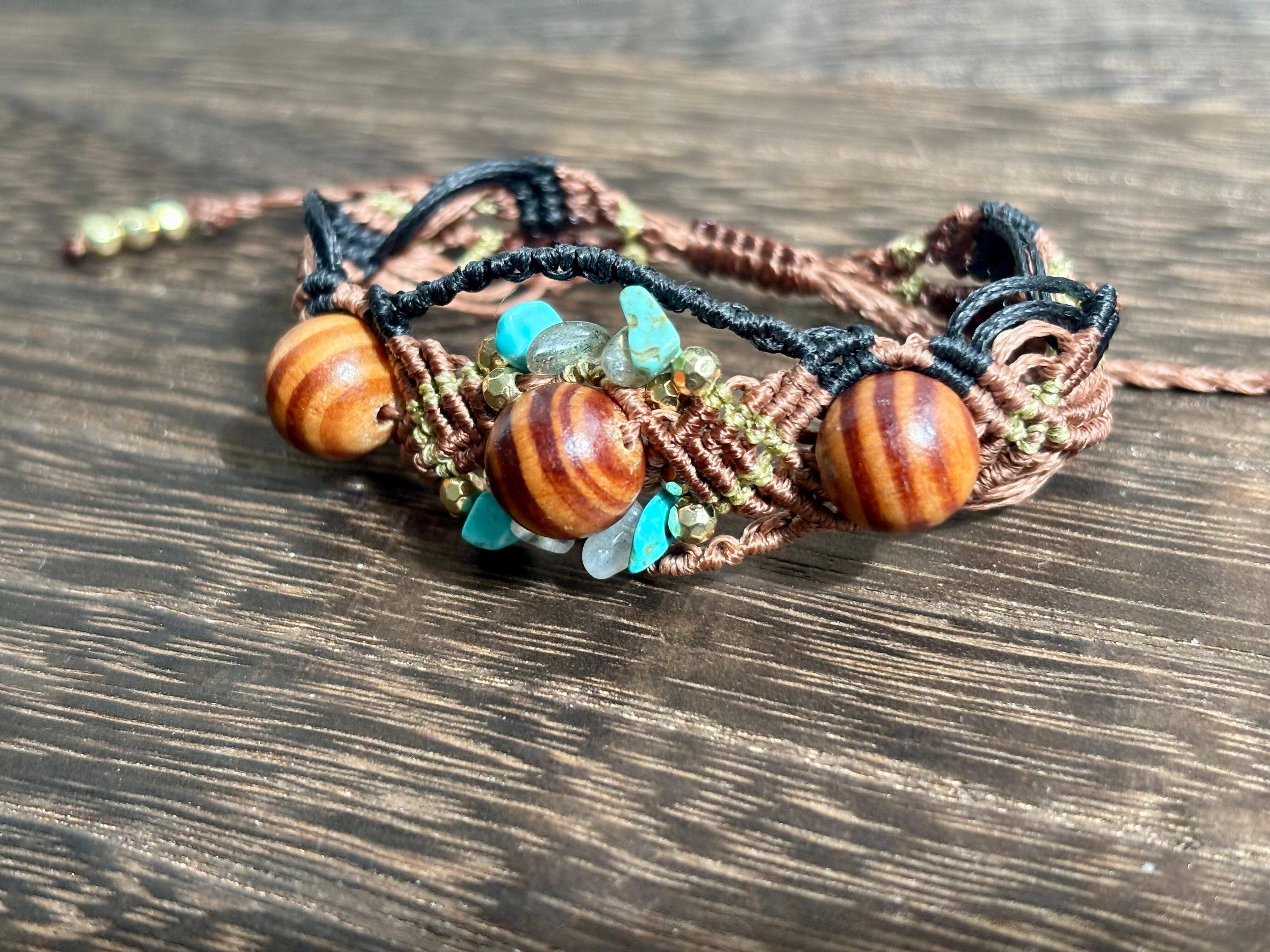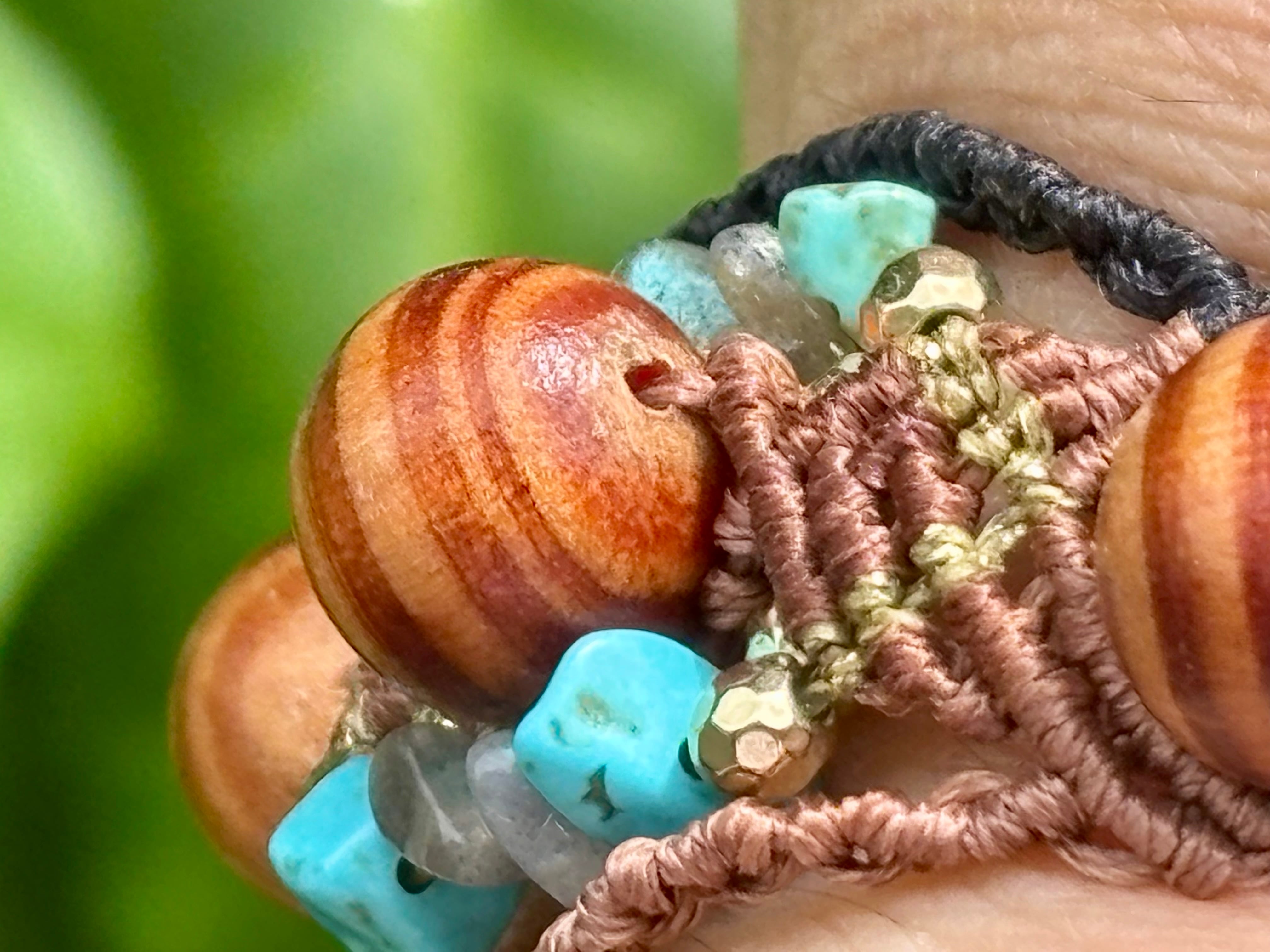#1115キングドラゴンウッド一点物(キングドラゴンウッド×ラブラドライト×ターコイズ マクラメ編みブレスレット)
