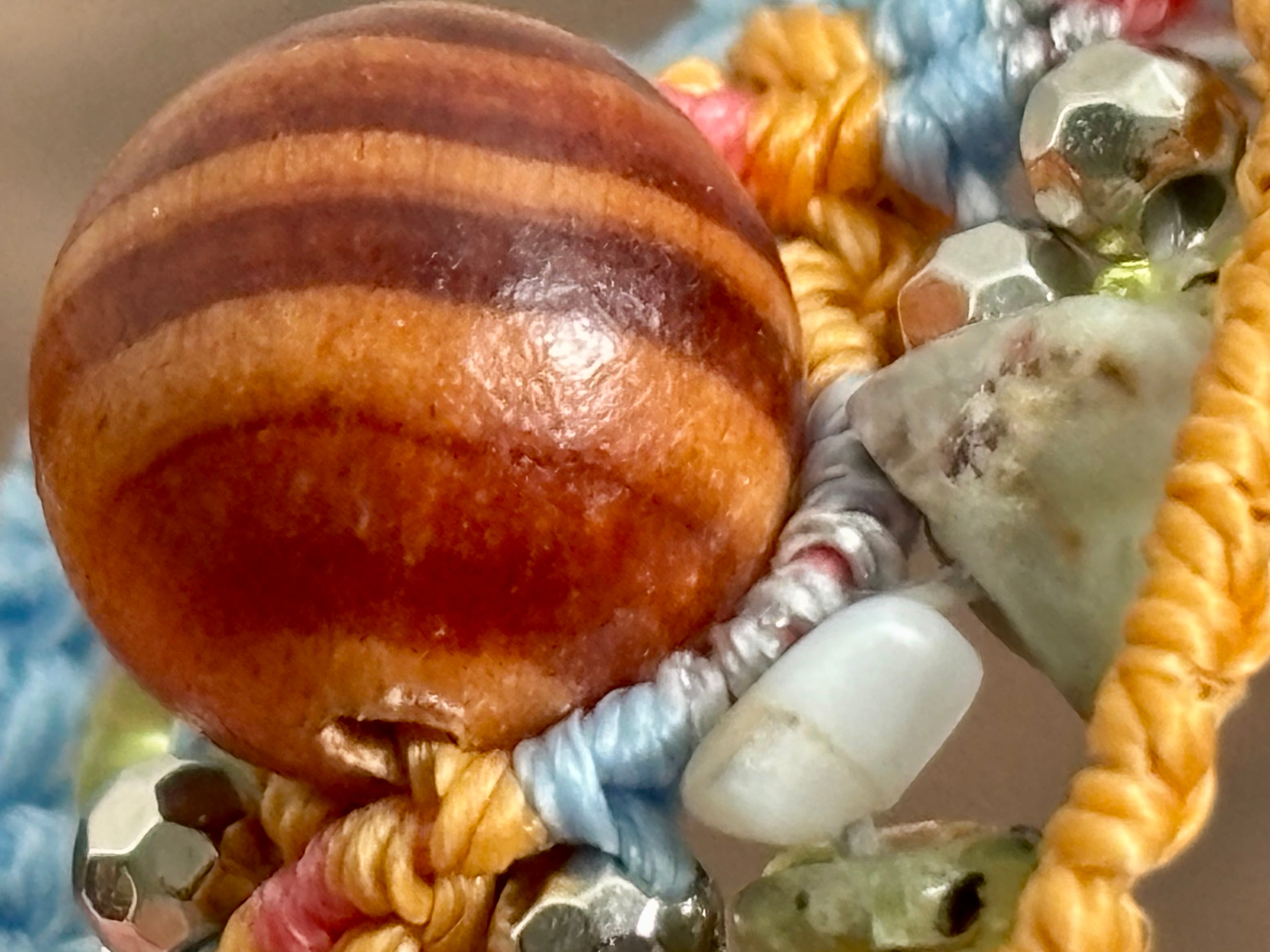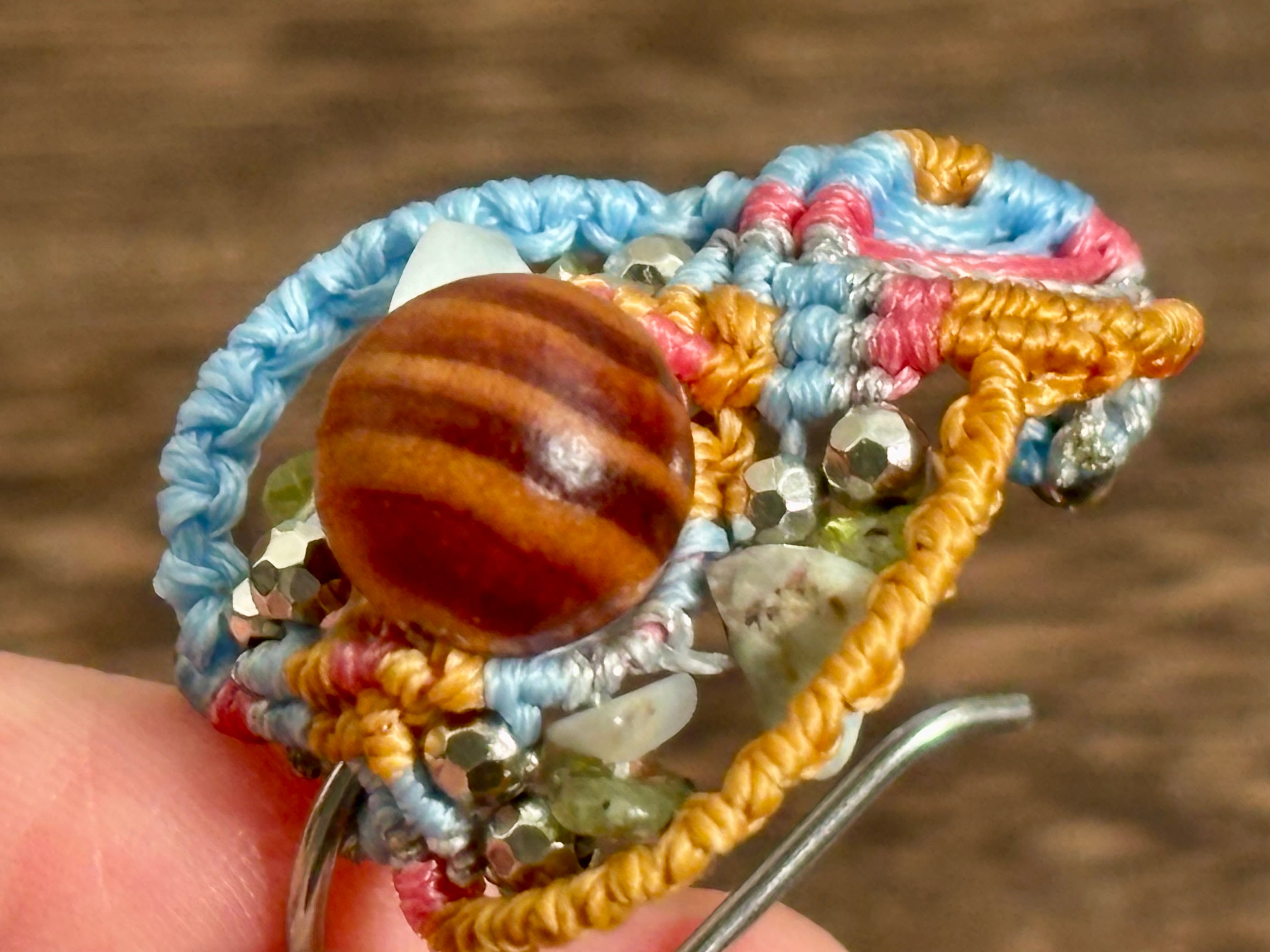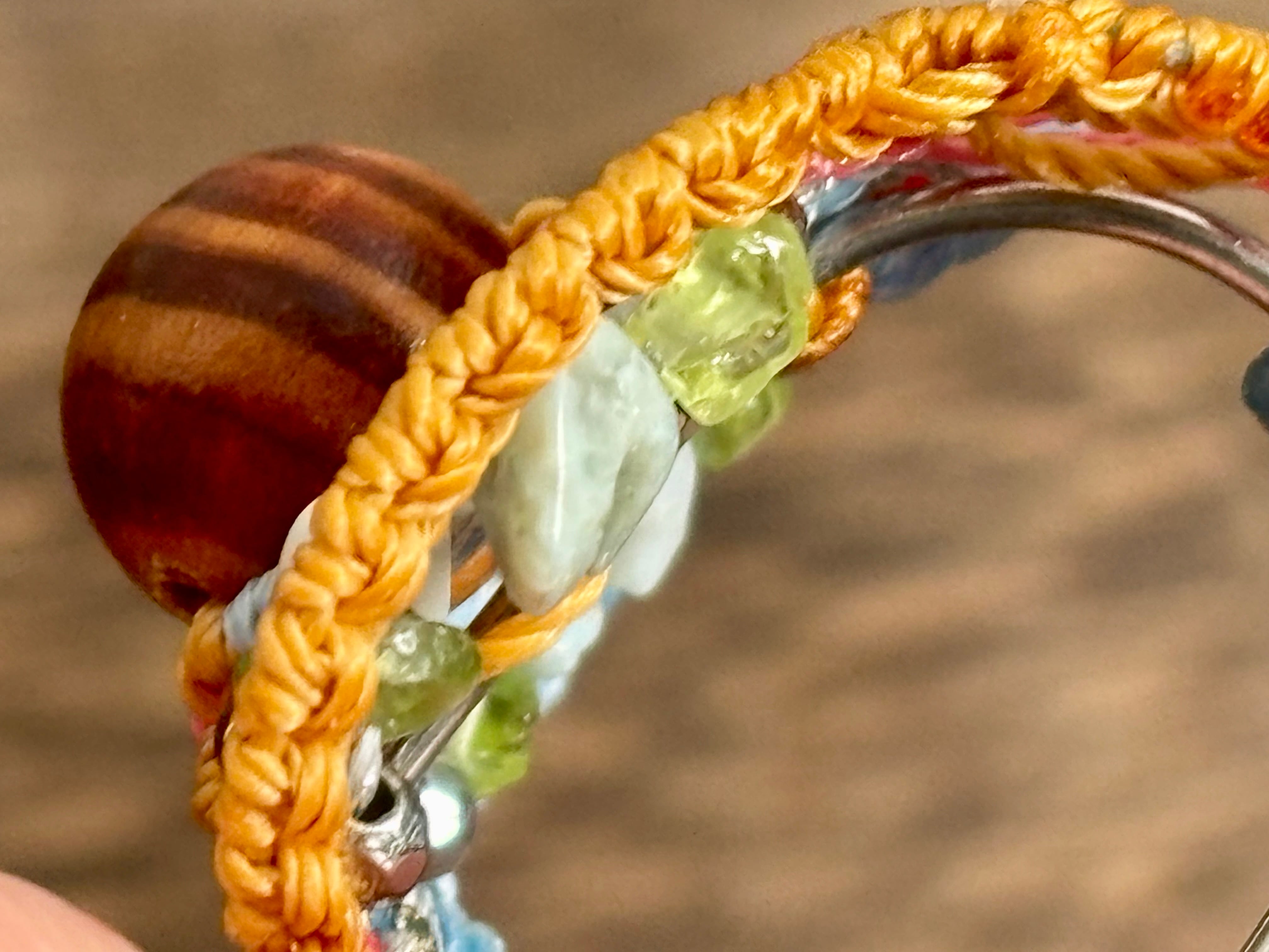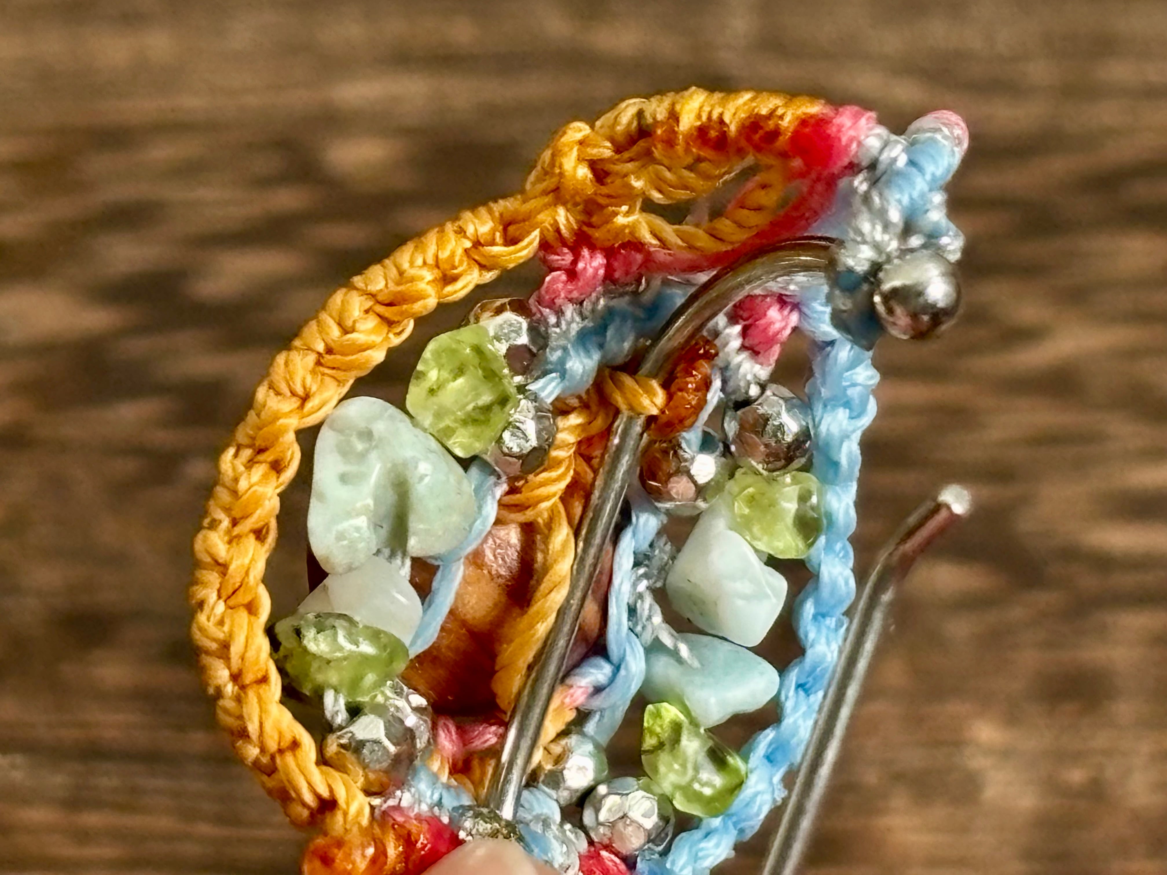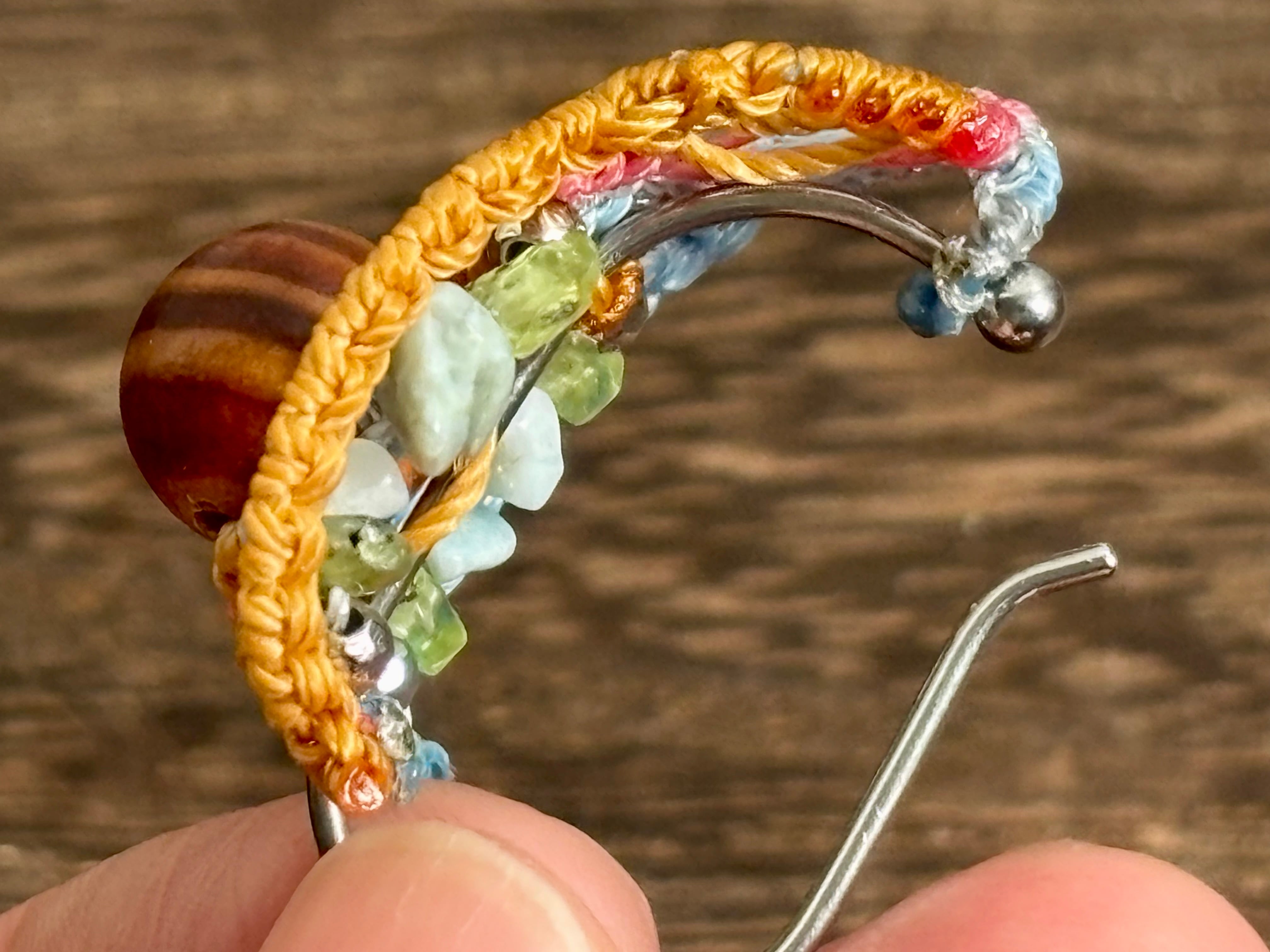 #1117キングドラゴンウッド一点物(キングドラゴンウッド×ラリマー×ペリドット マクラメ編みイヤーカフ)