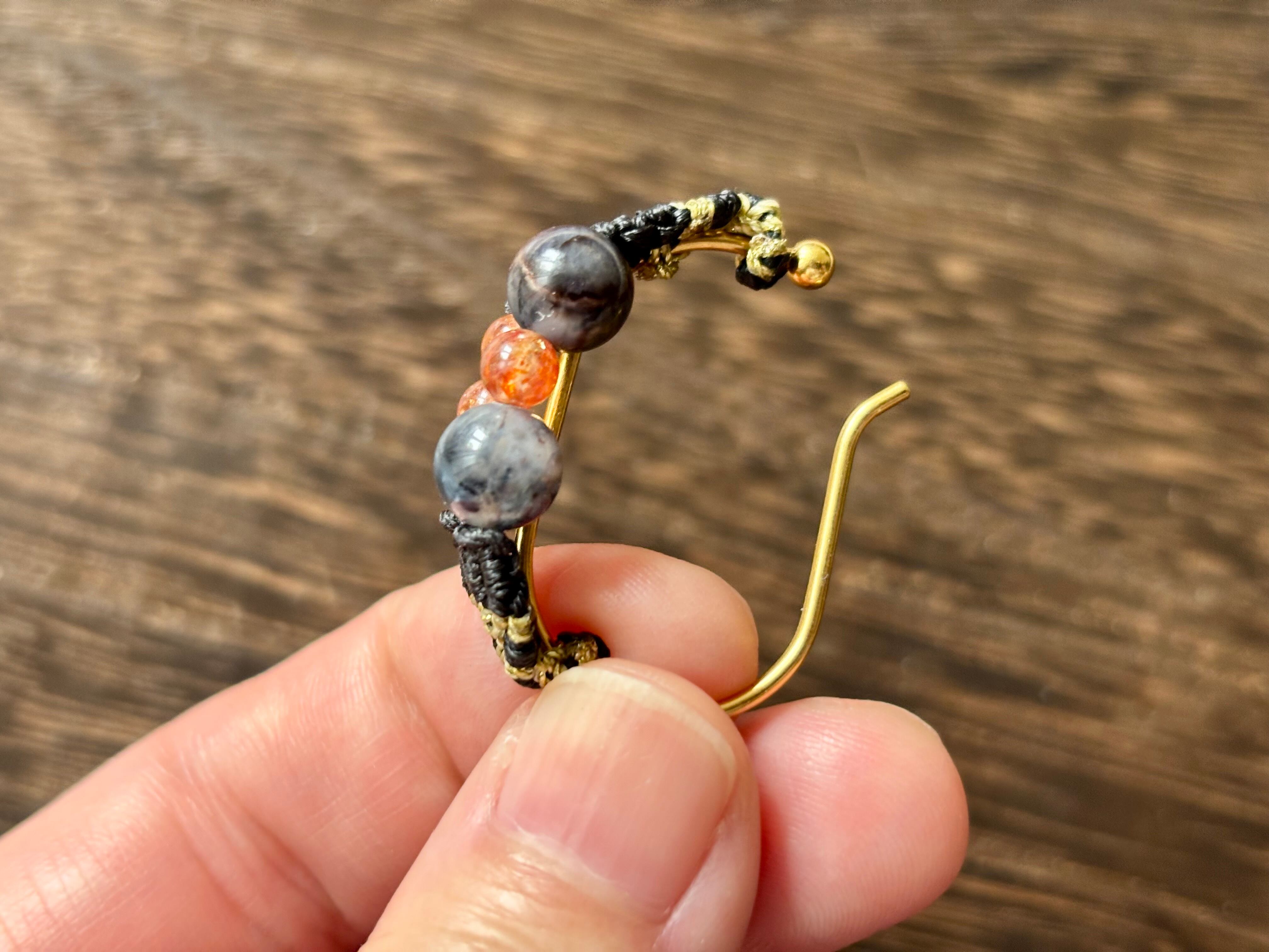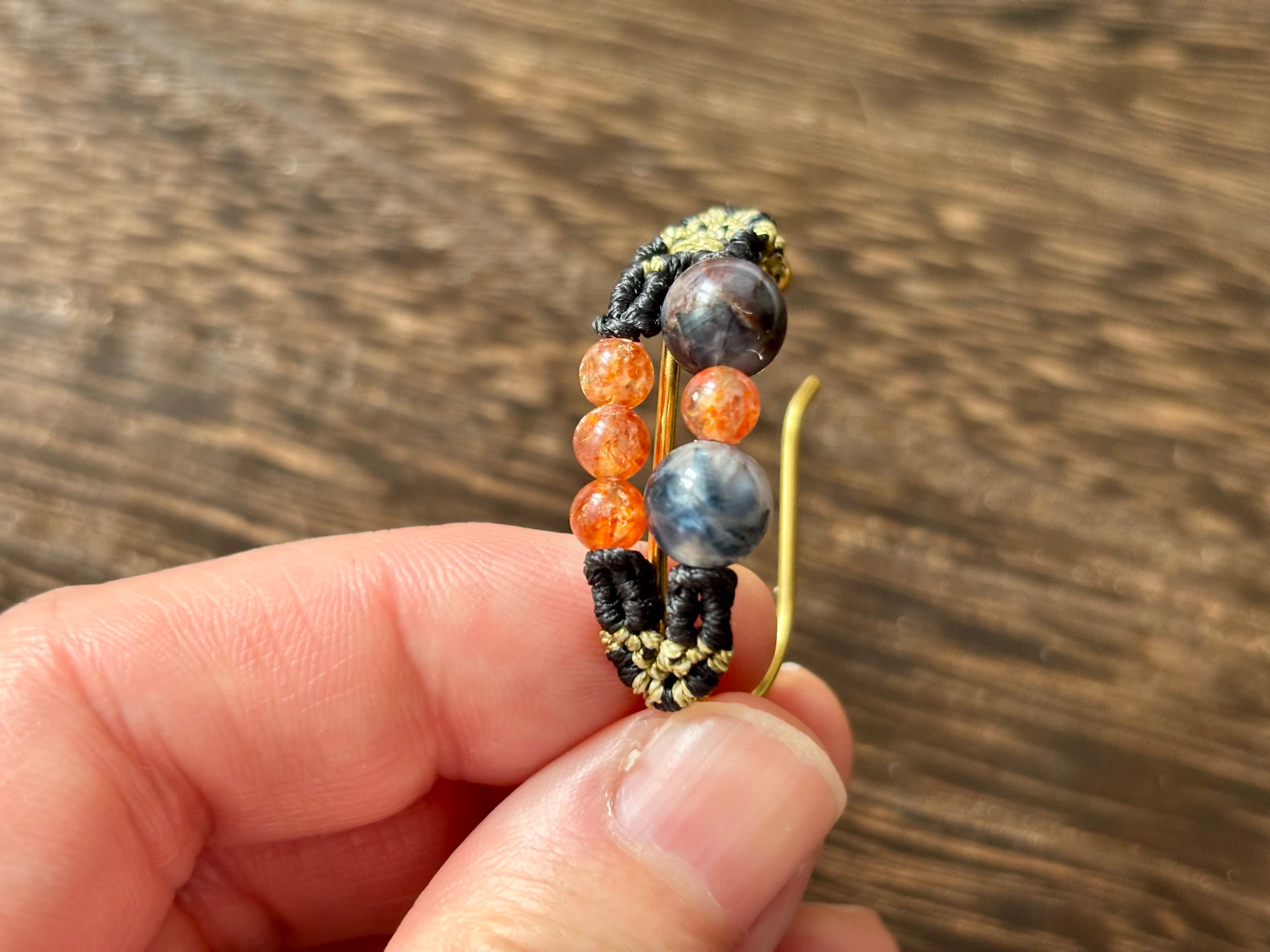 #1124希少‼︎ブルーピーターサイト一点物(ブルーピーターサイト×サンストーン マクラメ編みイヤーカフ)