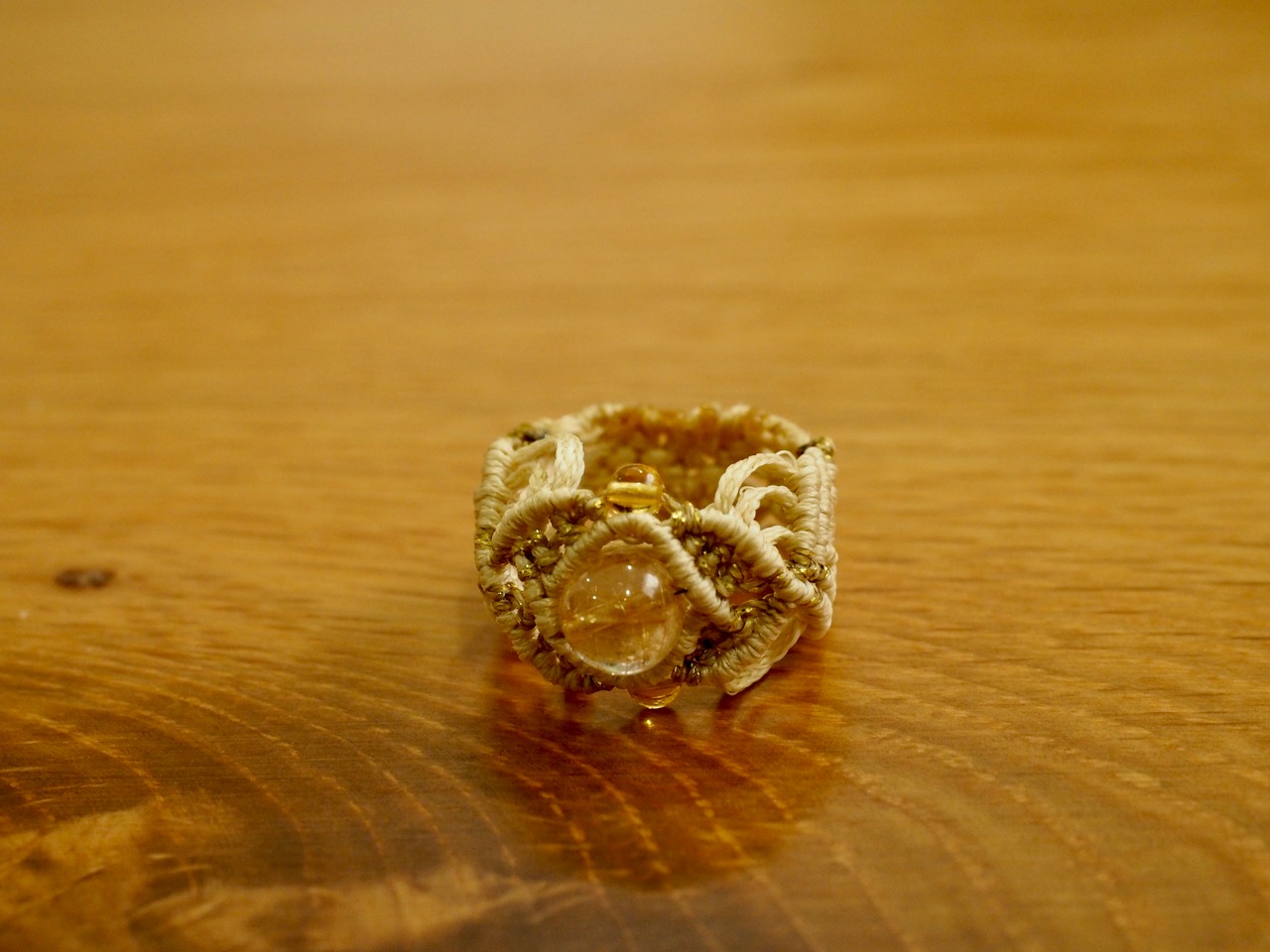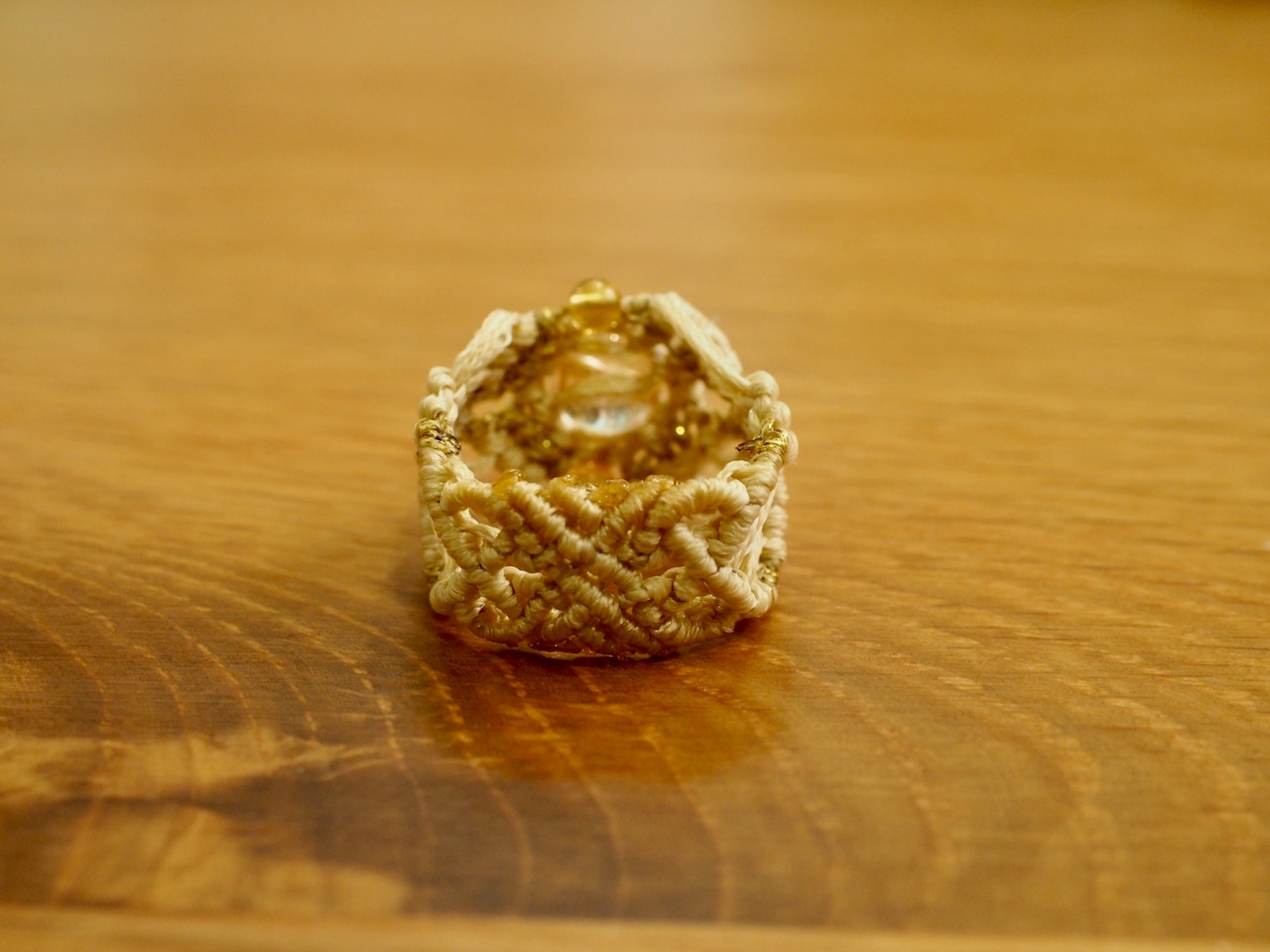 #173 Winter RING J (ルチルクォーツ×シトリン マクラメ編みリング/指輪)