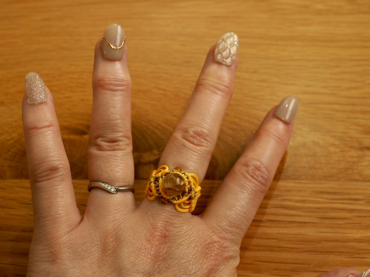 マクラメ編みリングです。