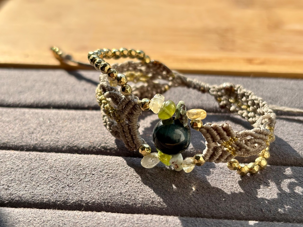 #274 World Heritage Ayuttaya (ホークアイ×ラリマー×ペリドット マクラメ編みブレスレット)