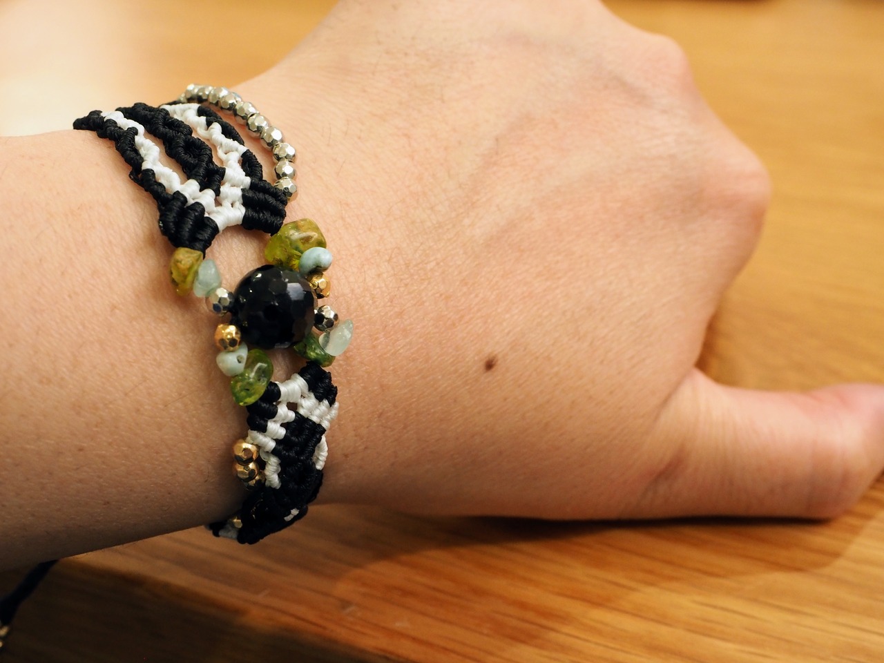 #338 World Heritage Ayuttaya (ブラックスピネル×ペリドット×ラリマー×アクアマリン マクラメ編みブレスレット)