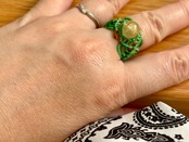 美しいルチルクォーツとシトリンを使用したマクラメ編みリングです。この特別な組み合わせは、あなたのスタイルに独自の輝きを与え、日常に温かいエネルギーをもたらします。