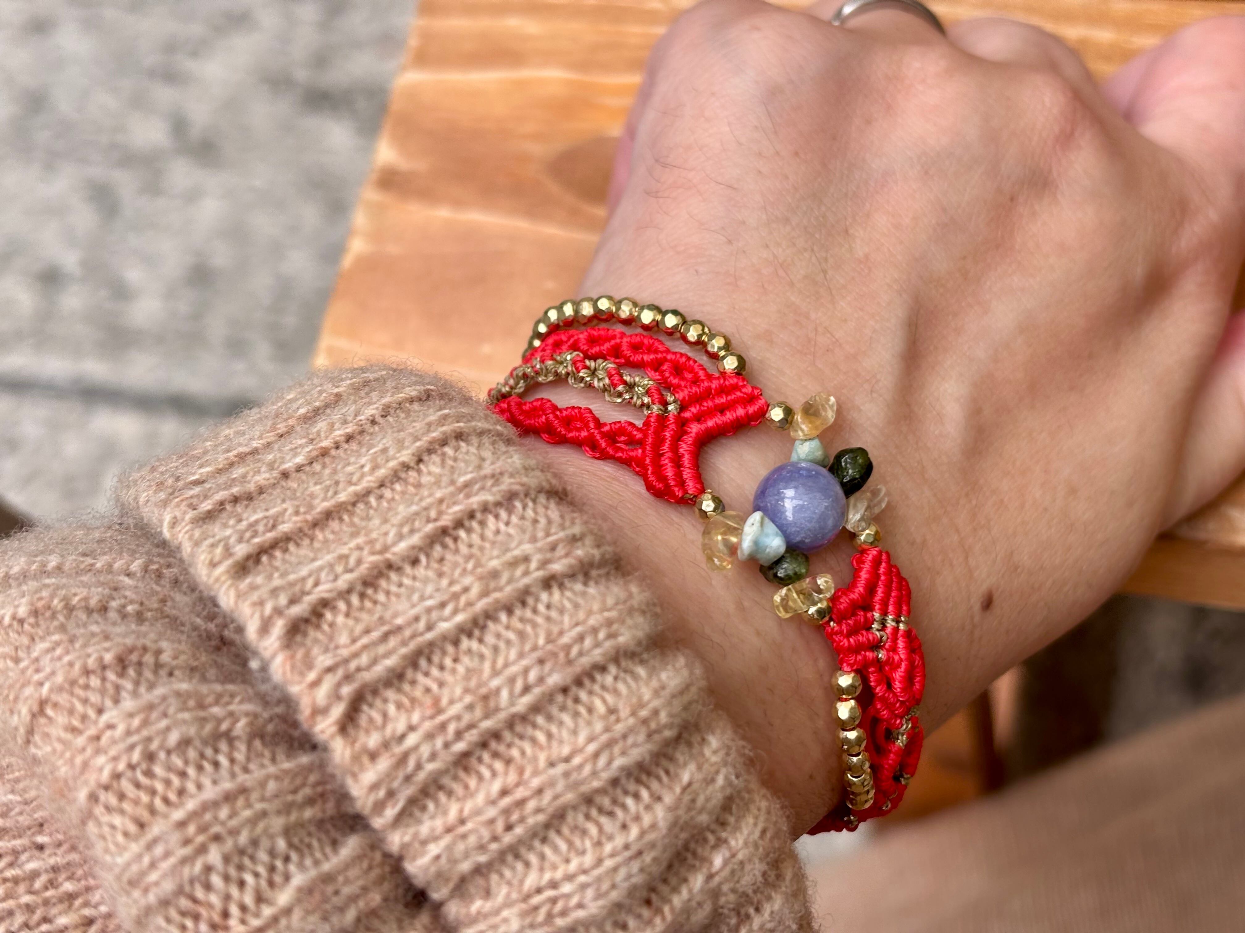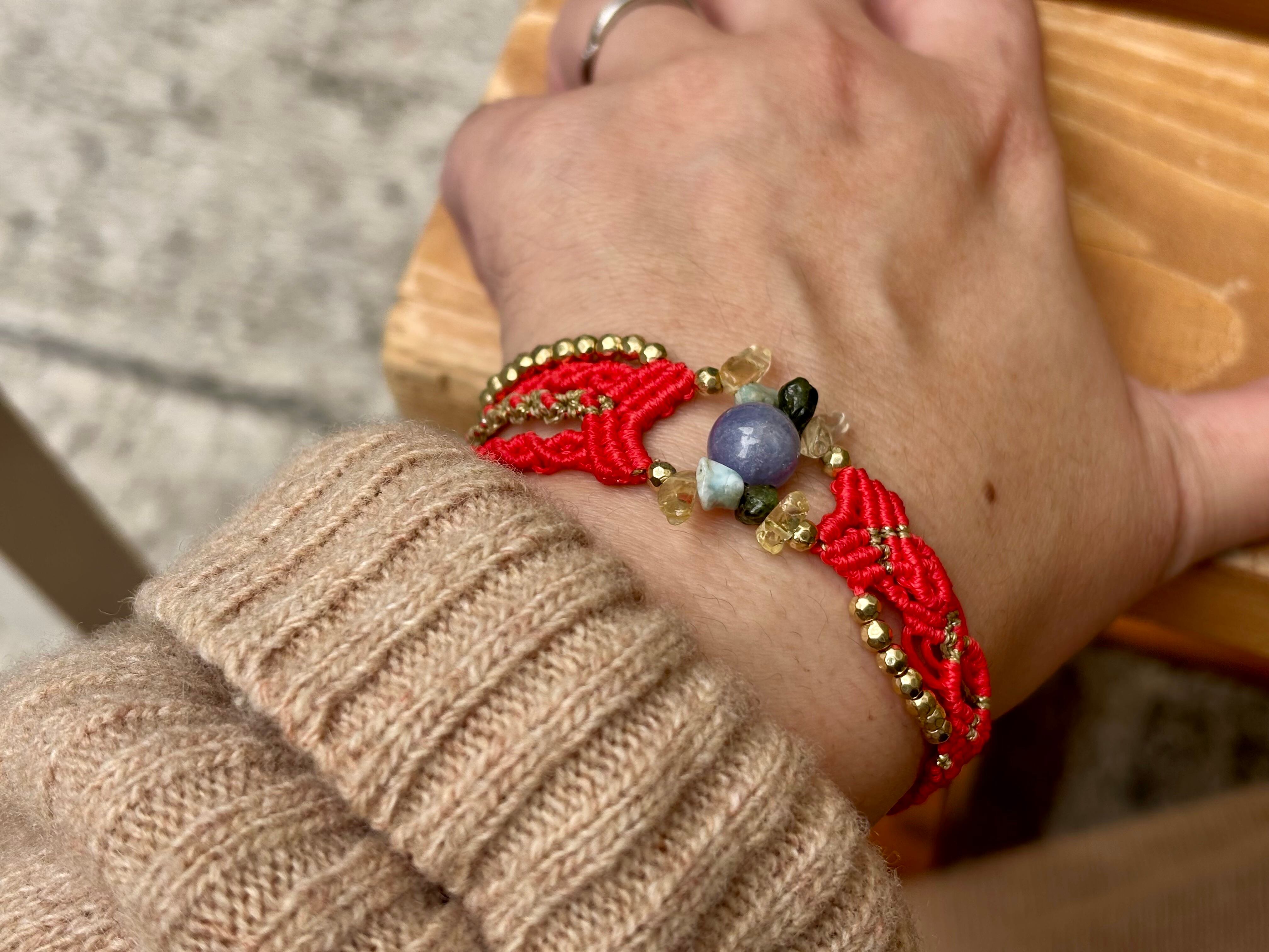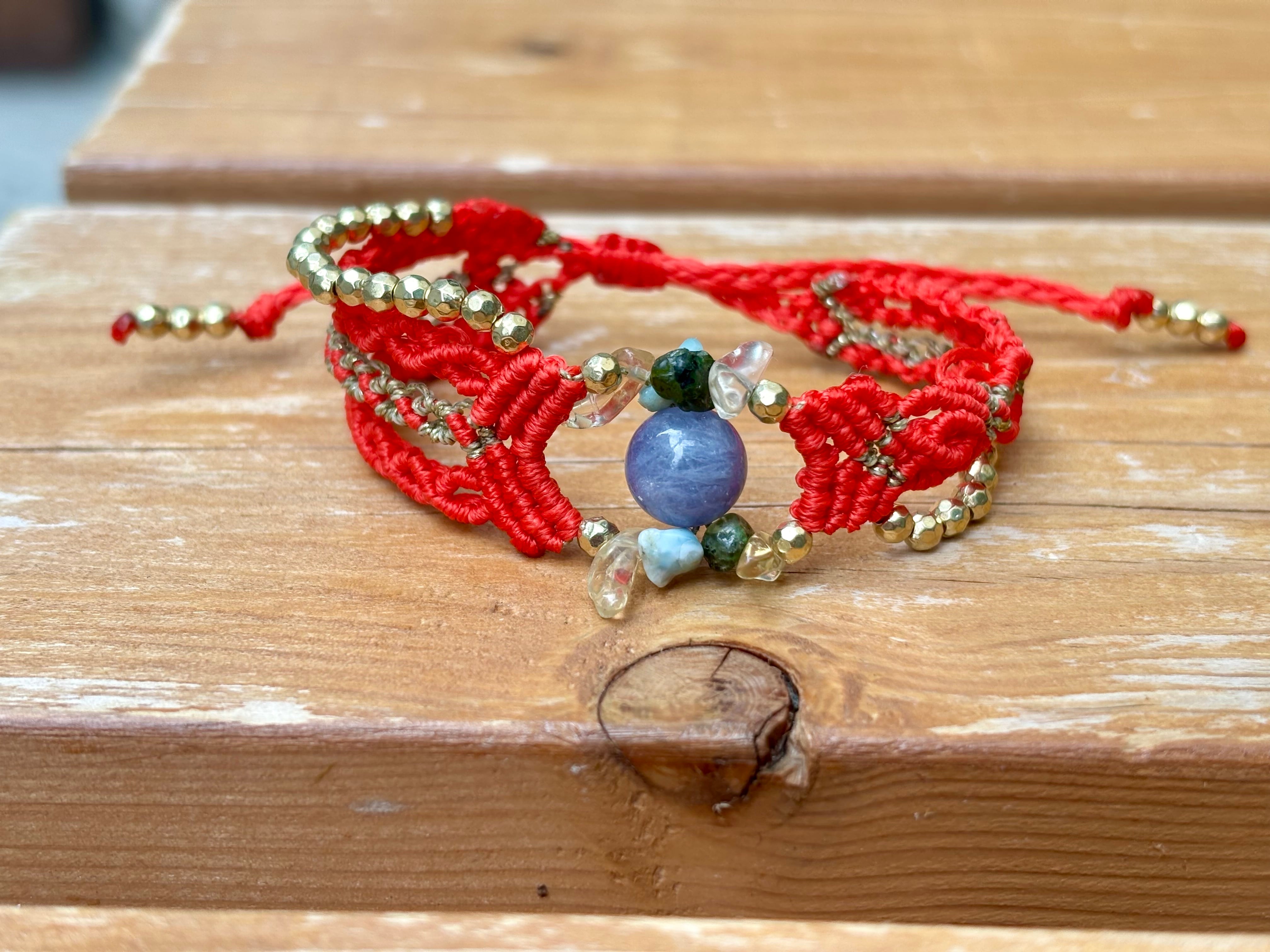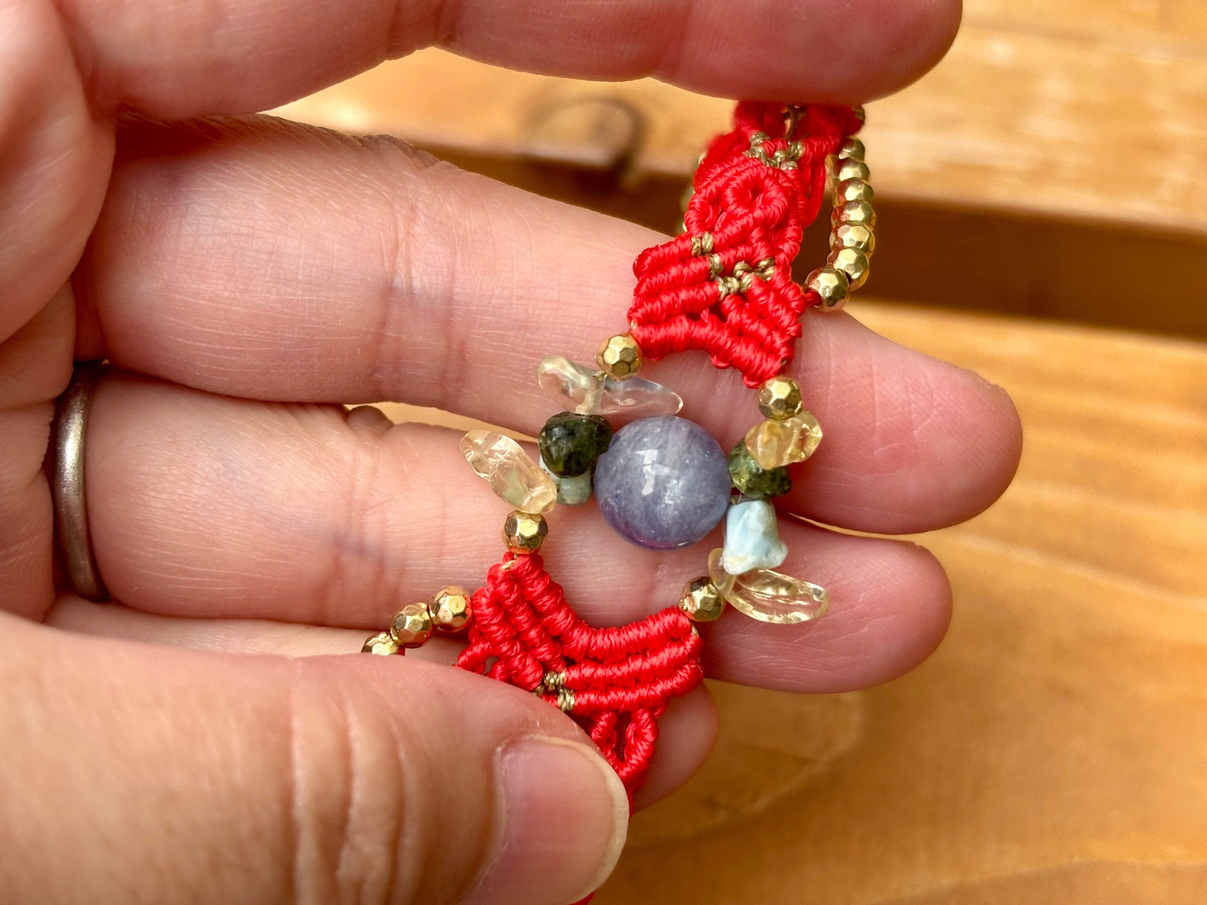 #458 World Heritage Ayuttaya (タンザナイト×ペリドット×ラリマー×シトリン マクラメ編みブレスレット)