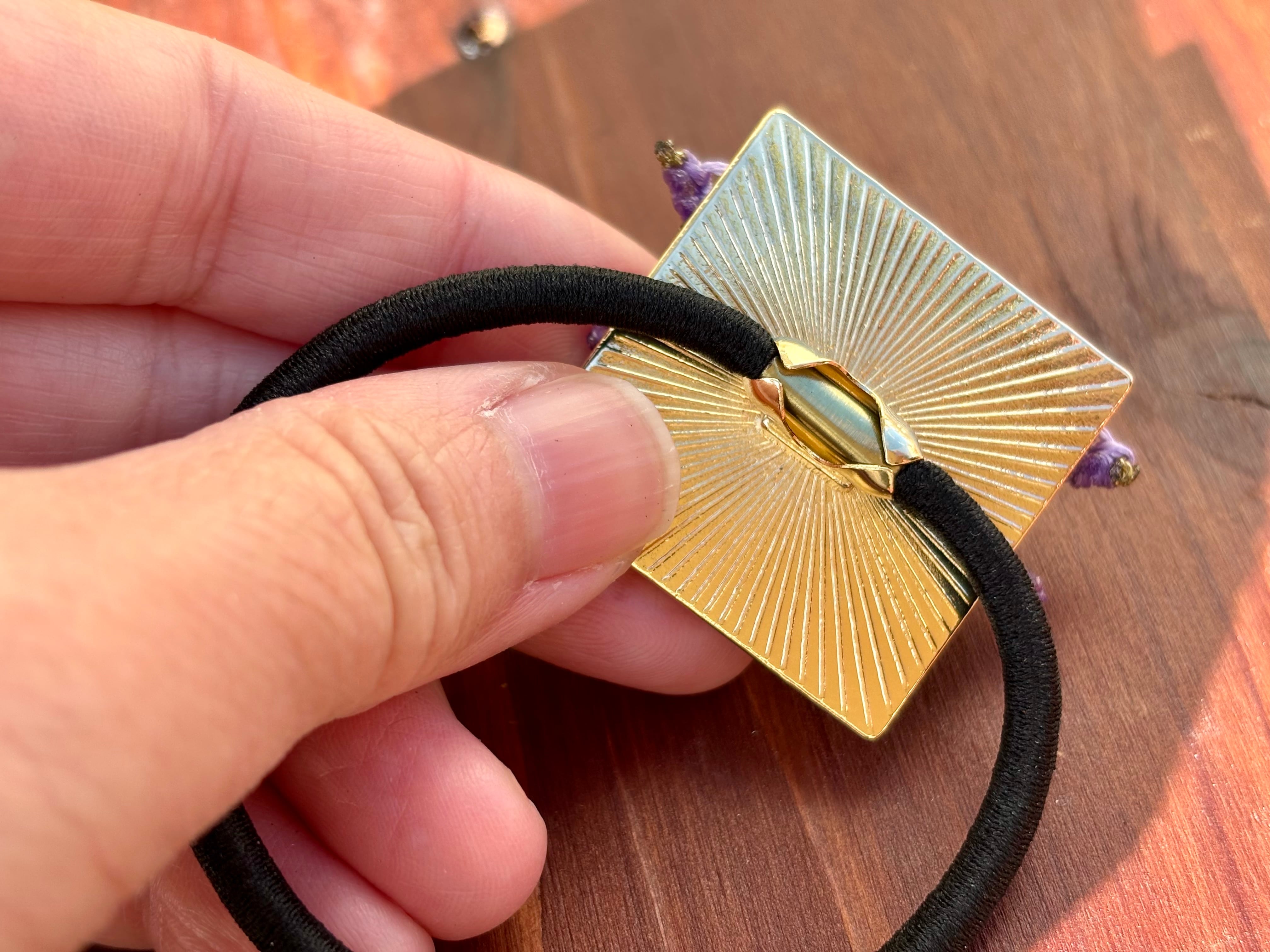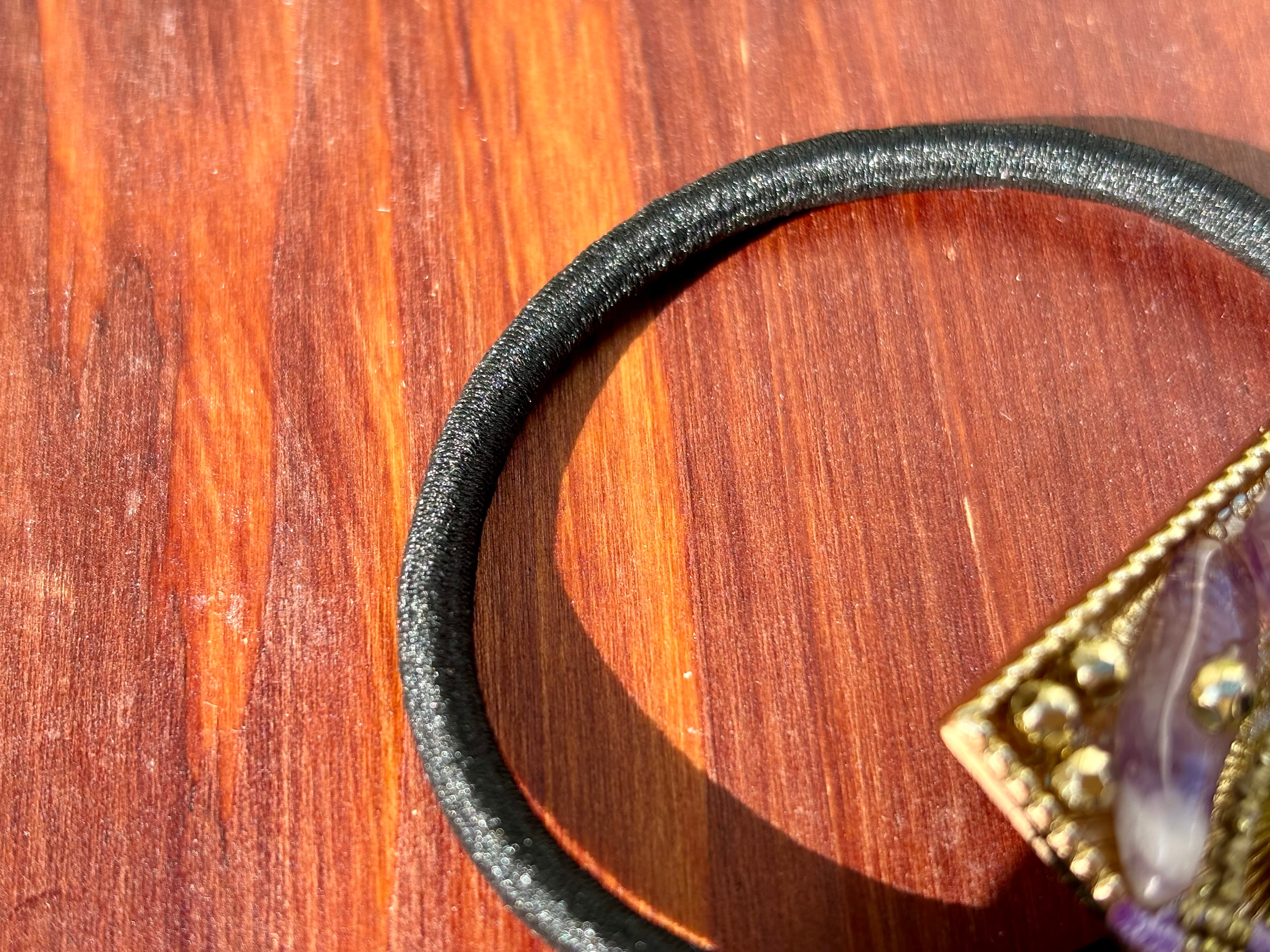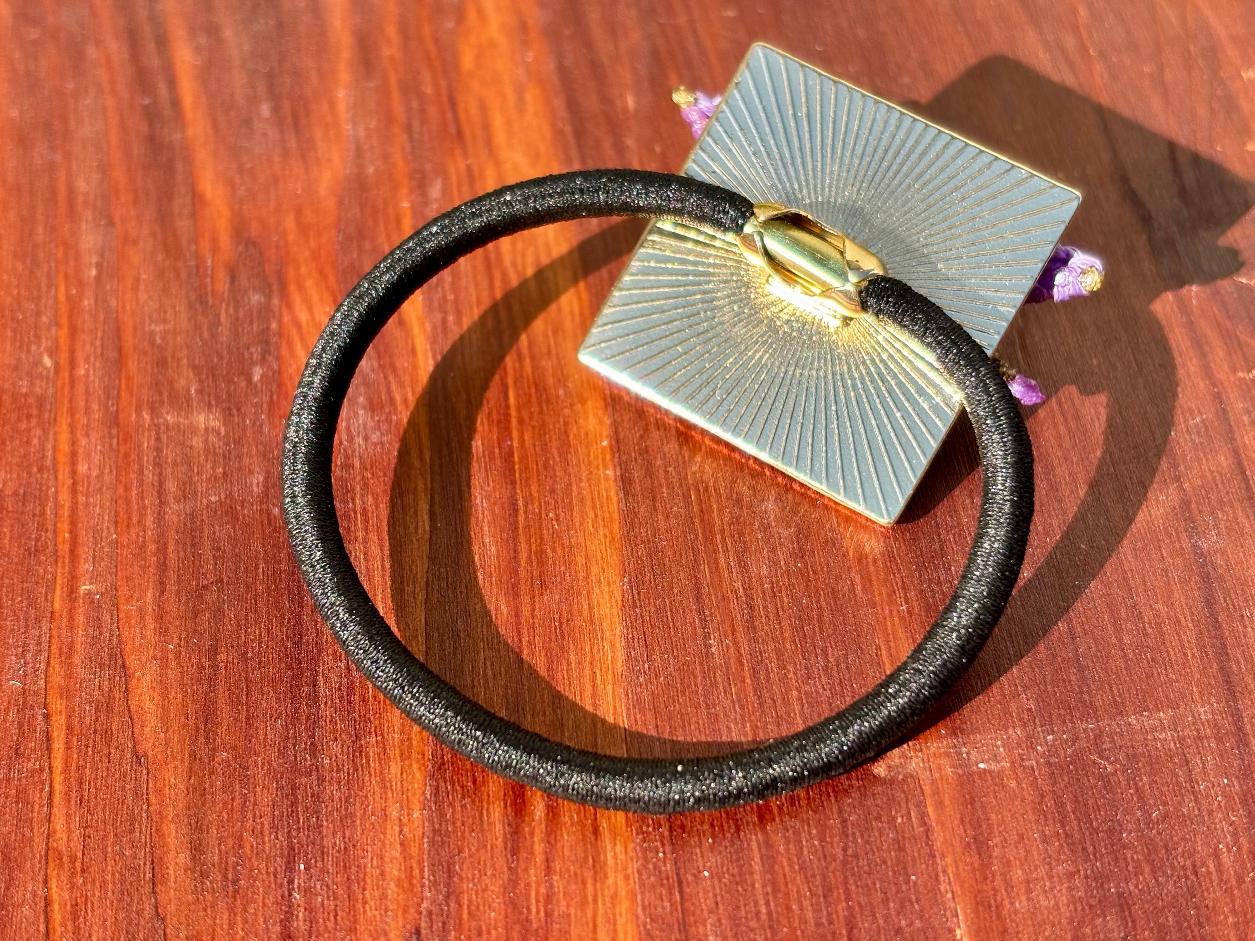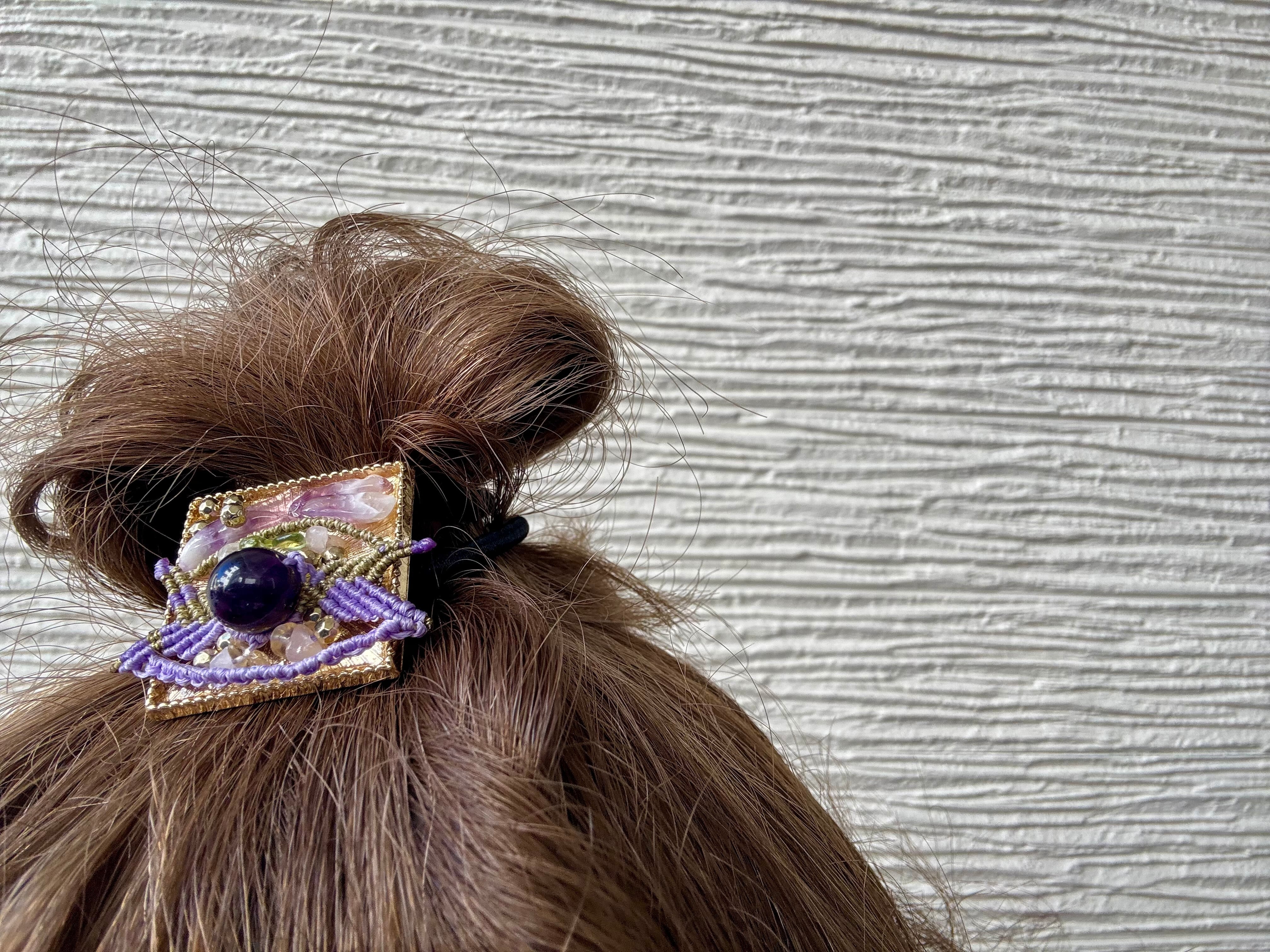 約1cmと大きめのアメジストによって、少し高級感のあるヘアゴムに。
