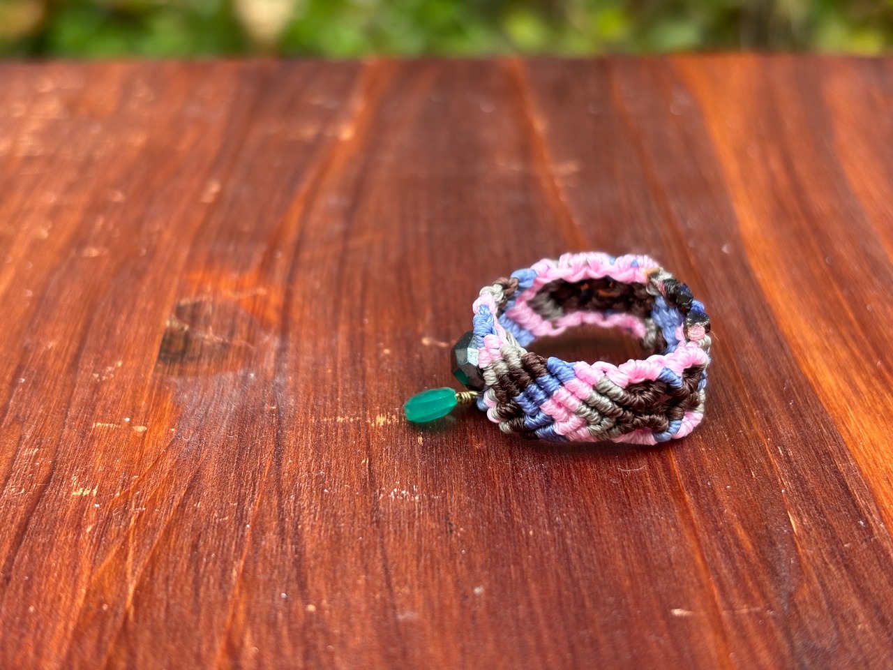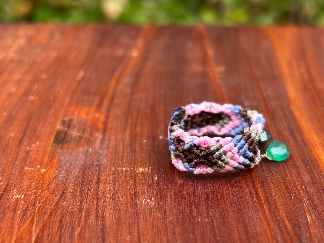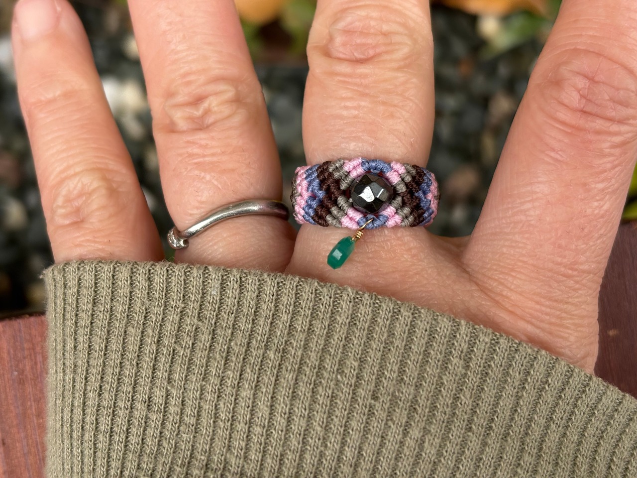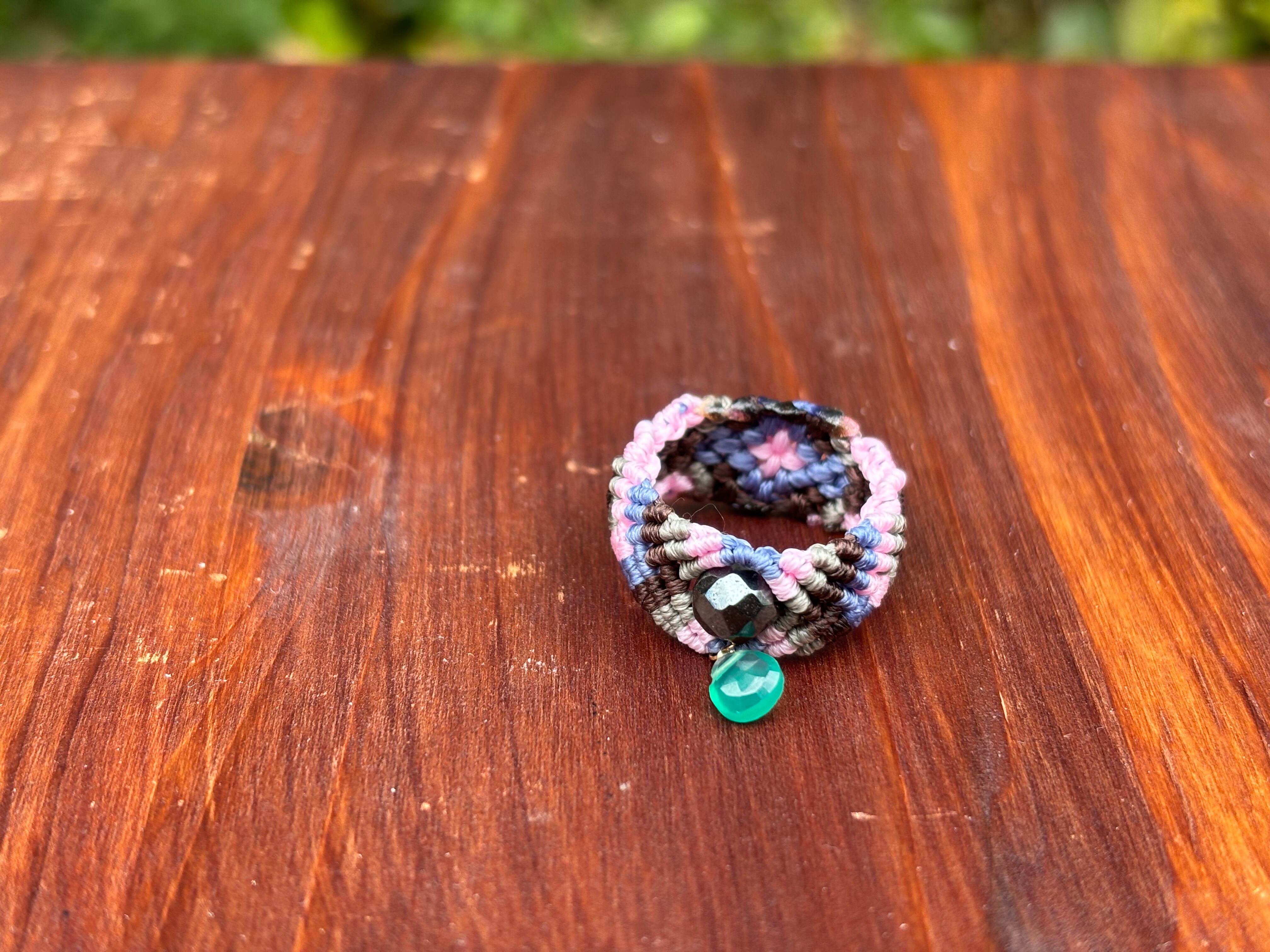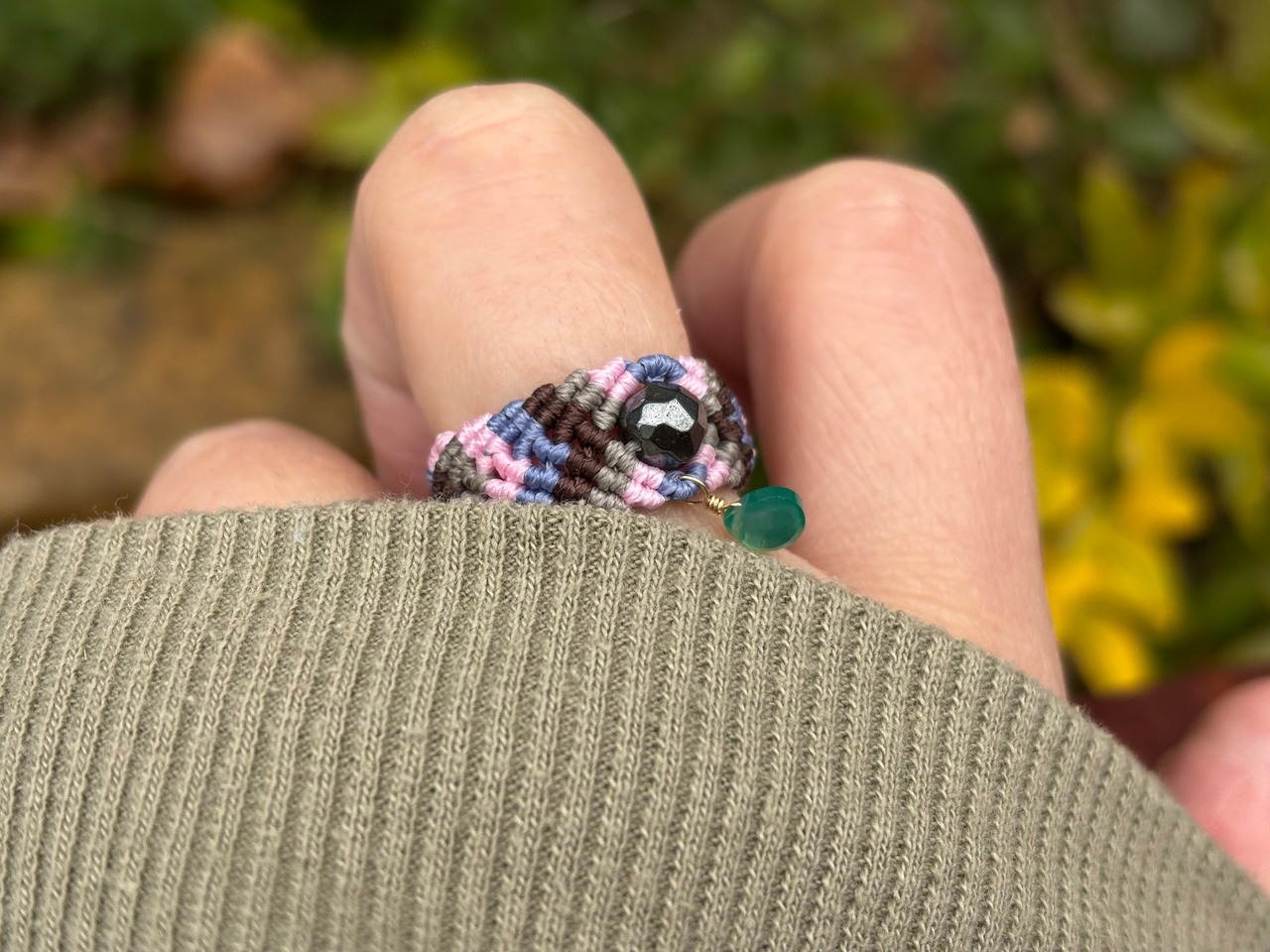 #502一点物 Cappadocia (ヘマタイト×グリーンオニキス マクラメ編みリング/指輪)