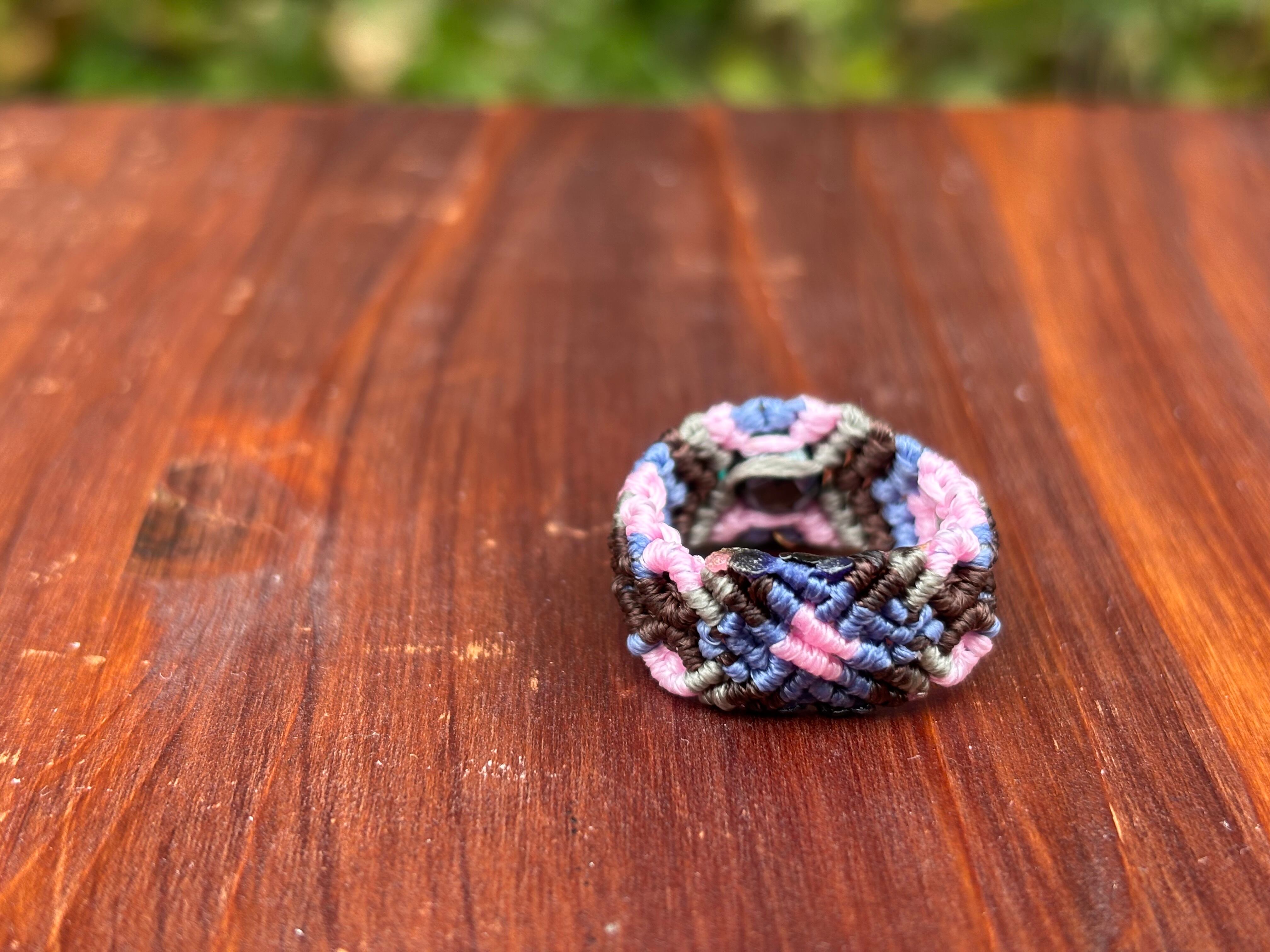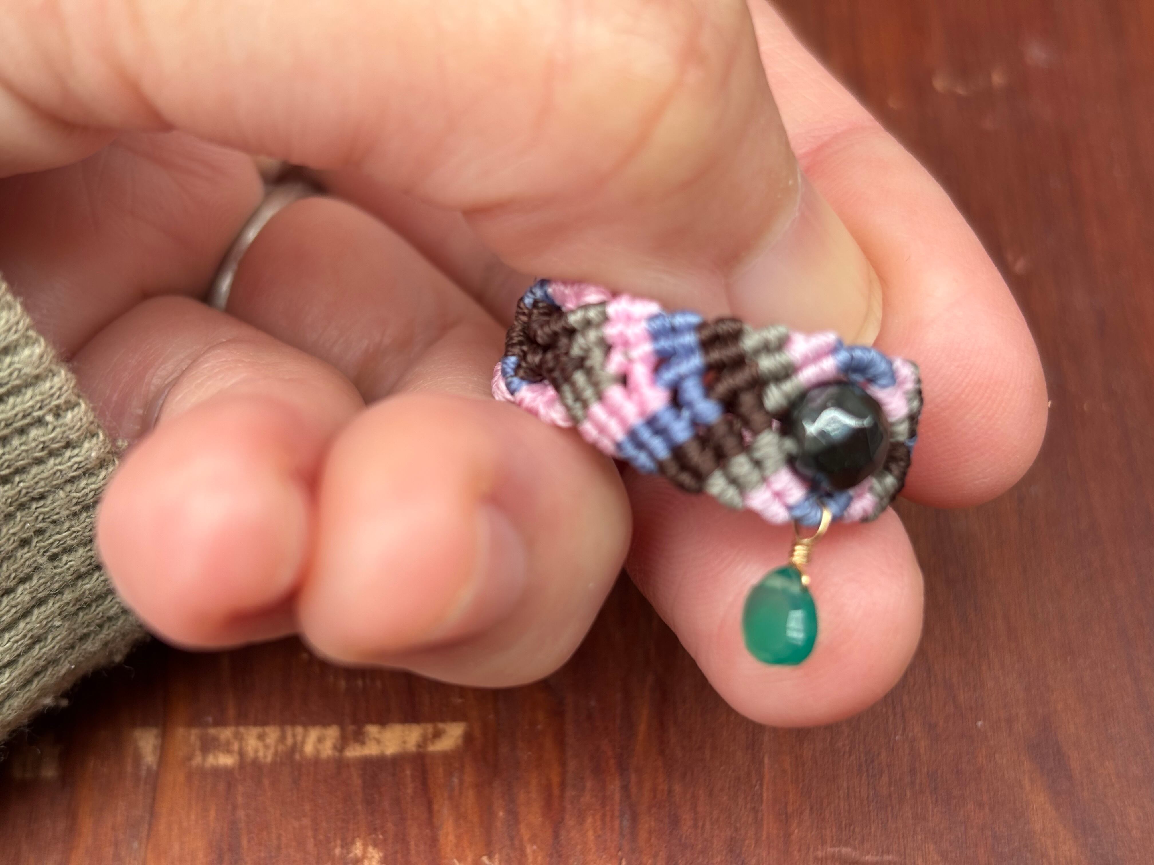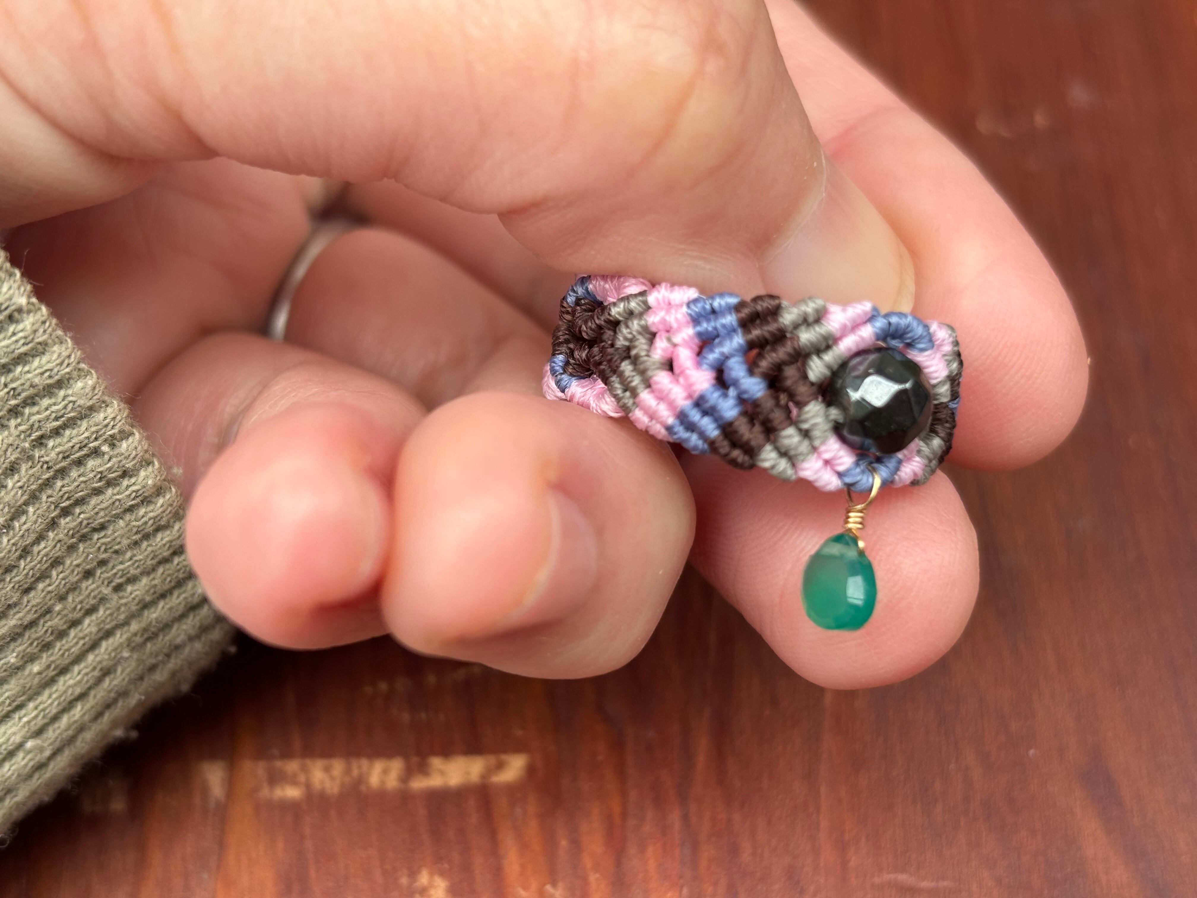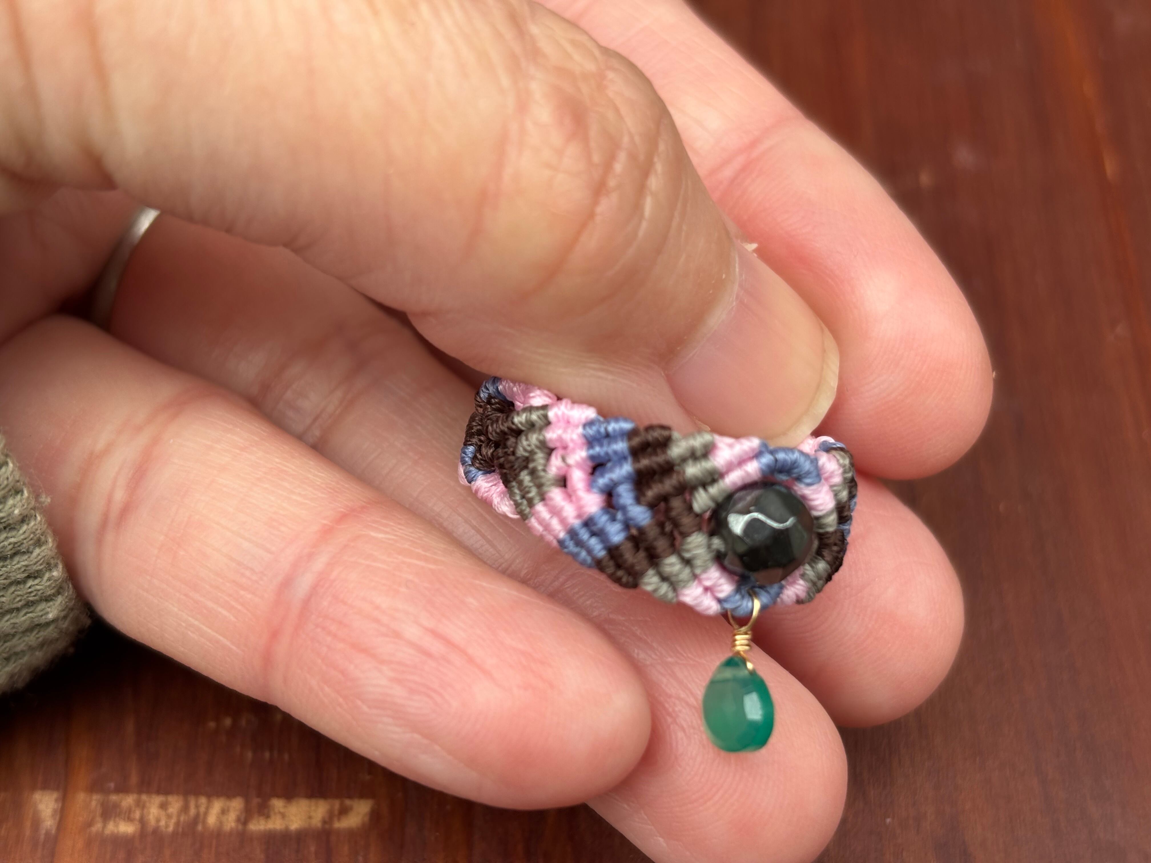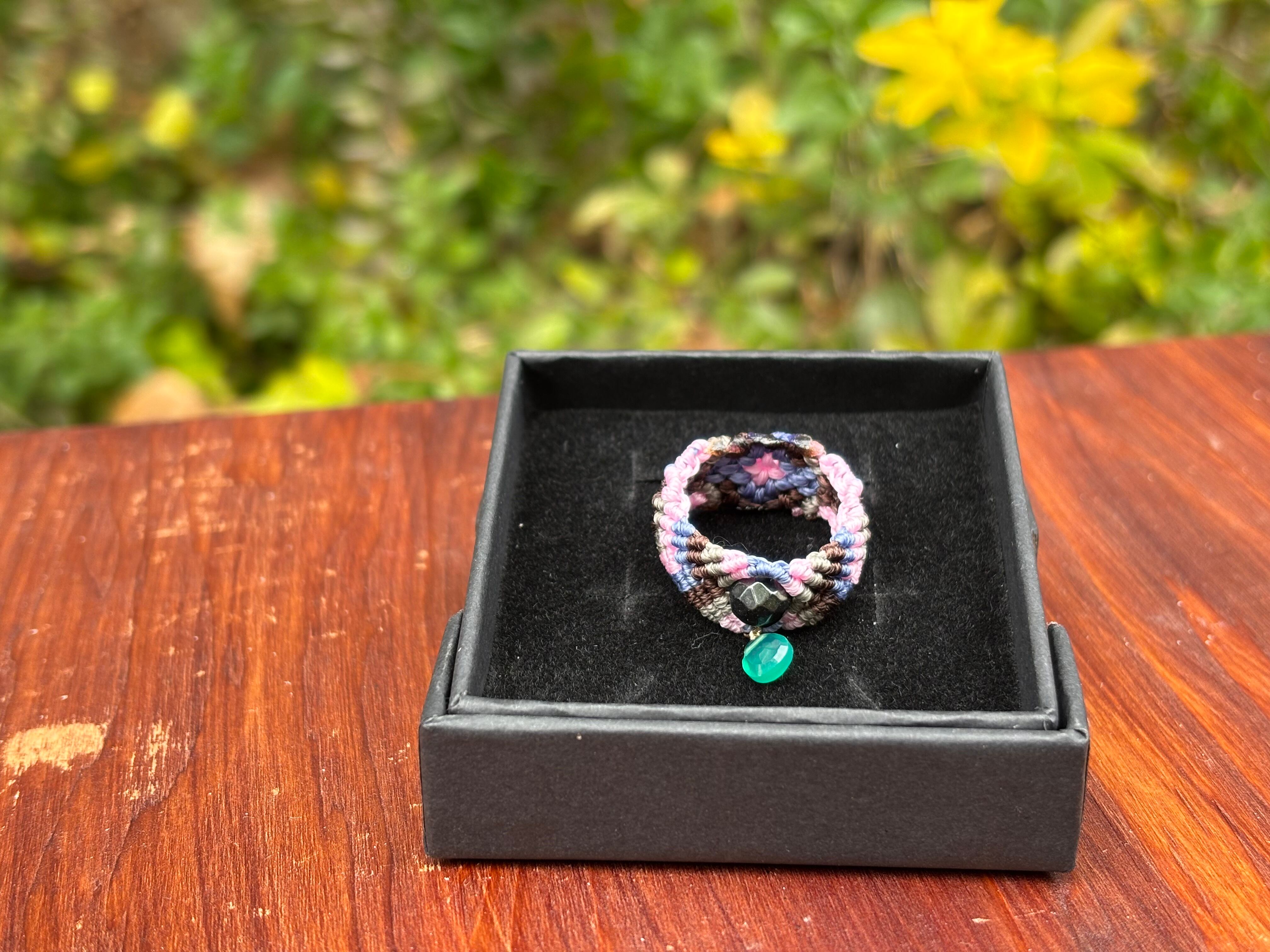 #502一点物 Cappadocia (ヘマタイト×グリーンオニキス マクラメ編みリング/指輪)