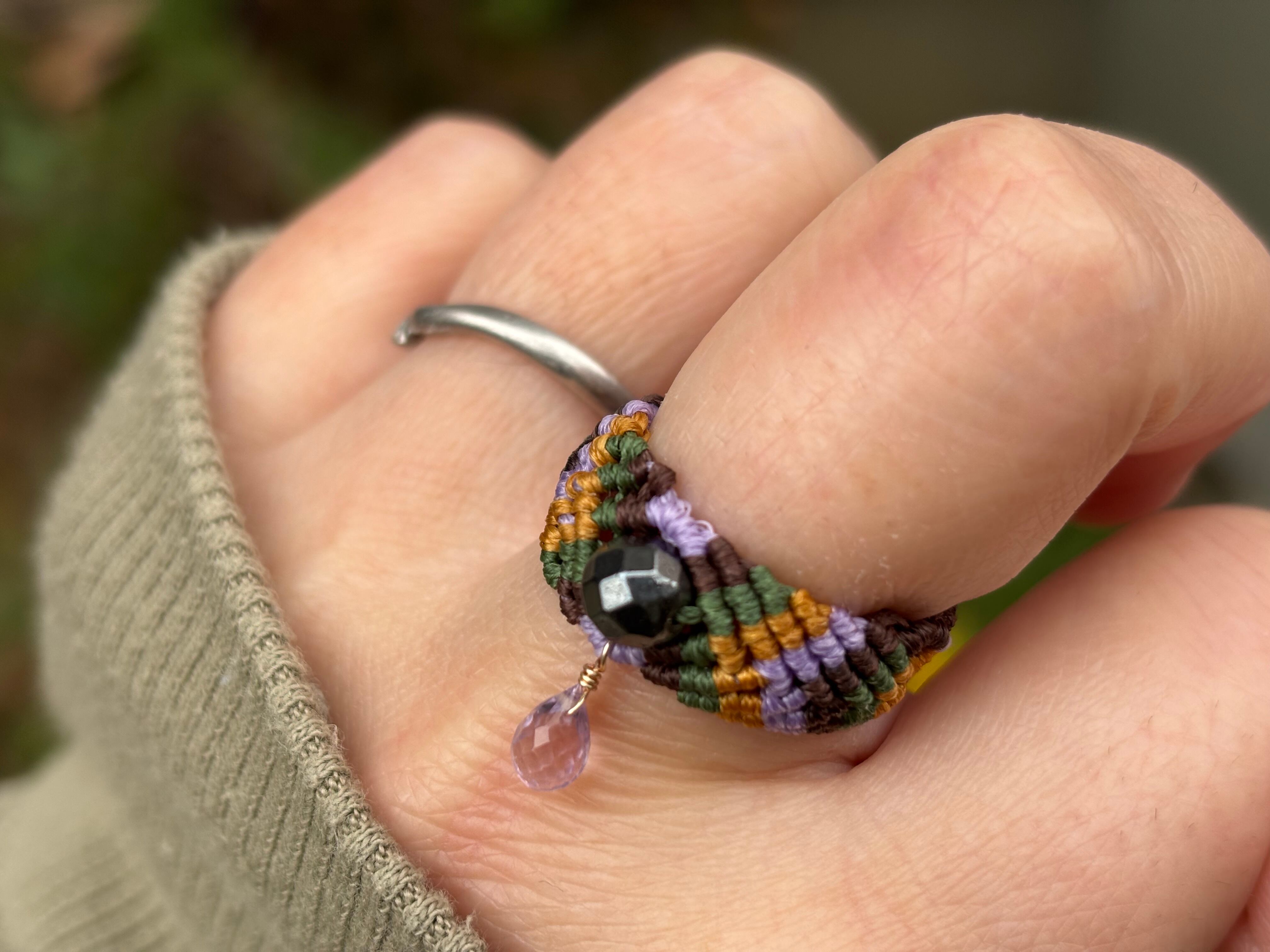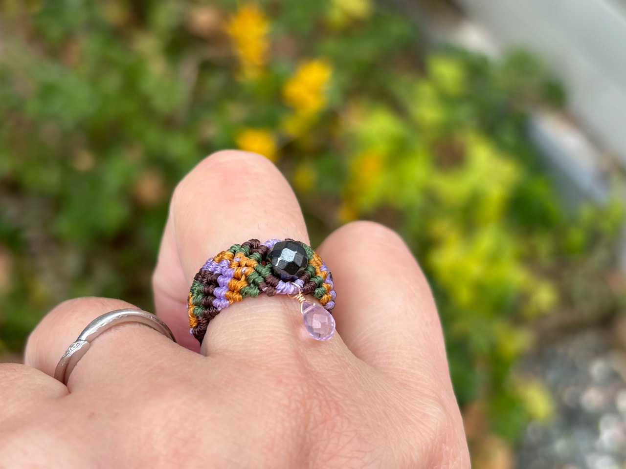 #504一点物 Cappadocia (ヘマタイト×ピンクアメジスト マクラメ編みリング/指輪)