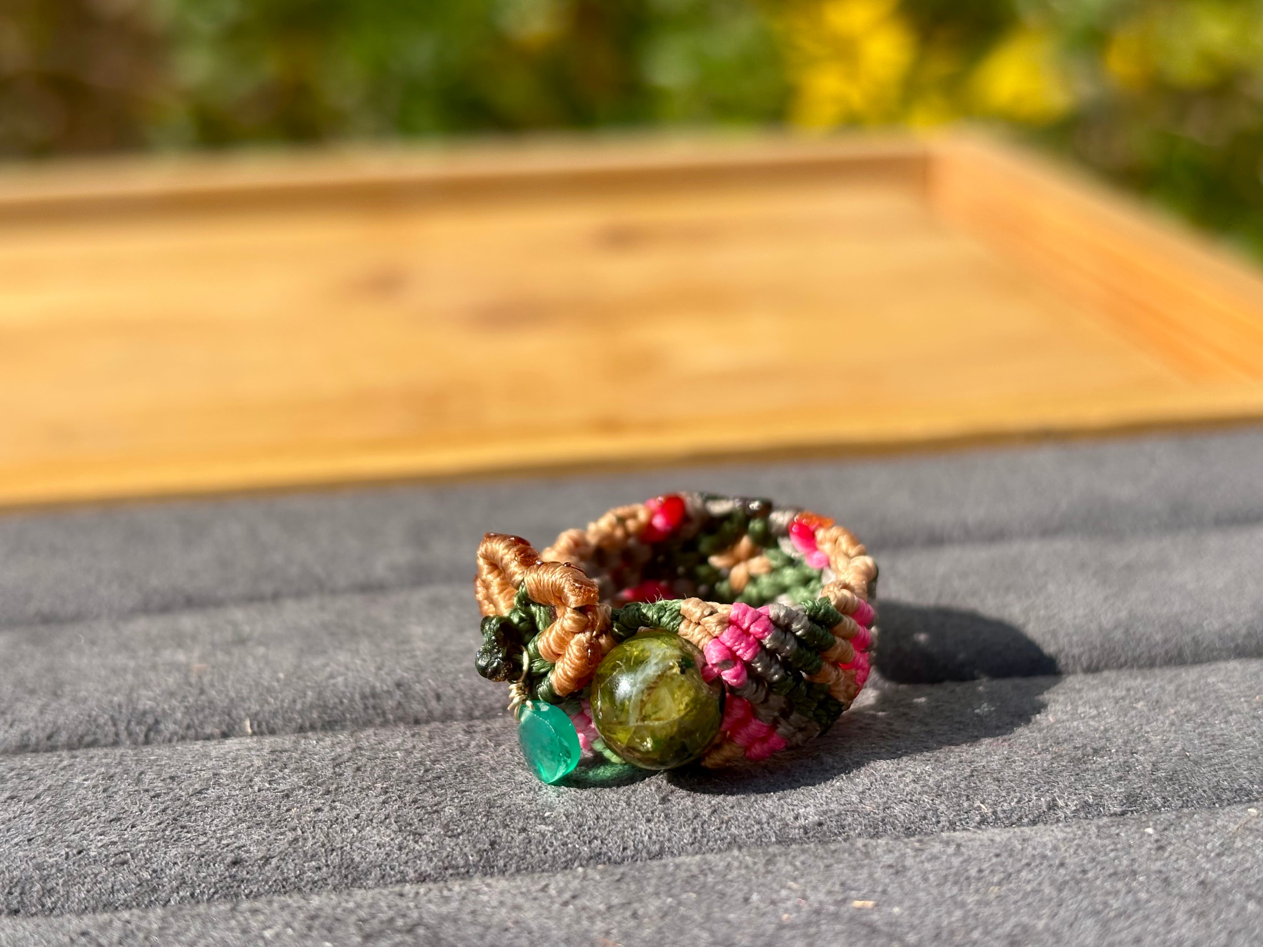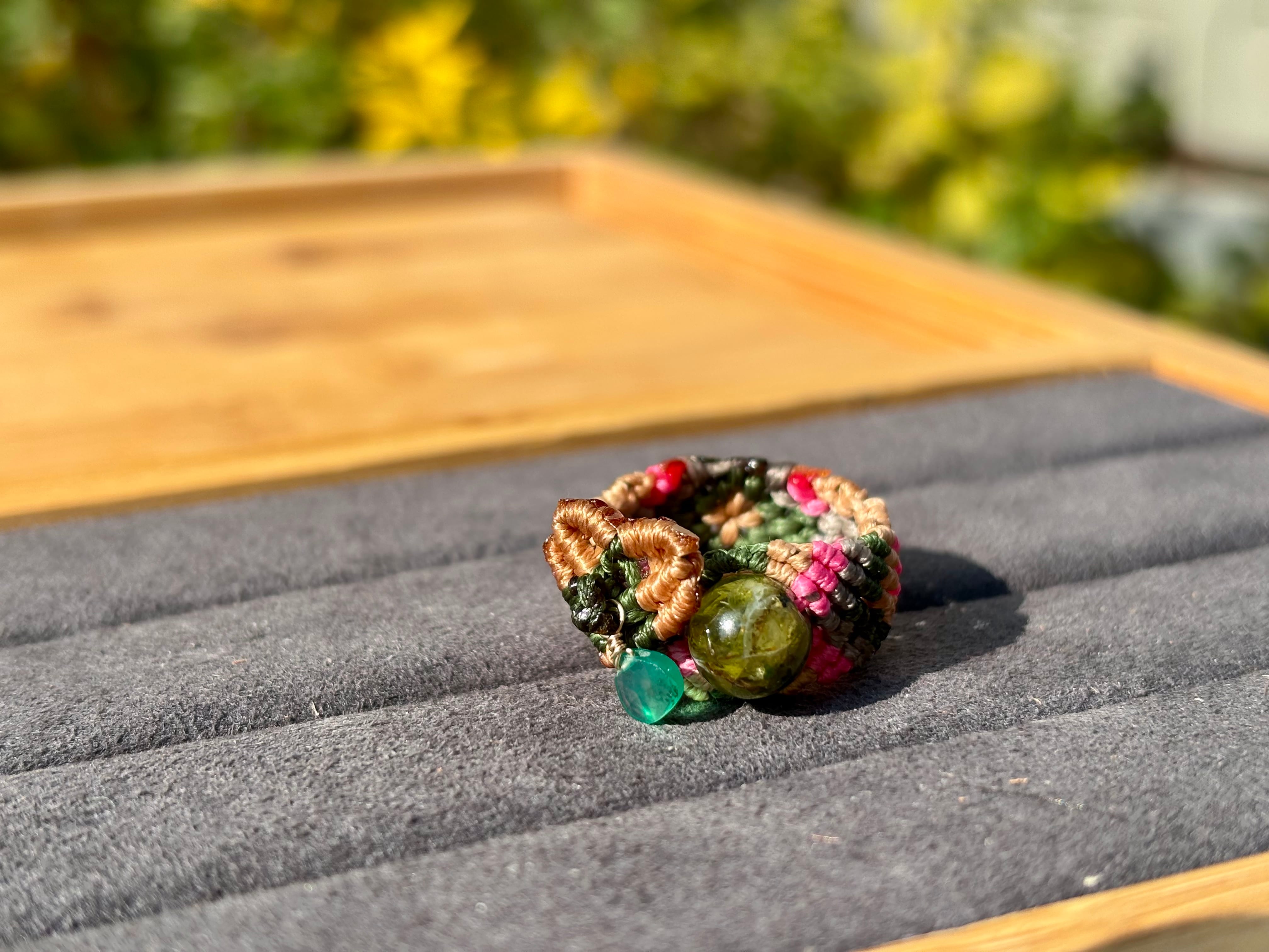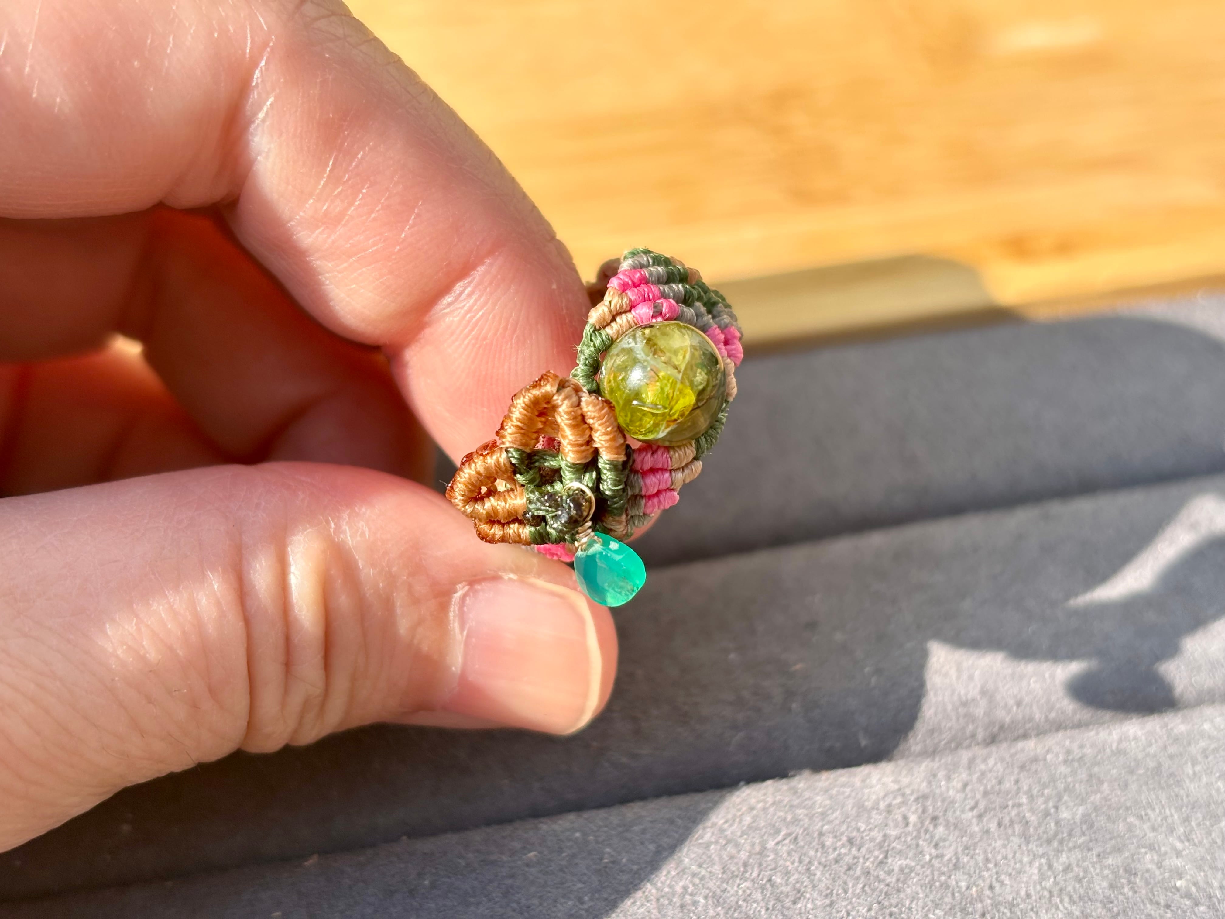 #507一点物 Cappadocia (ペリドット×グリーンオニキス マクラメ編みリング/指輪)
