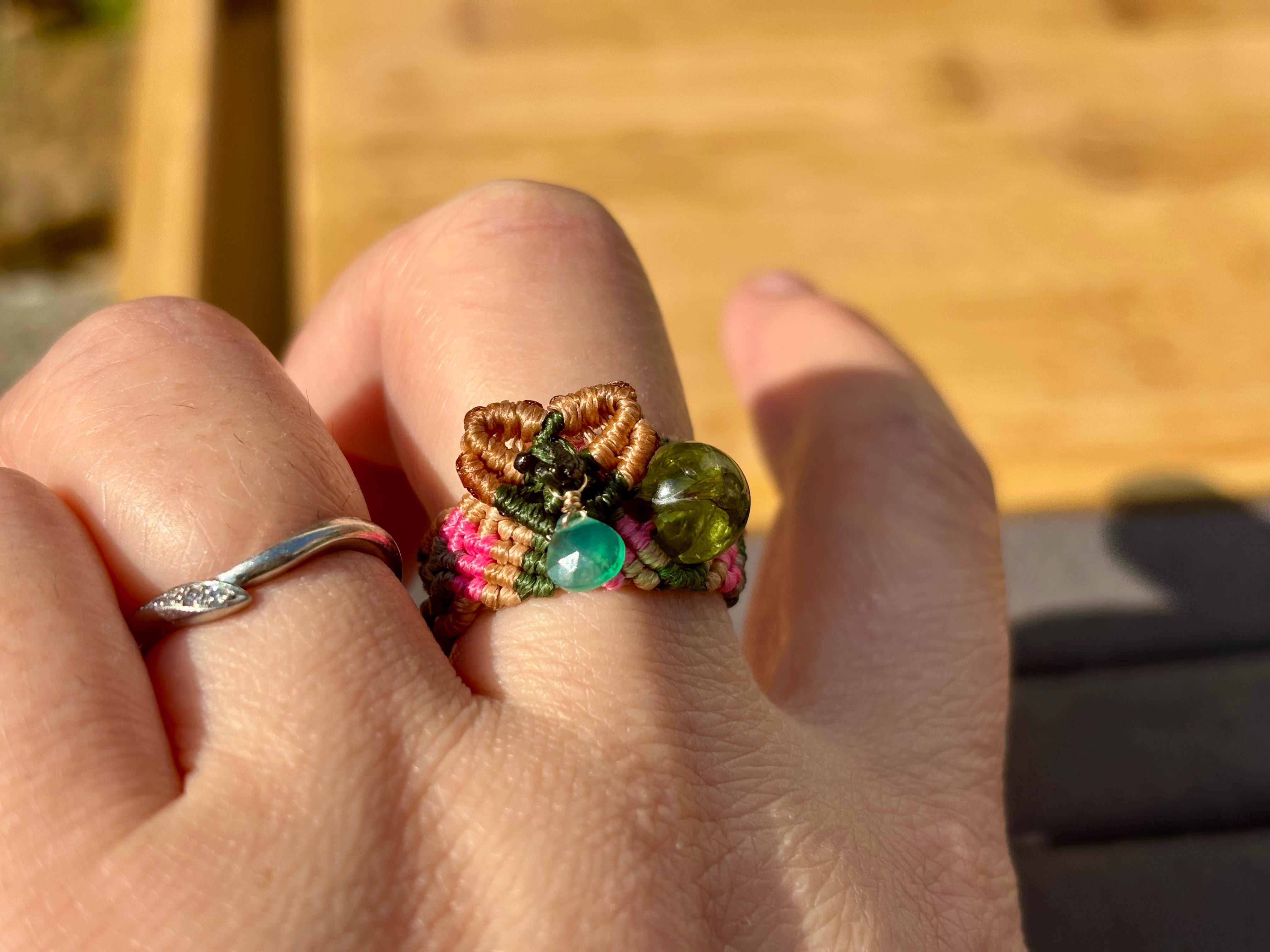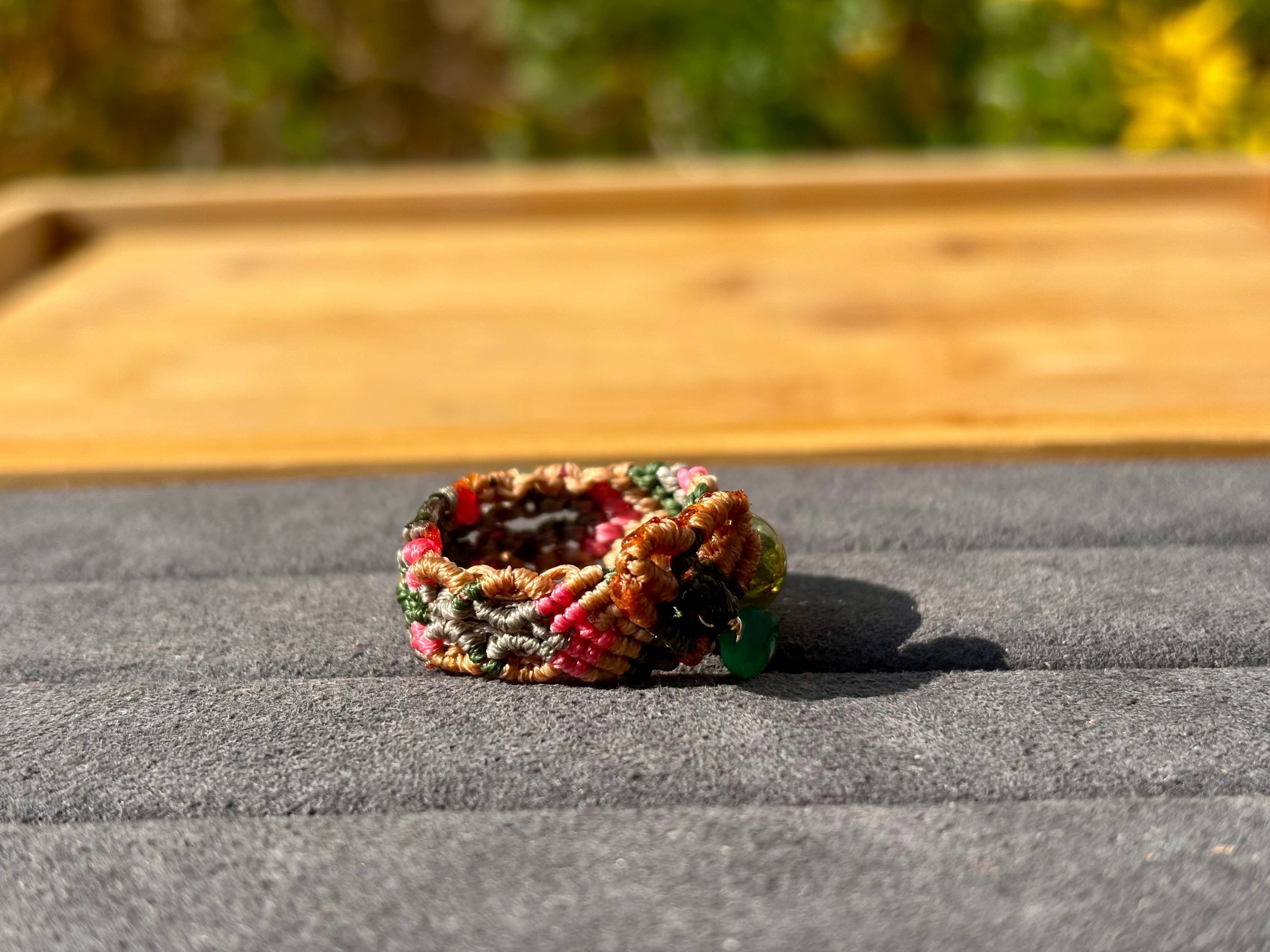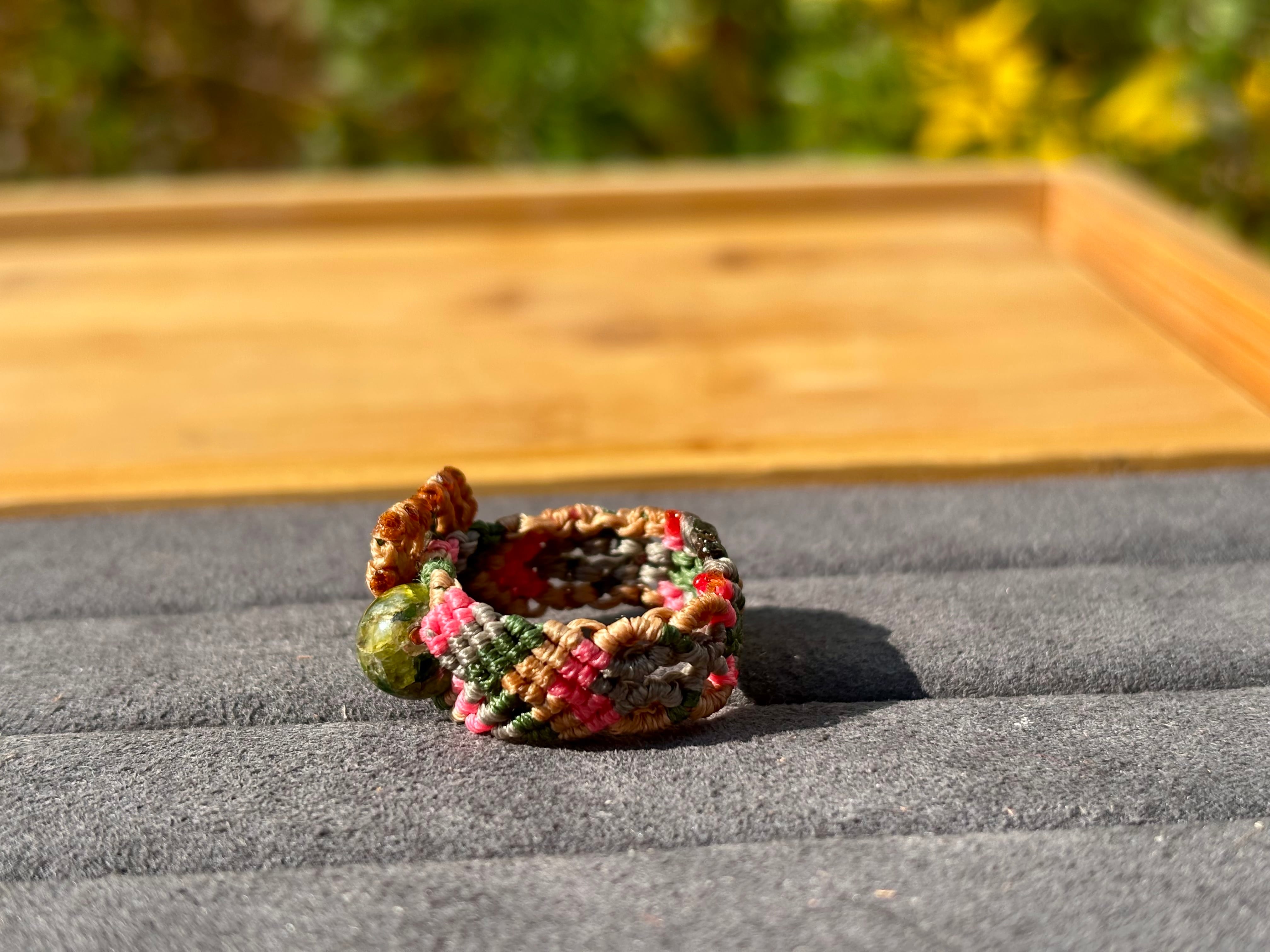 #507一点物 Cappadocia (ペリドット×グリーンオニキス マクラメ編みリング/指輪)