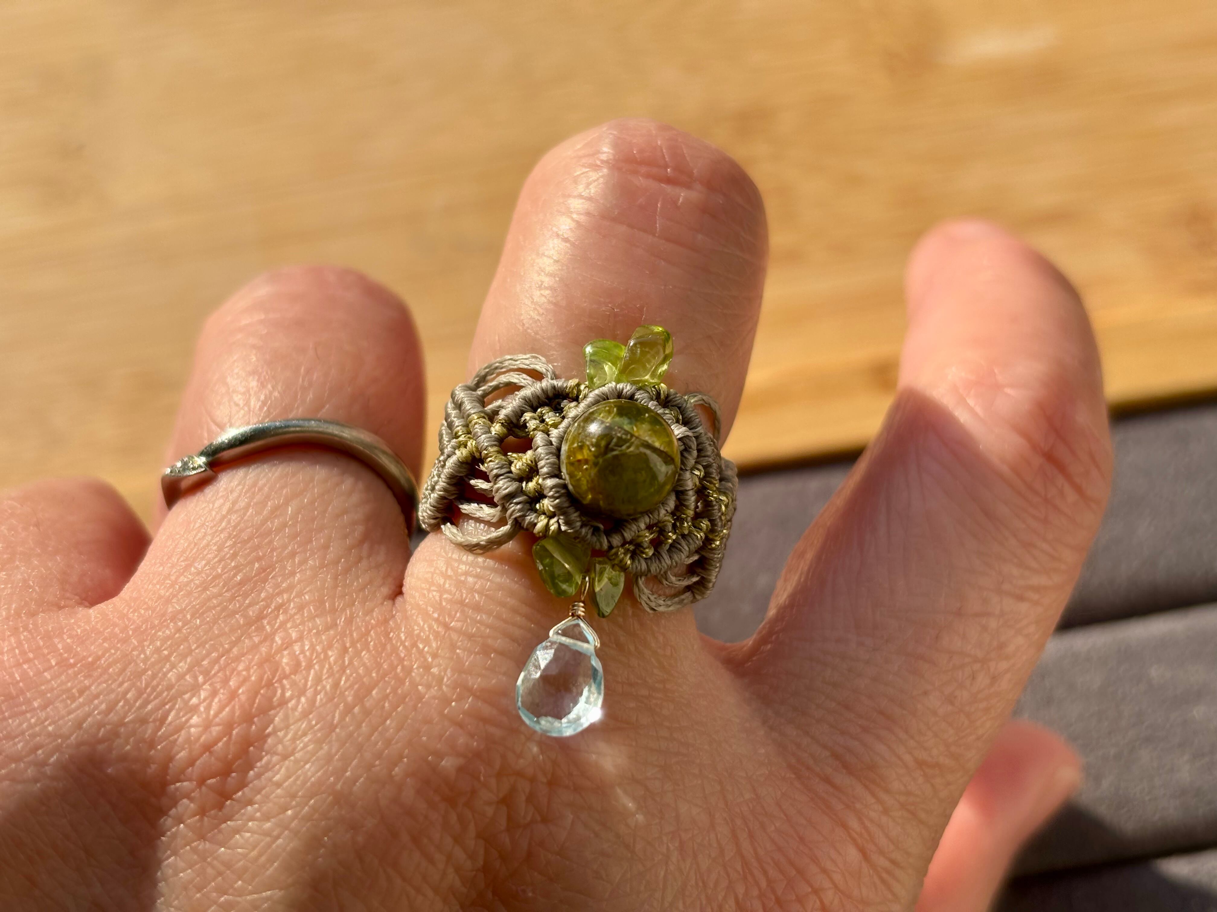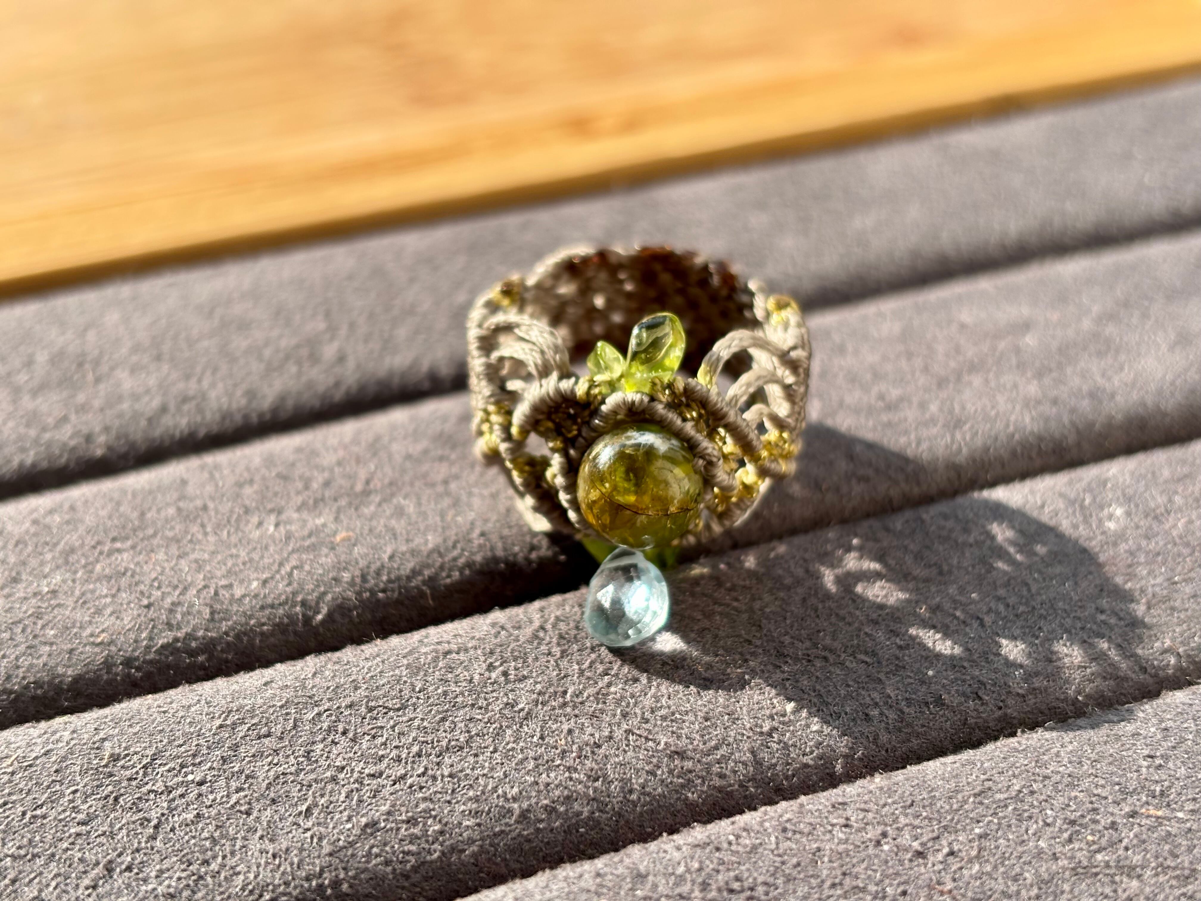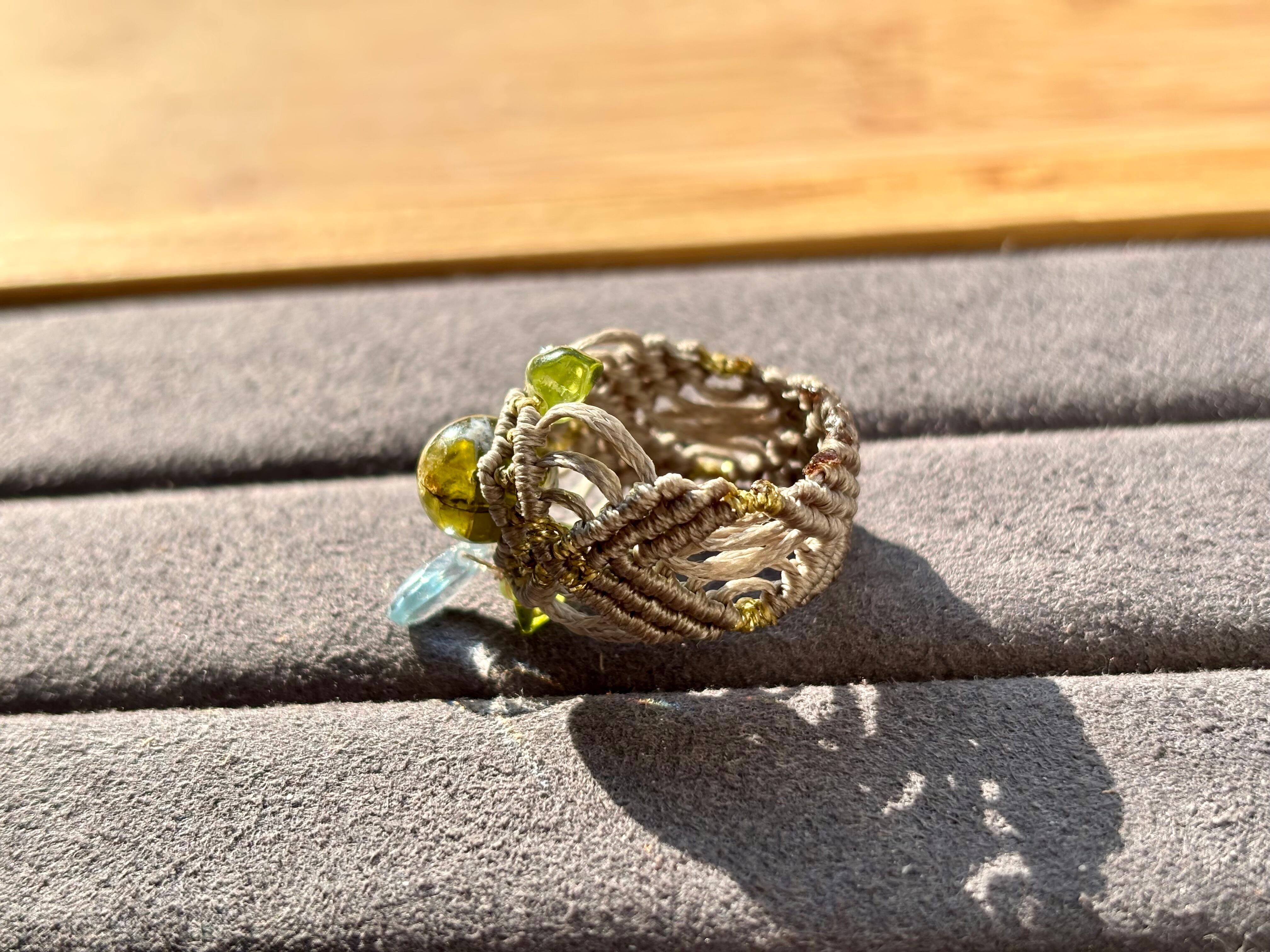 #509 一点物Mont-Saint Michel (ペリドット×ブルートパーズ マクラメ編みリング/指輪)