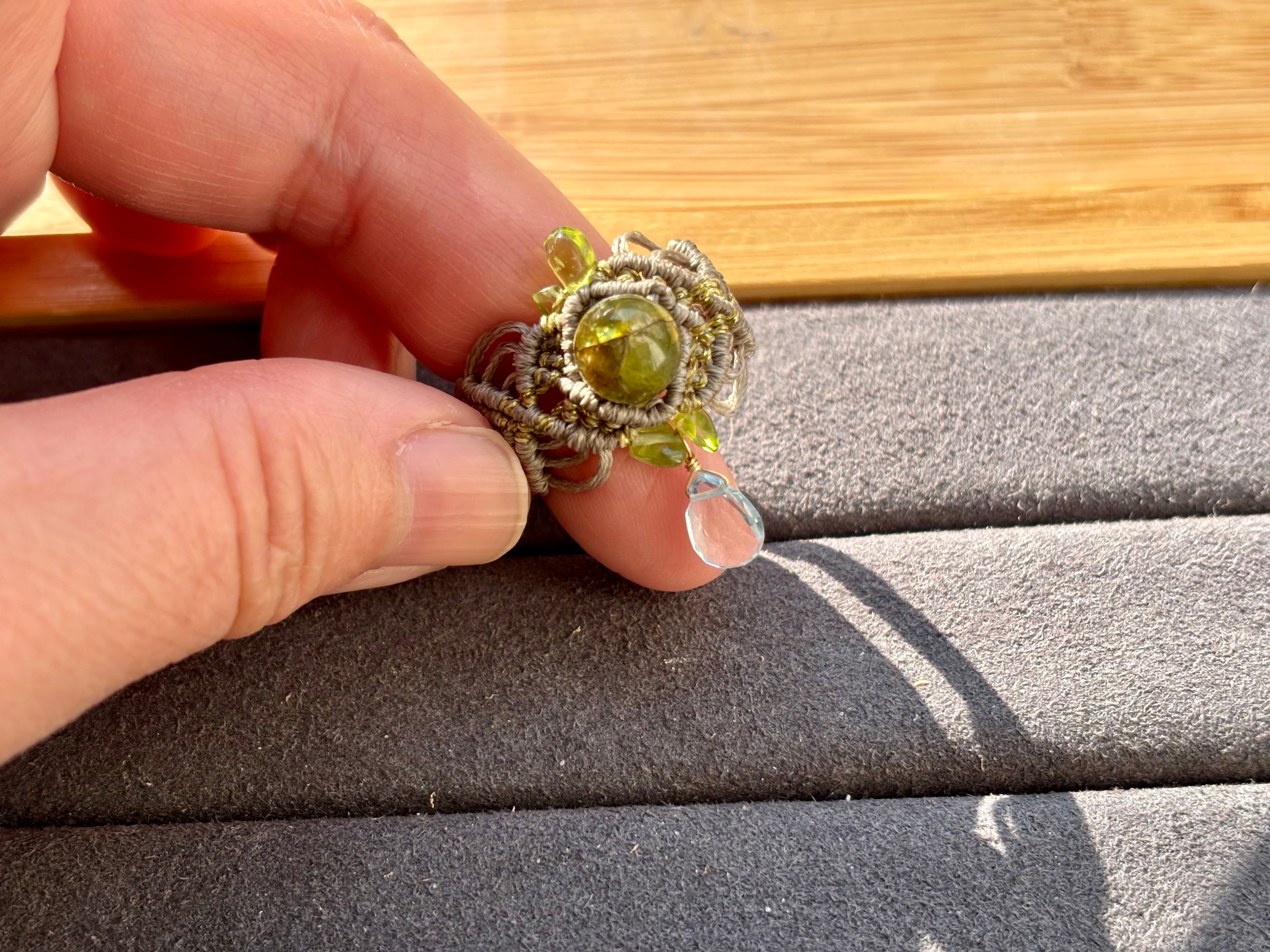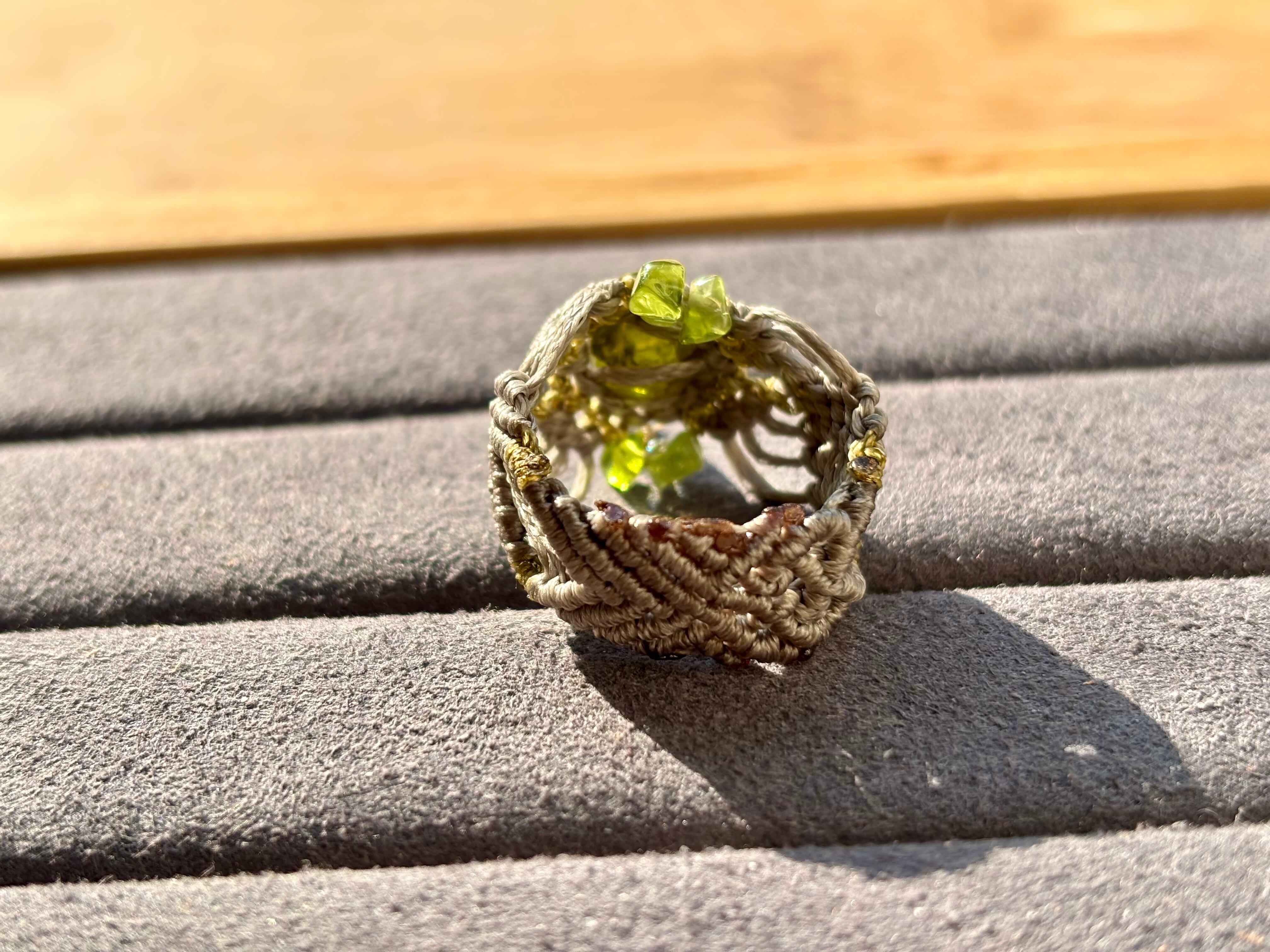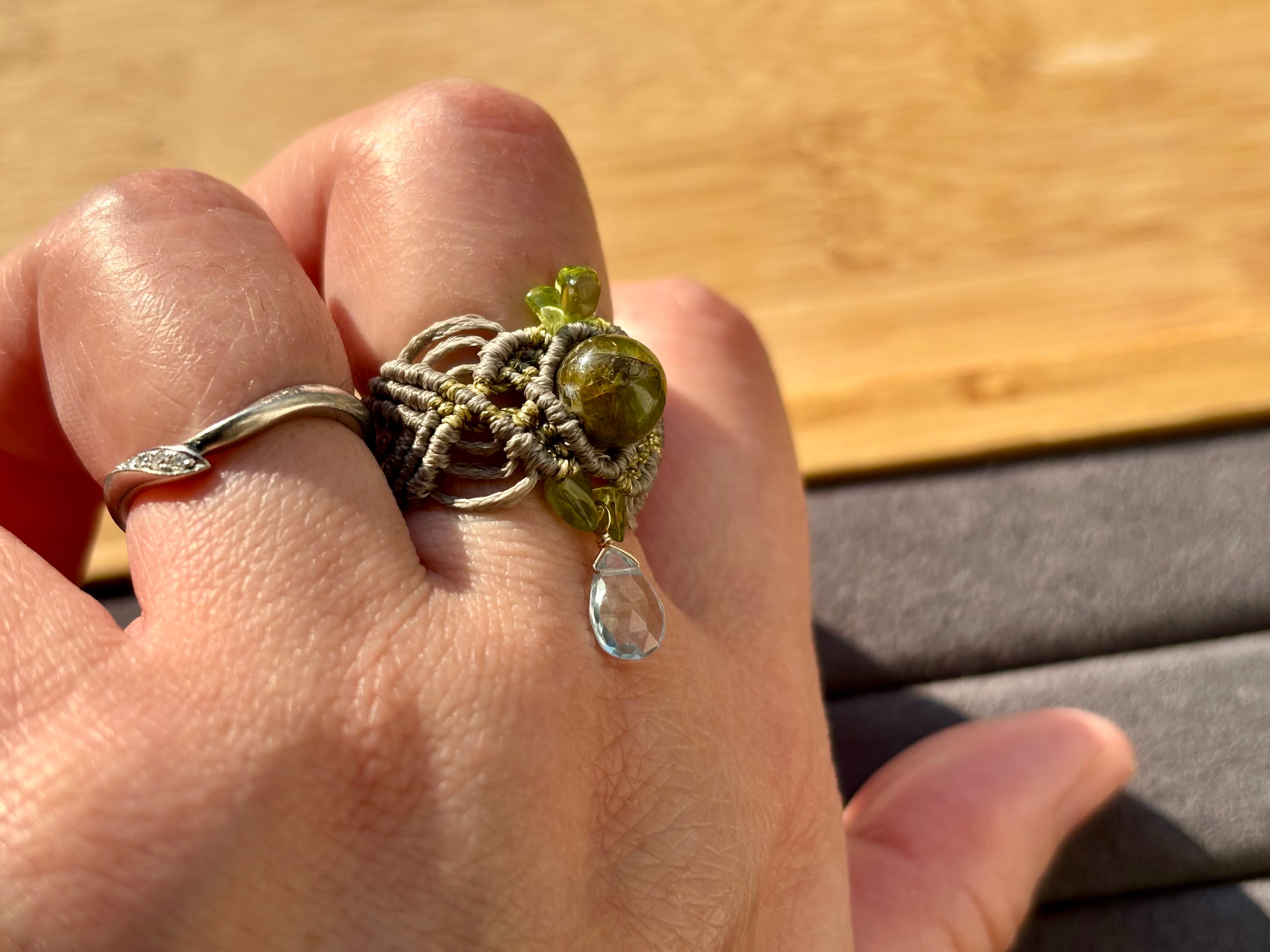 #509 一点物Mont-Saint Michel (ペリドット×ブルートパーズ マクラメ編みリング/指輪)