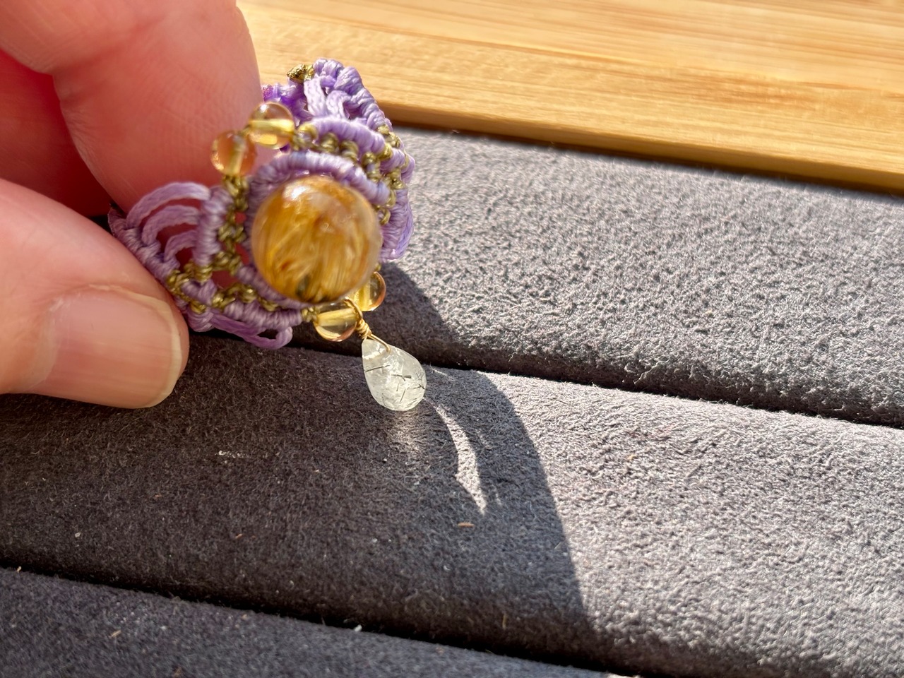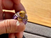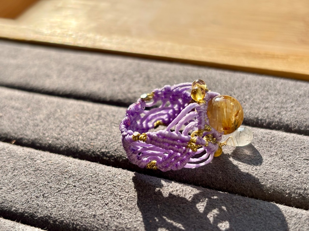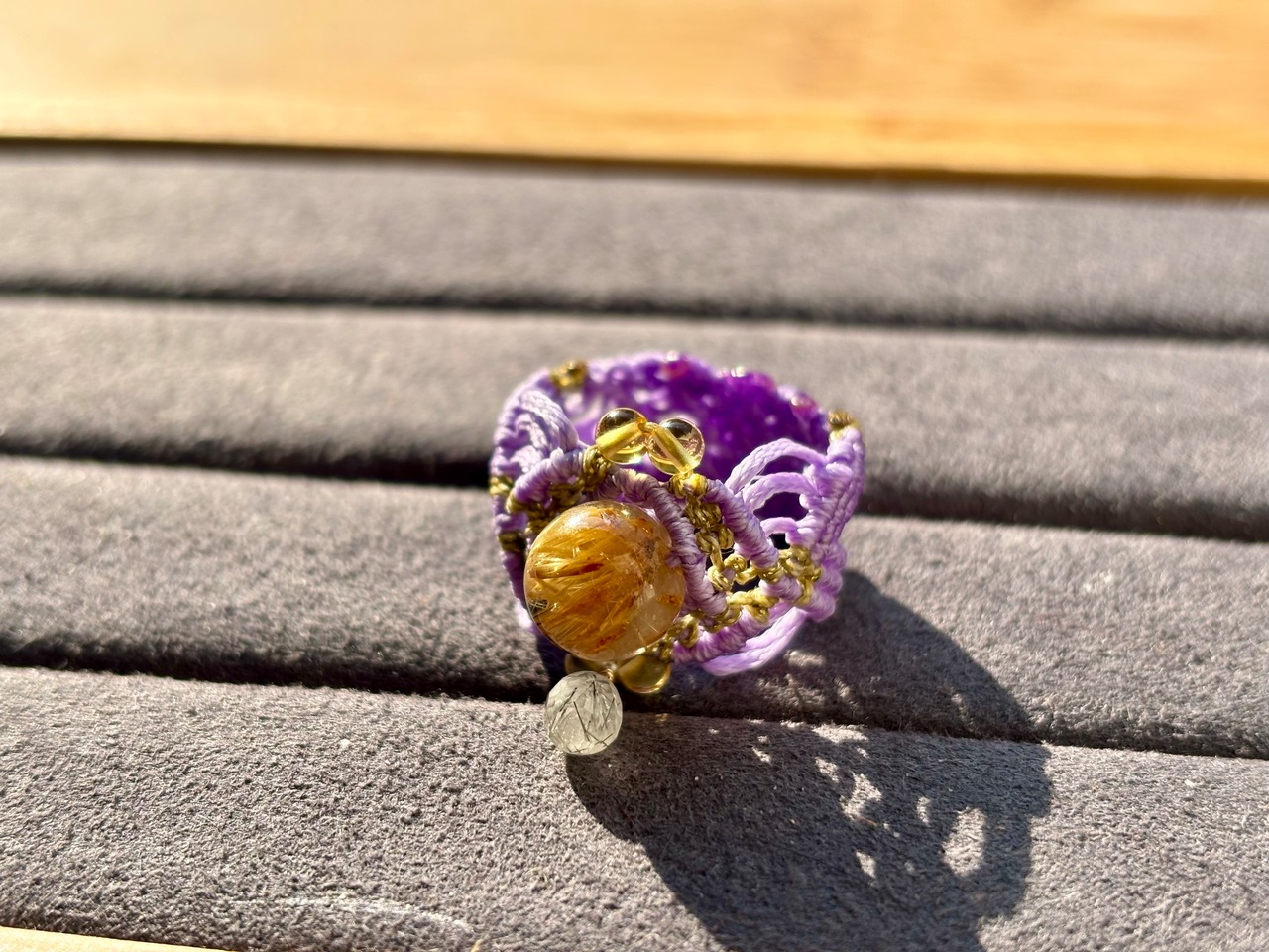 #511 一点物 Mont-Saint Michel (ルチルクォーツ×ブラックルチル マクラメ編みリング/指輪)