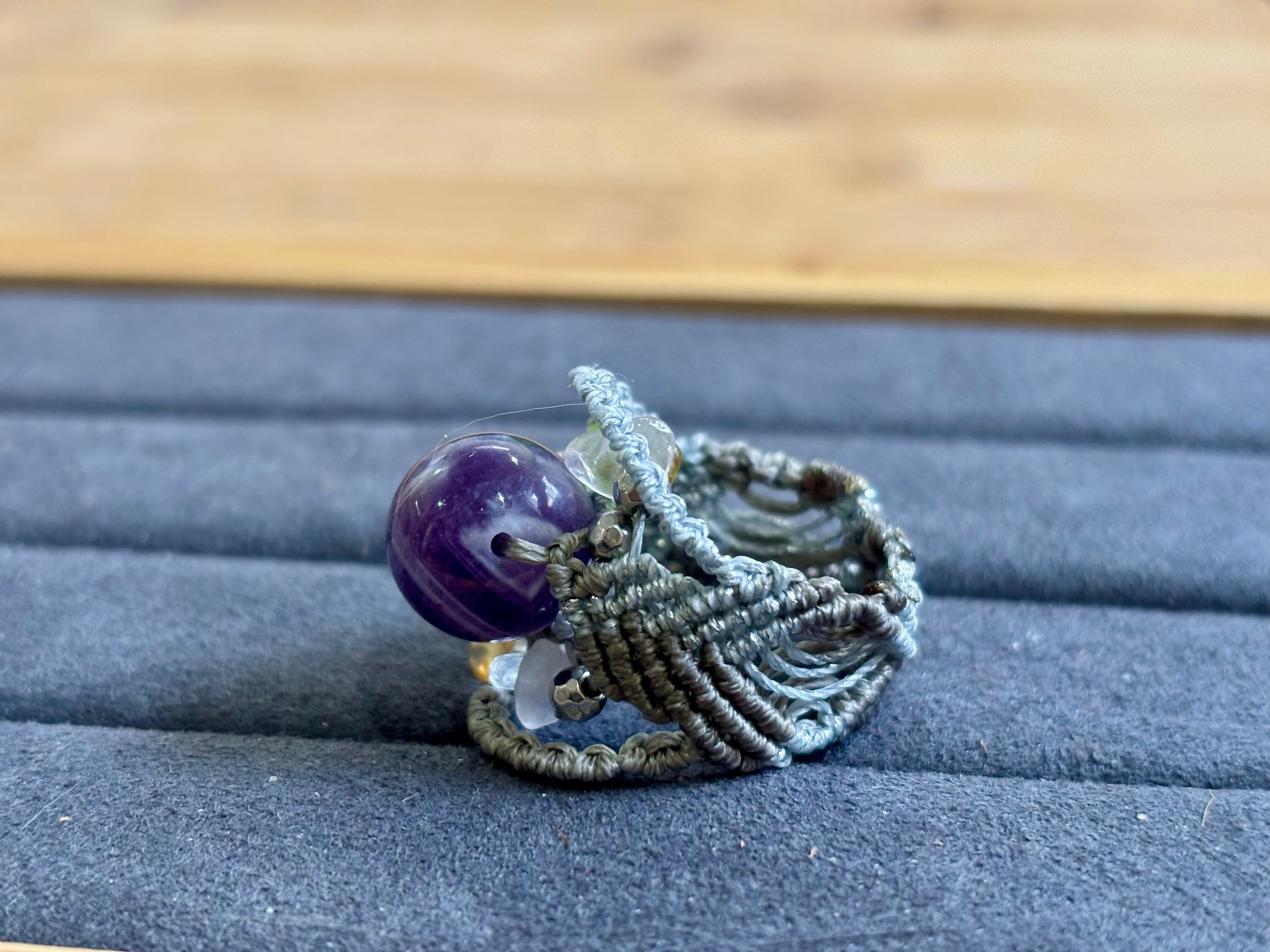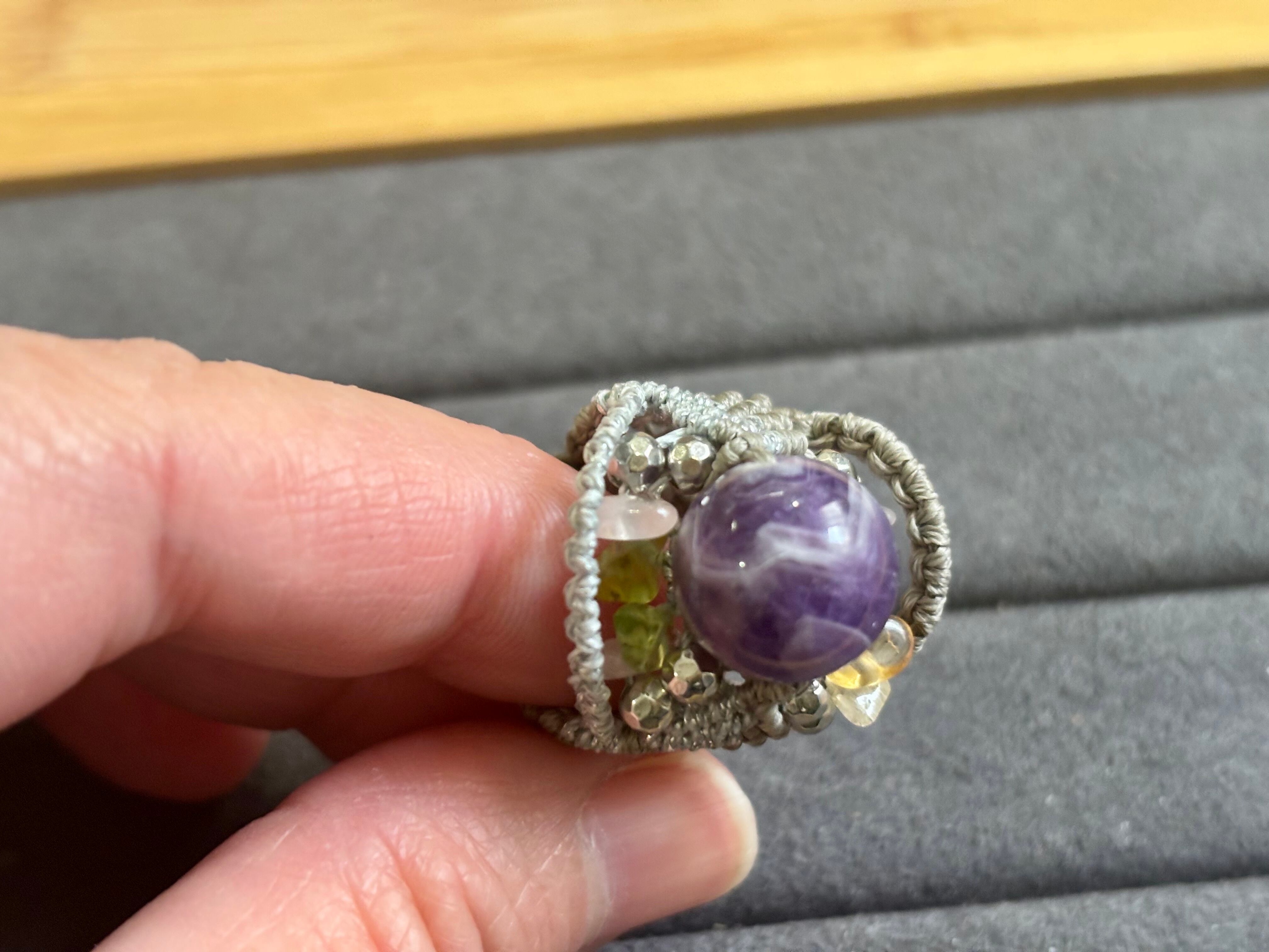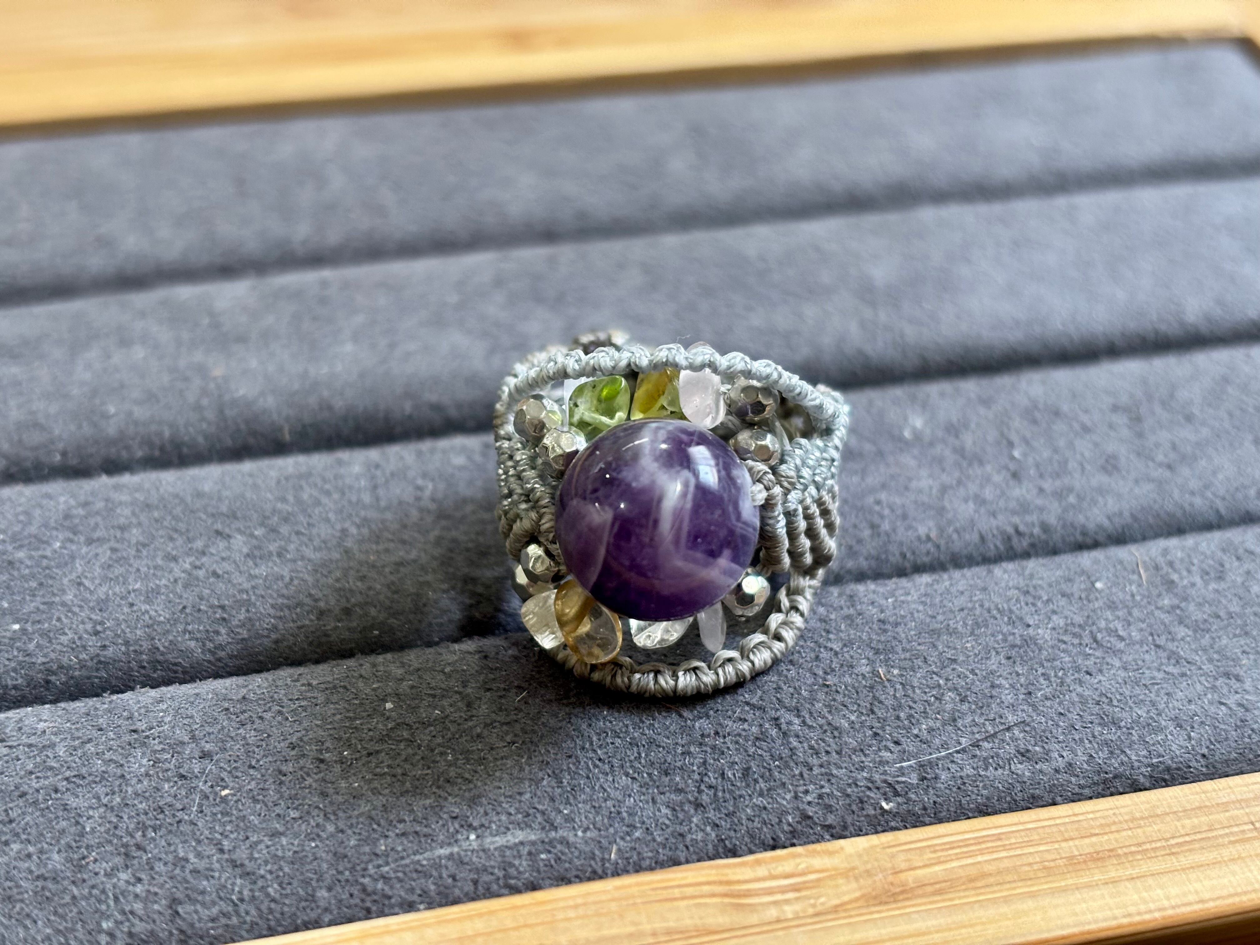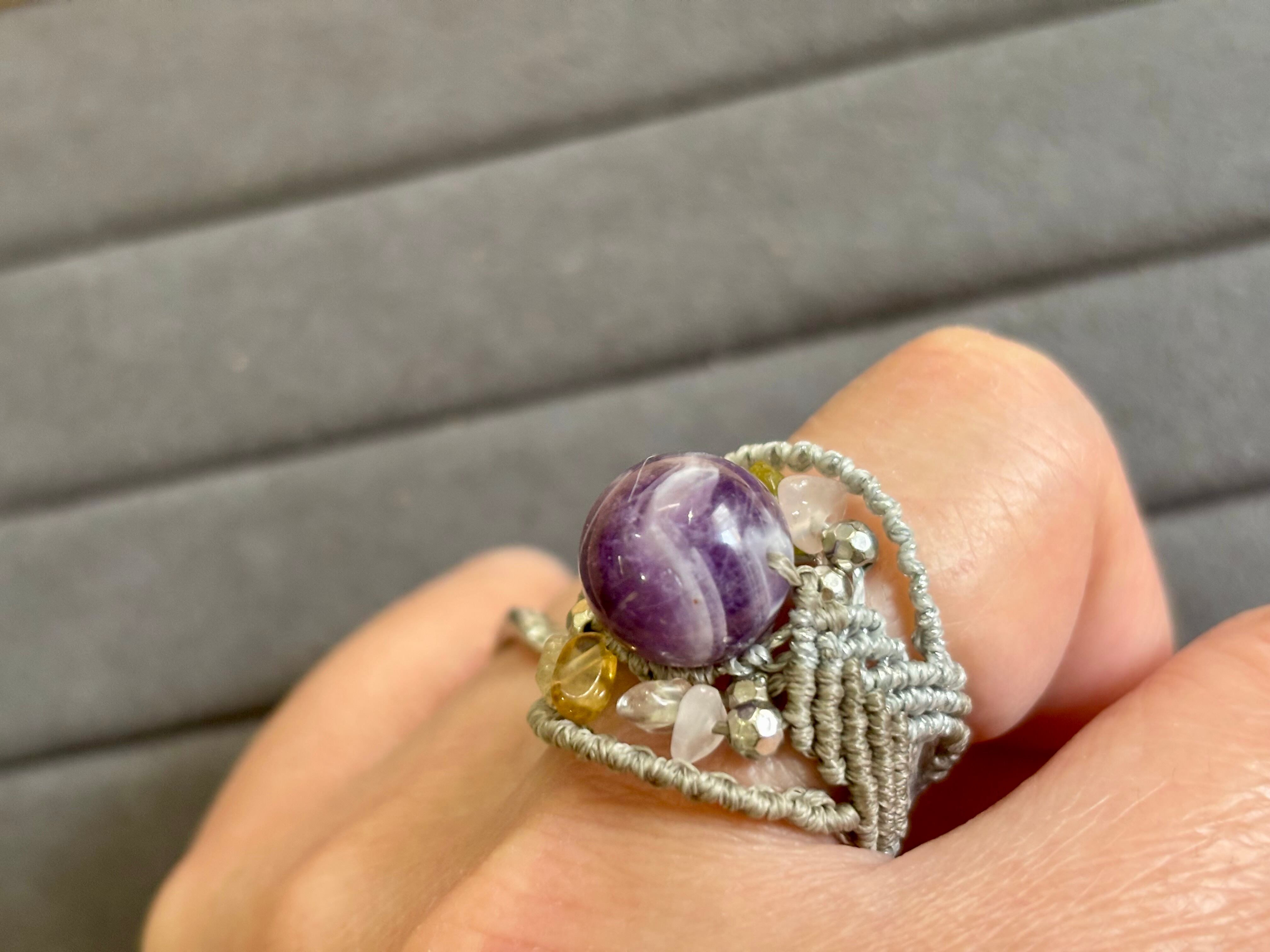 #515World Heritage Ayuttaya (シェブロンアメジスト×ローズクォーツ×シトリン×ペリドット マクラメ編みリング/指輪)