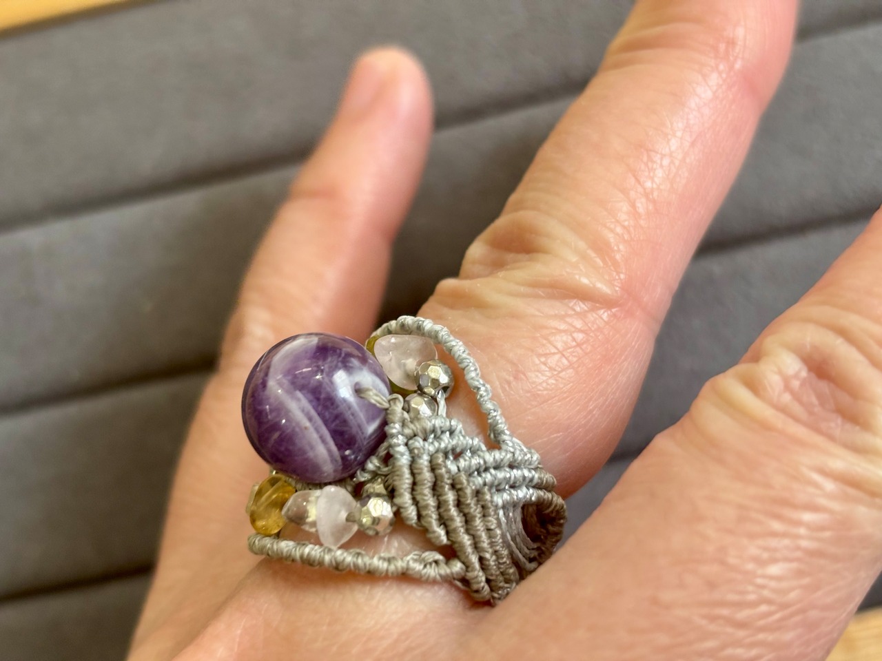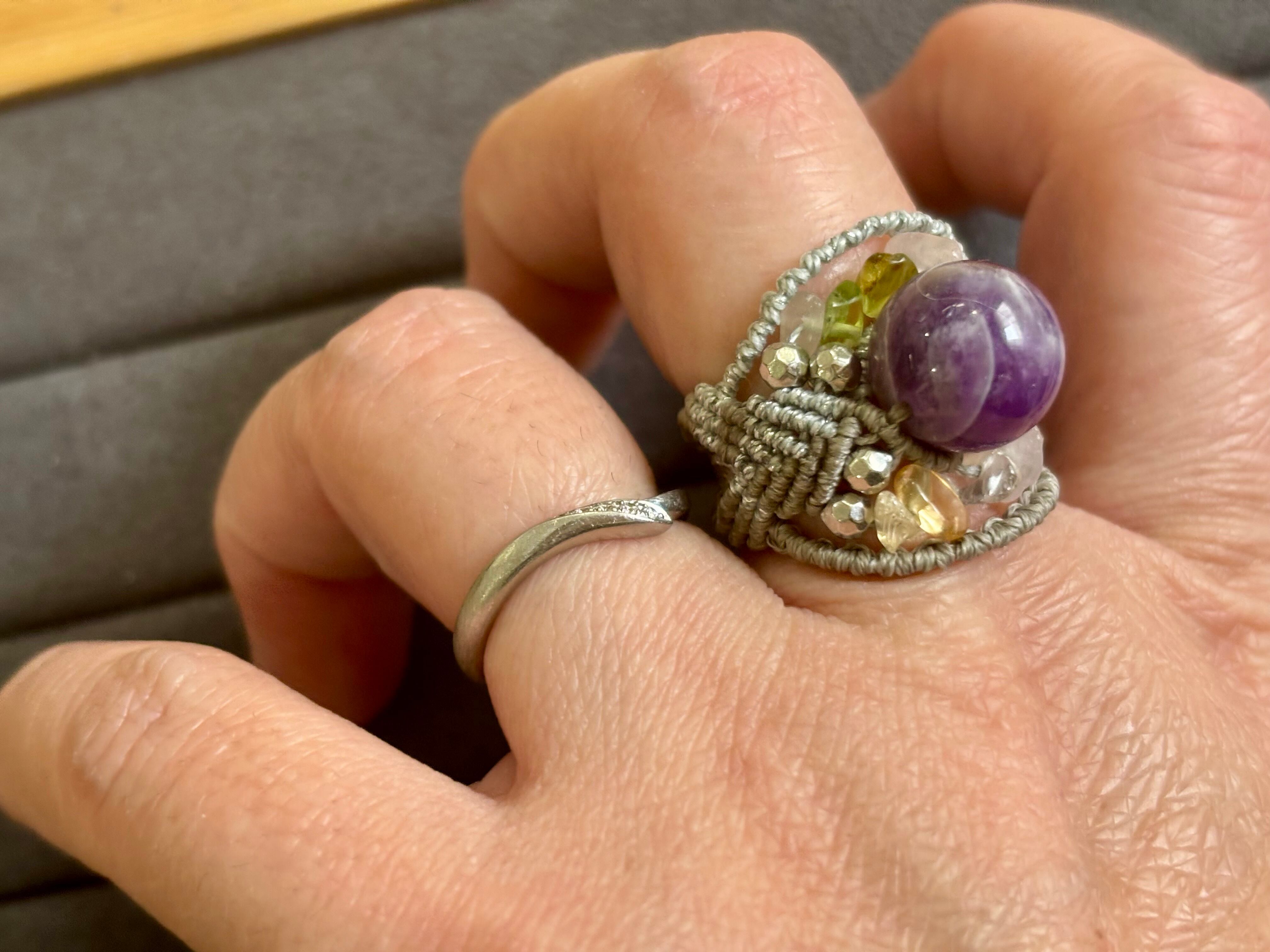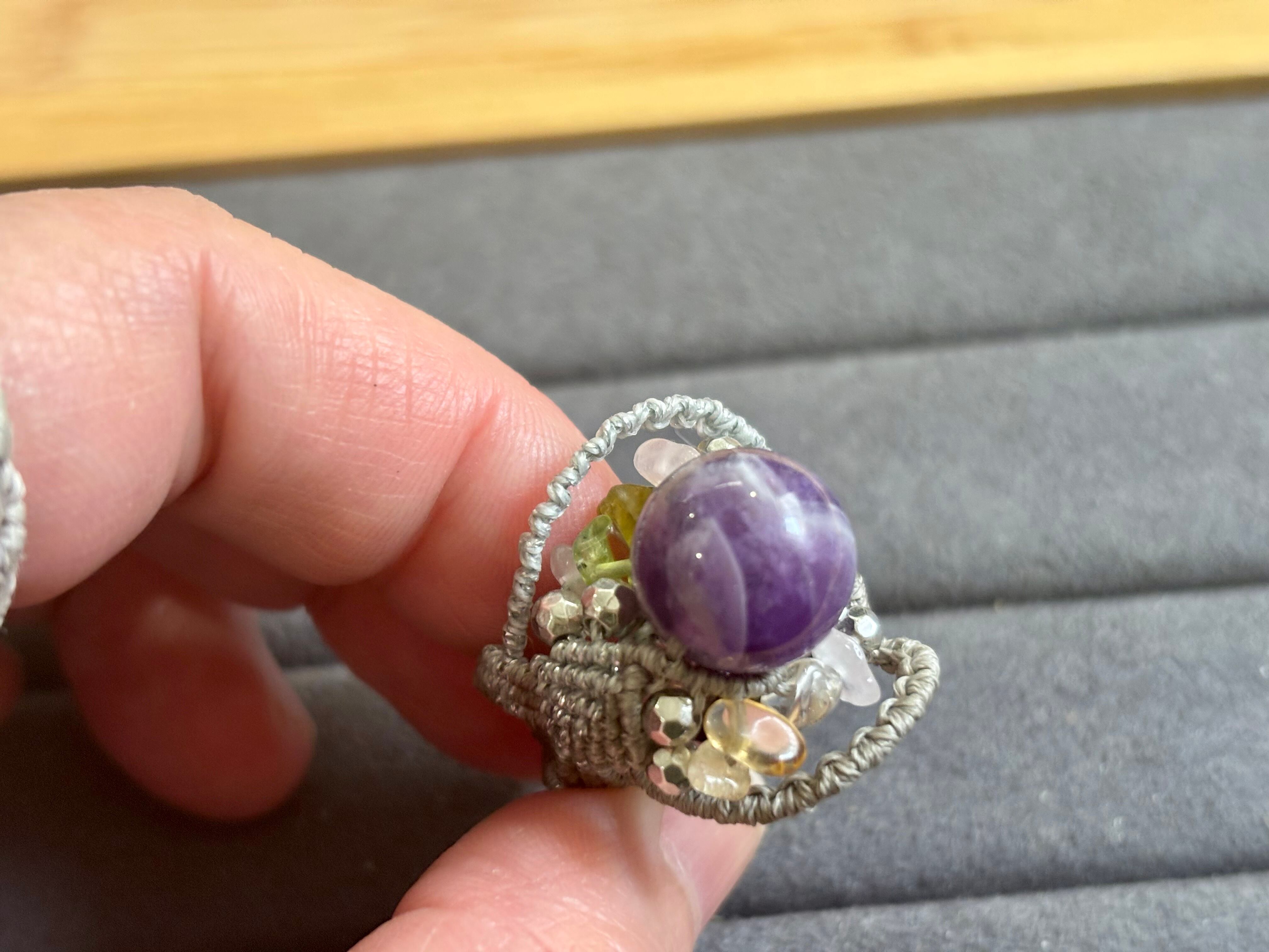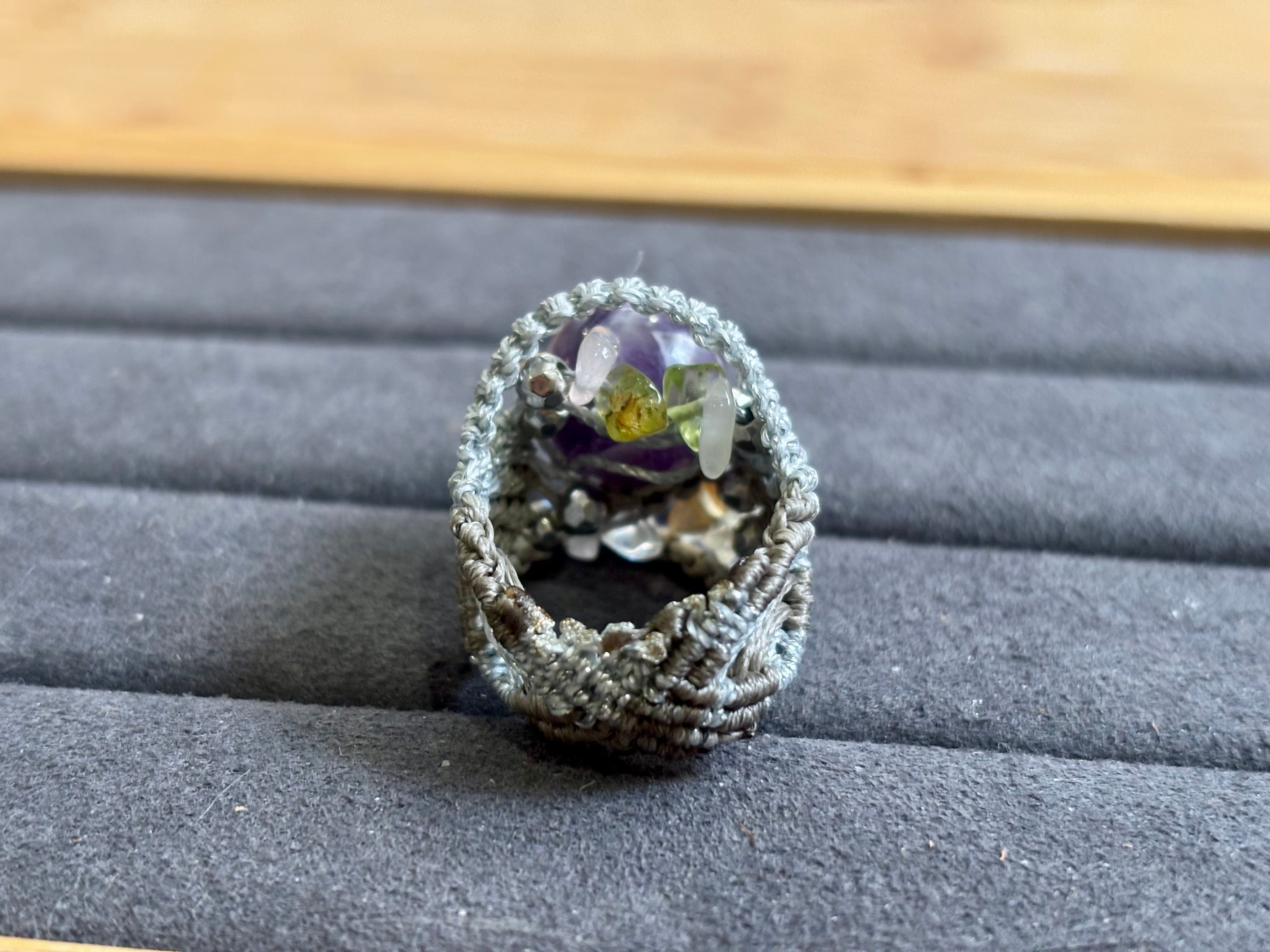 #515World Heritage Ayuttaya (シェブロンアメジスト×ローズクォーツ×シトリン×ペリドット マクラメ編みリング/指輪)